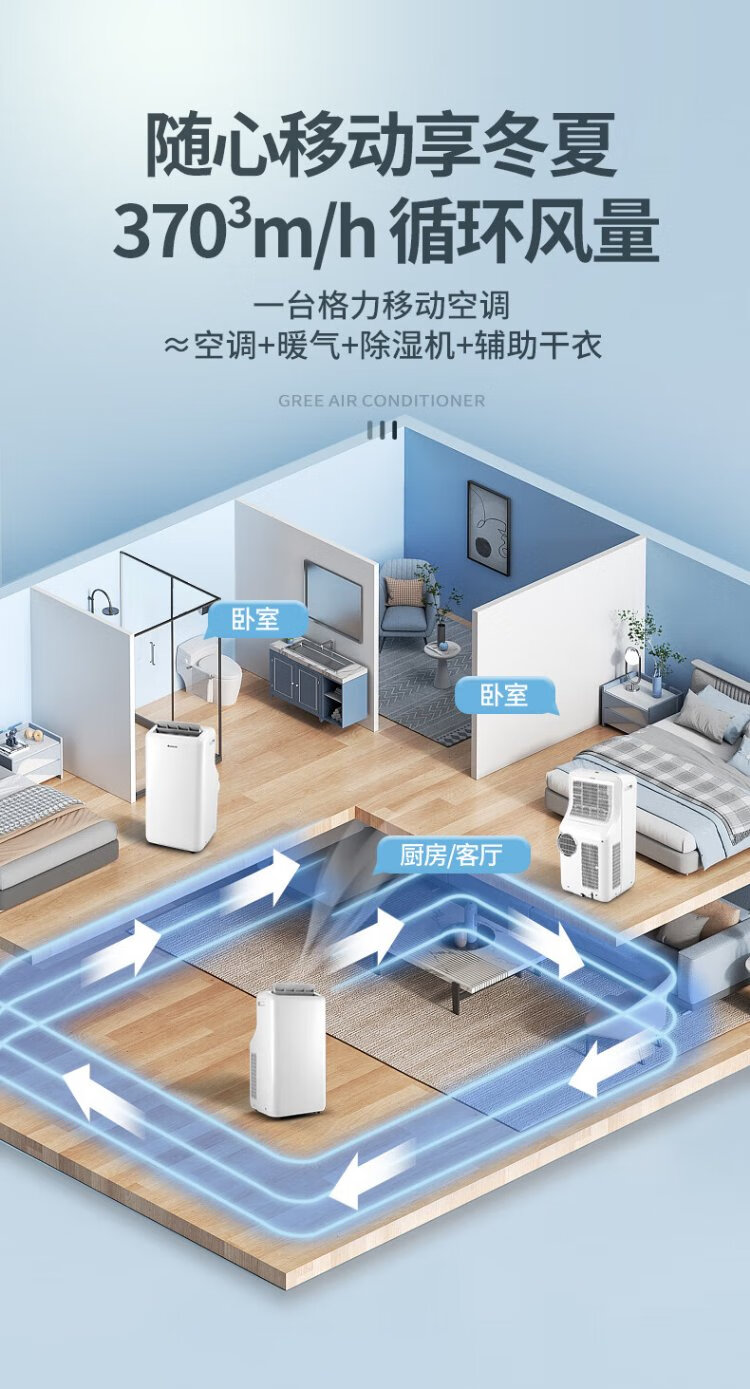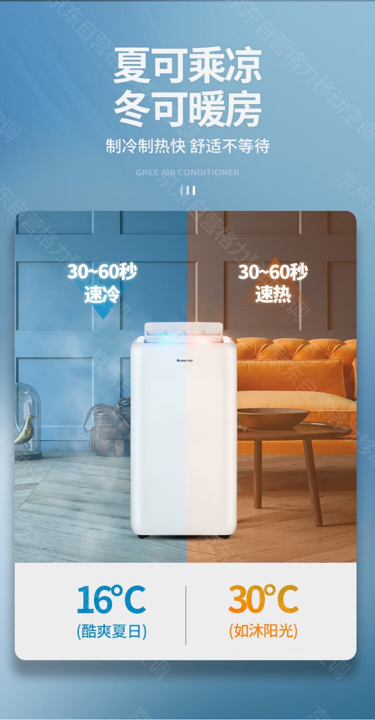 Gree (GREE) mobile air conditioner single cooling and heating air conditioner all-in-one mobile air conditioner home living room rental house dormitory kitchen no outdoor unit installation-free vertical air conditioner 2 HP cooling and heating ** store manager recommended model