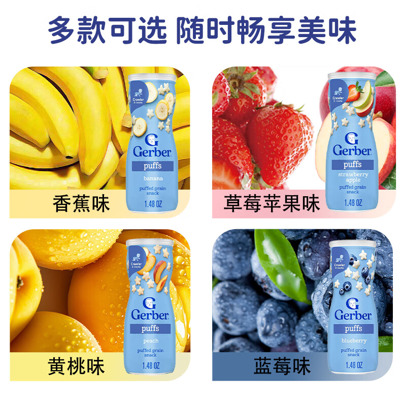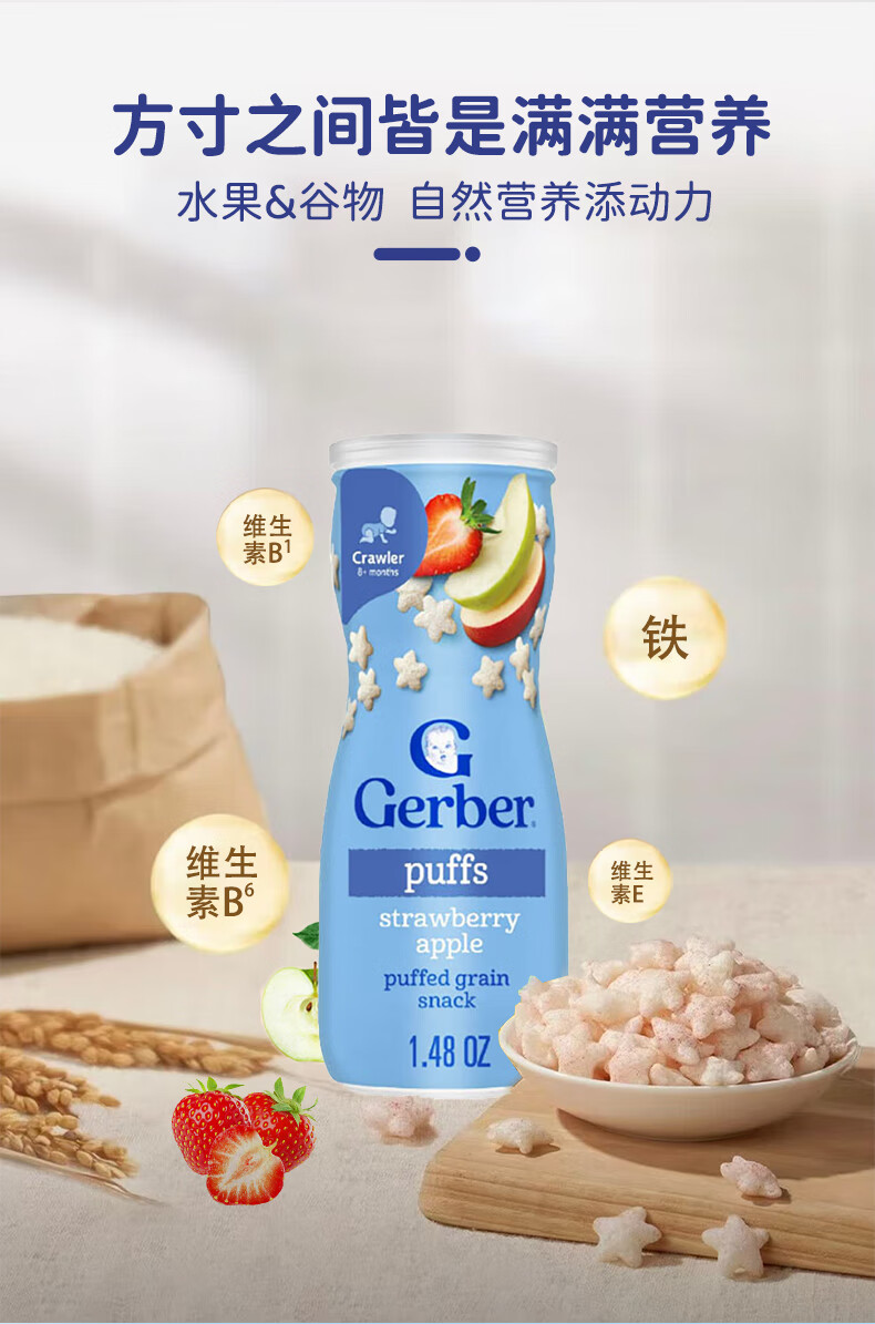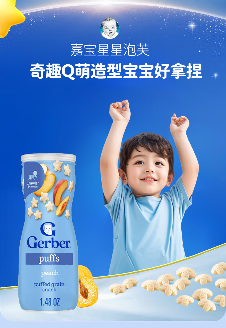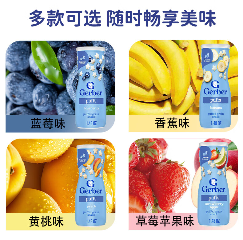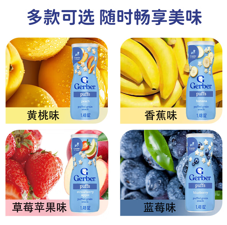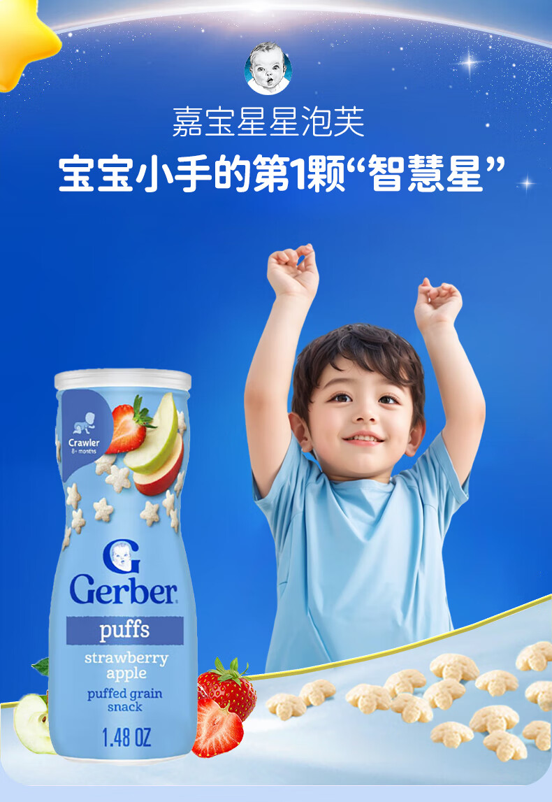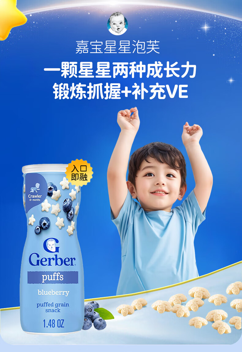 GERBER infant food supplement Star Puffs 3 sections for babies over 8 months old baby snacks baby food supplement imported from the United States 0 additions Blueberry Puffs 42g/can