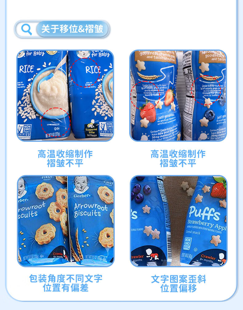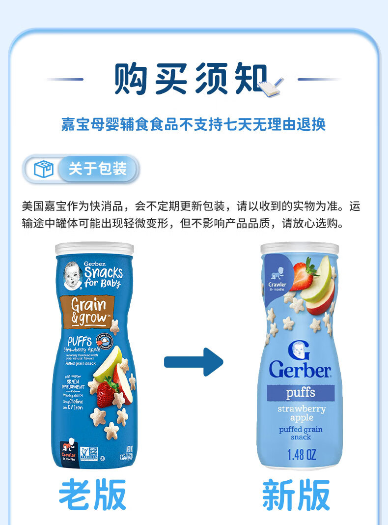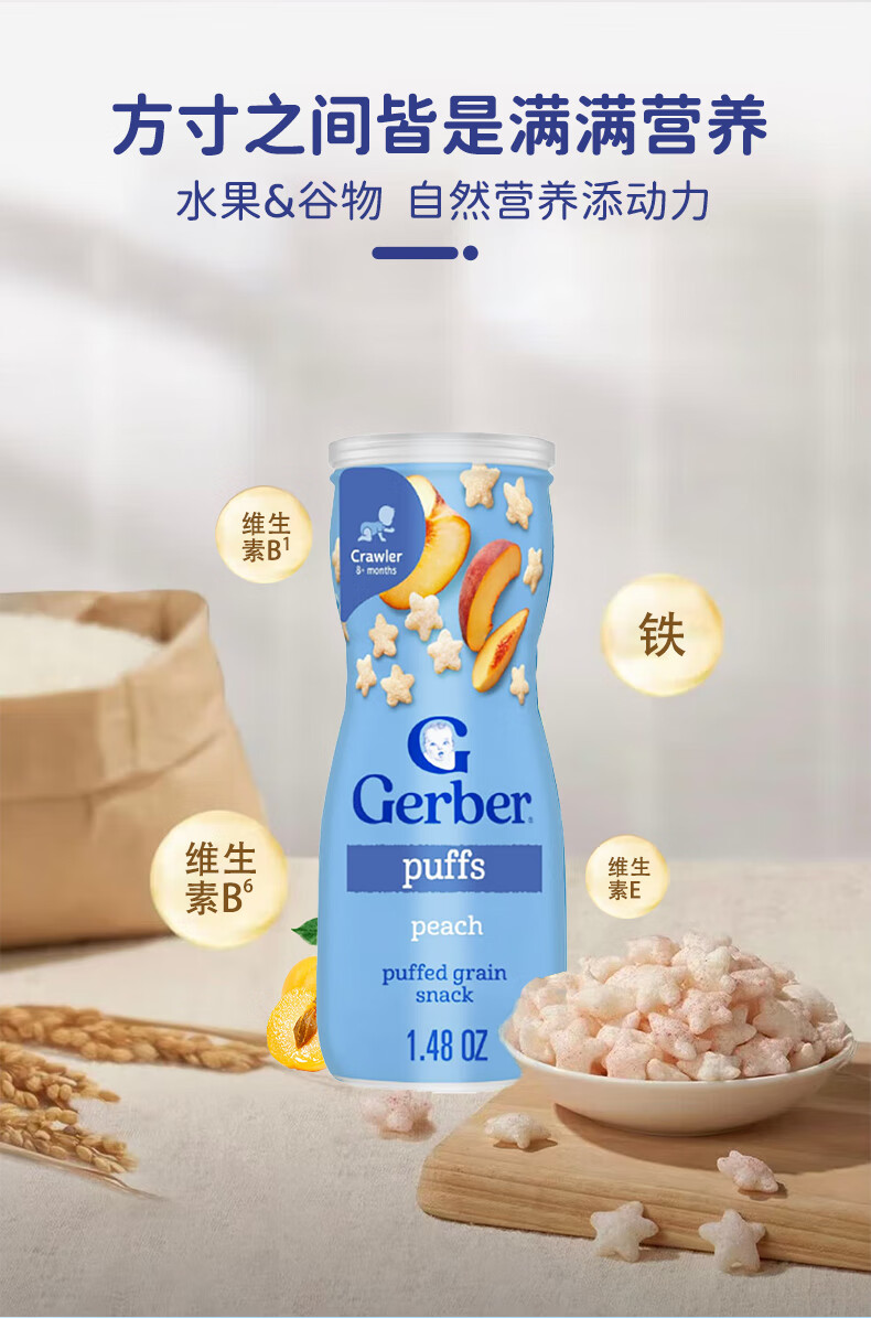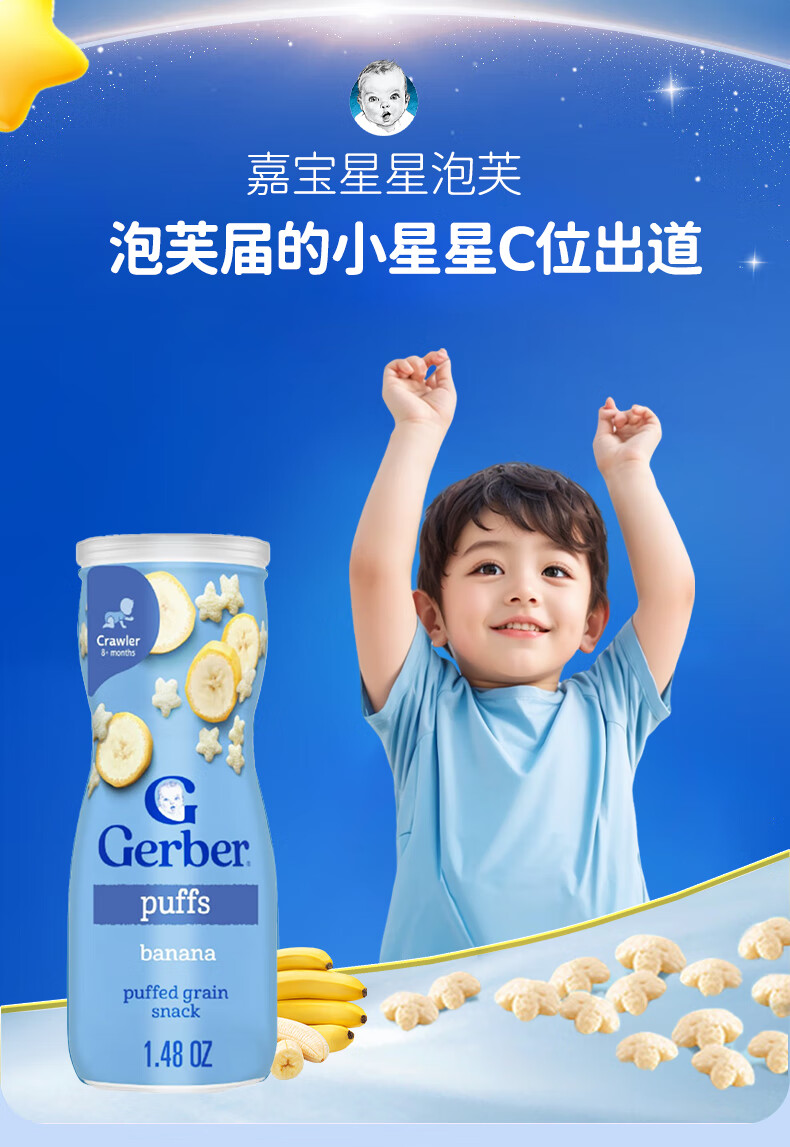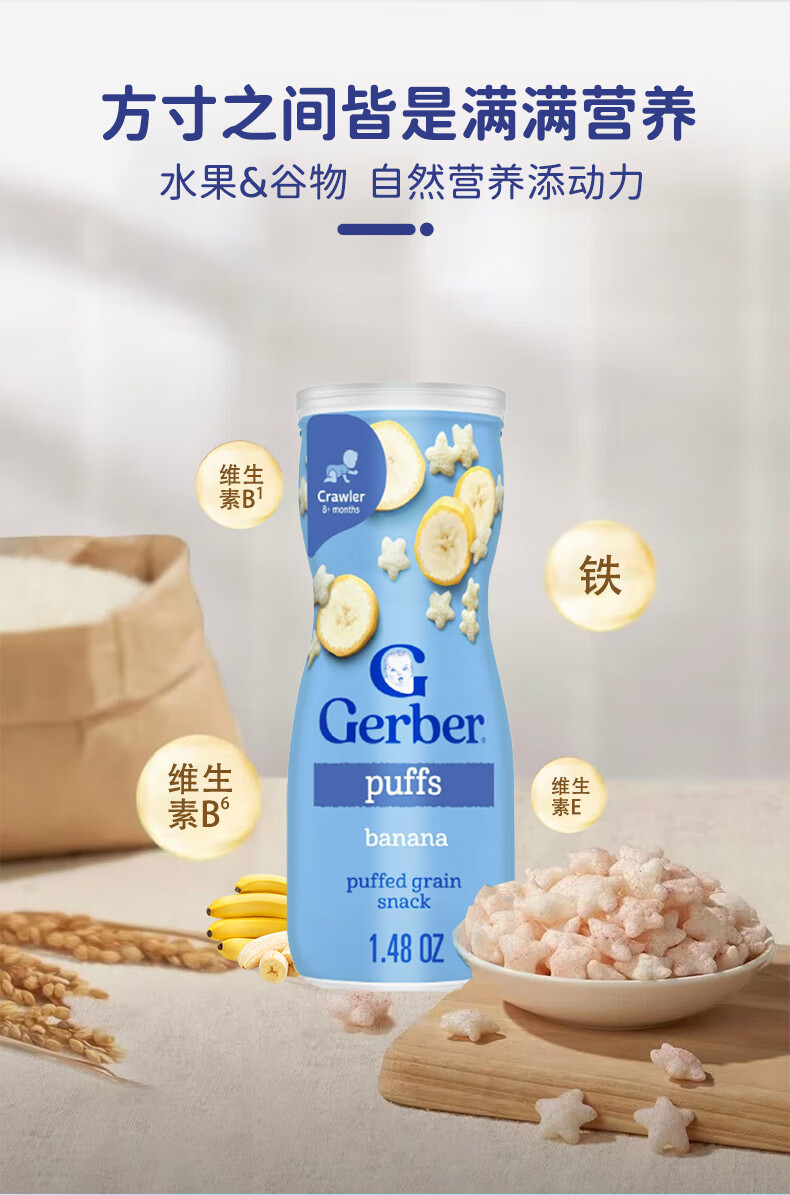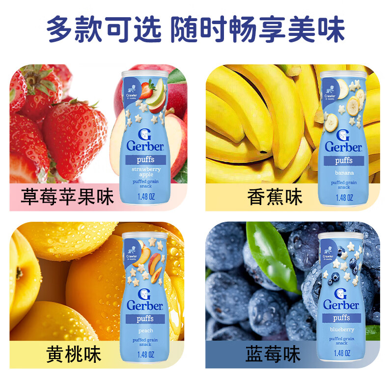 GERBER infant food supplement Star Puffs 3 sections for babies over 8 months old baby snacks baby food supplement imported from the United States 0 additions Blueberry Puffs 42g/can