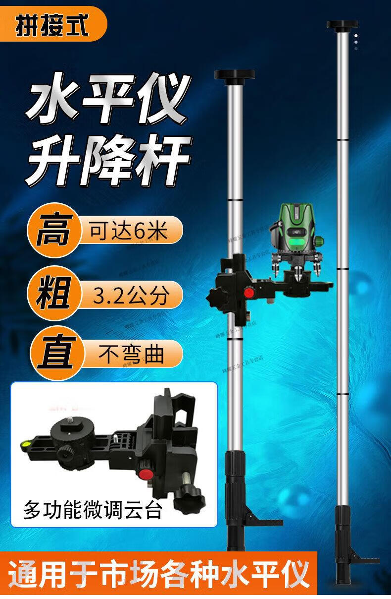Kaooseen level meter lifting support rod infrared telescopic rod bracket leveling meter shelf woodworking ceiling splicing 2.4 meters thickened iron cloud platform