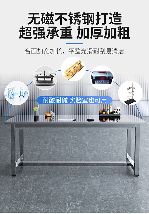 Kegang stainless steel workbench factory packaging workshop wear-resistant assembly table waterproof, rust-resistant and high-temperature-resistant operation table laboratory acid-alkali-resistant and corrosion-resistant instrument experimental table assembly line operating table 201 stainless steel table 1400*800*750 300KG