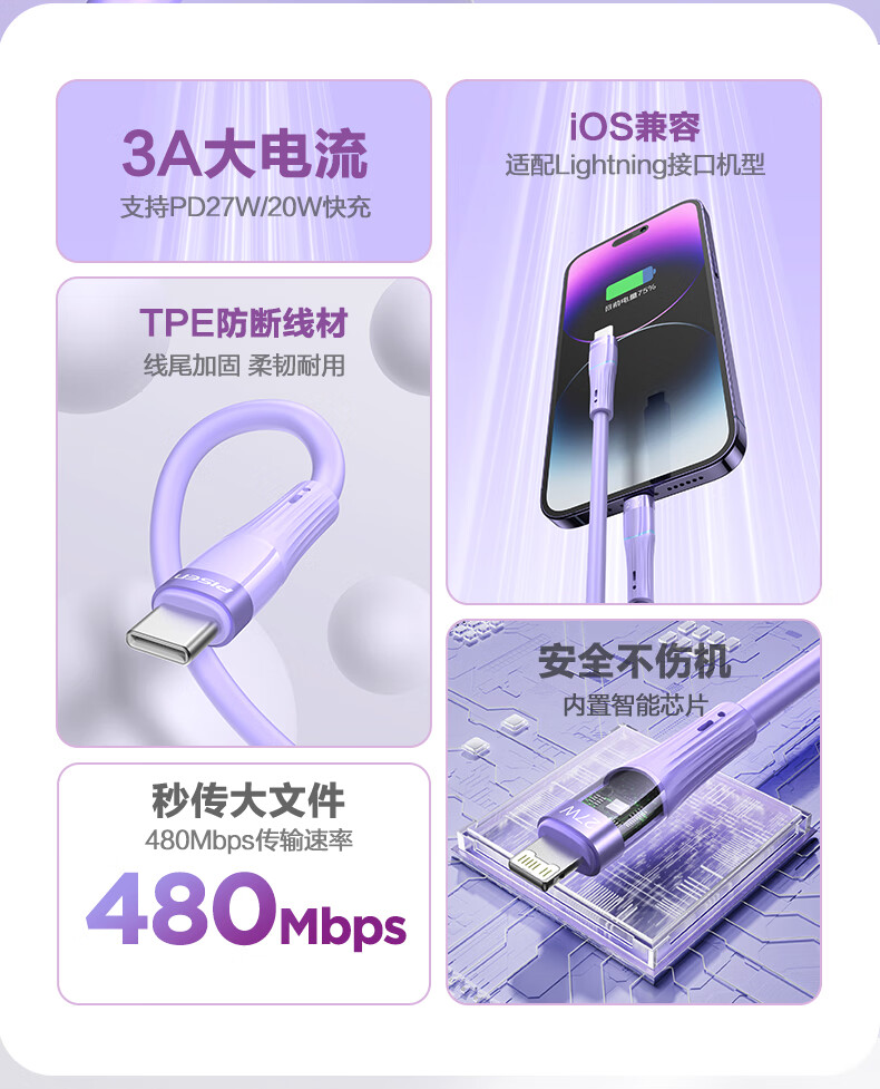 Pinsheng Apple data cable fast charging charging cable is suitable for iPhone/14/13/12Pro Max/XR/Xs/11/8 mobile phone ipadpro/air2 tablet car USB-Apple interface 1.2 meters-white safe and stable charging