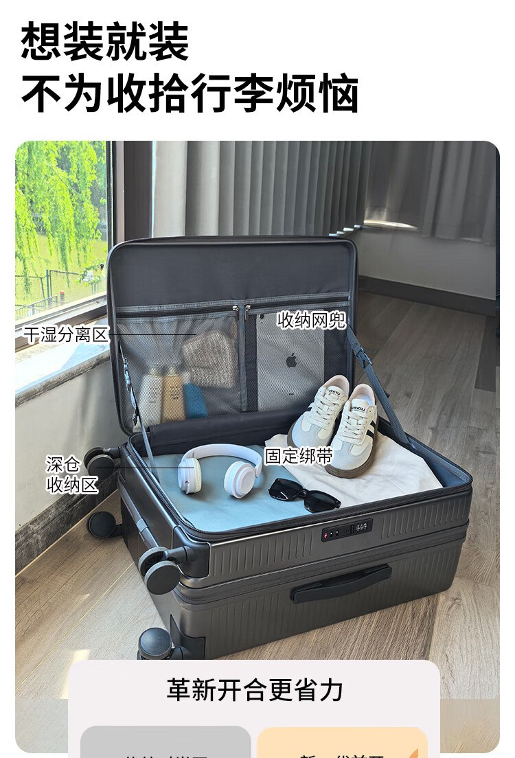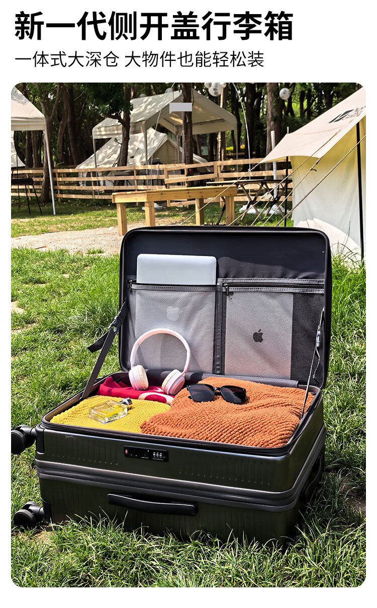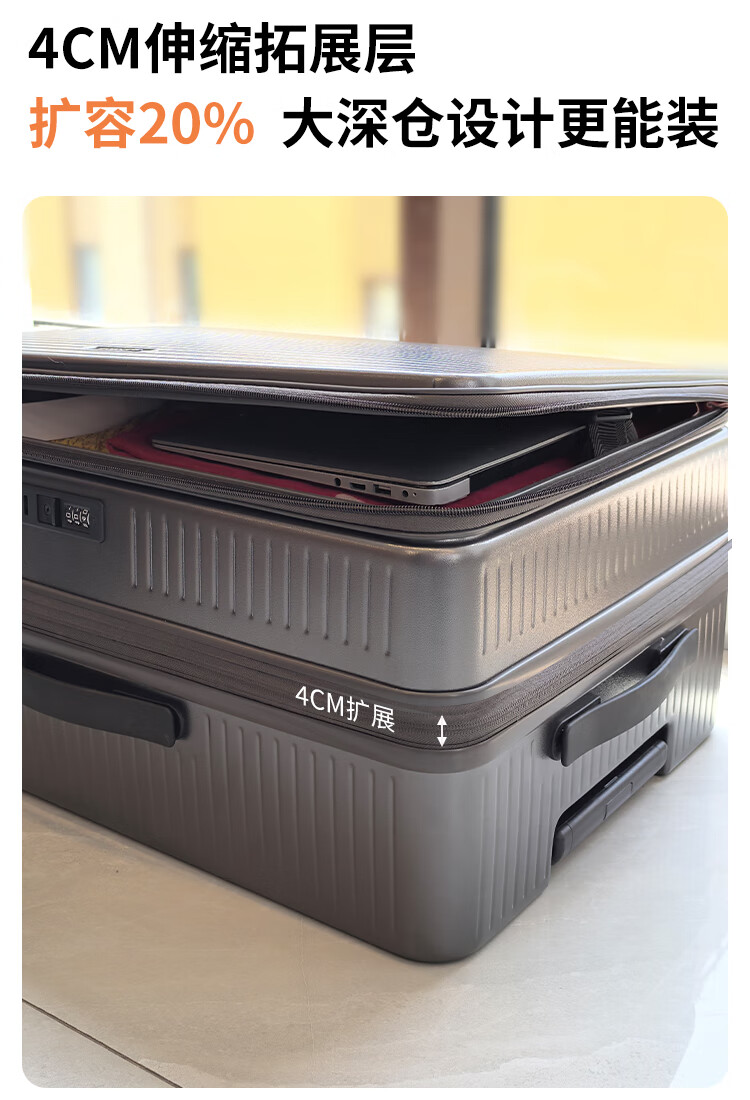 Scarecrow side-opening lid suitcase, new multi-functional extended trolley case, large capacity, deep storage, boarding code box, titanium empty gray, greatly expanded capacity - first choice for loading large items, 20 inches, approximately 22 inches after expansion, boarding suitcase