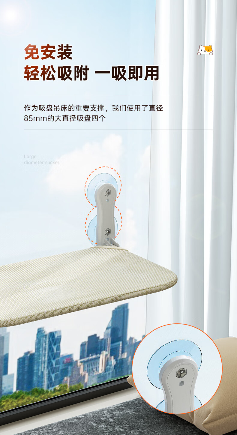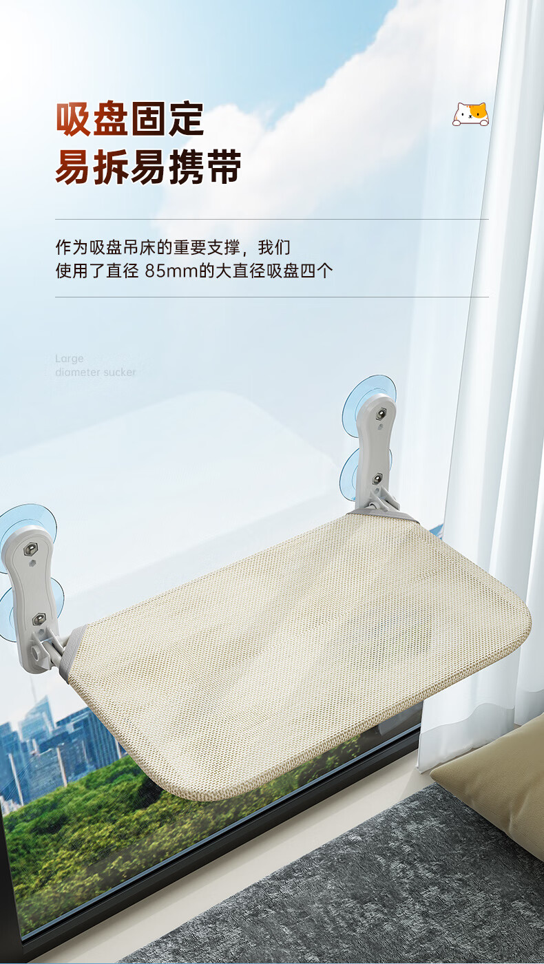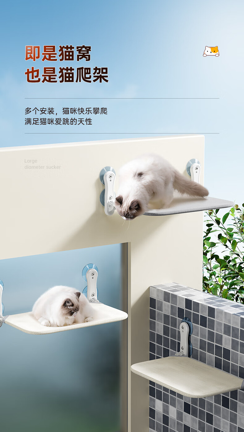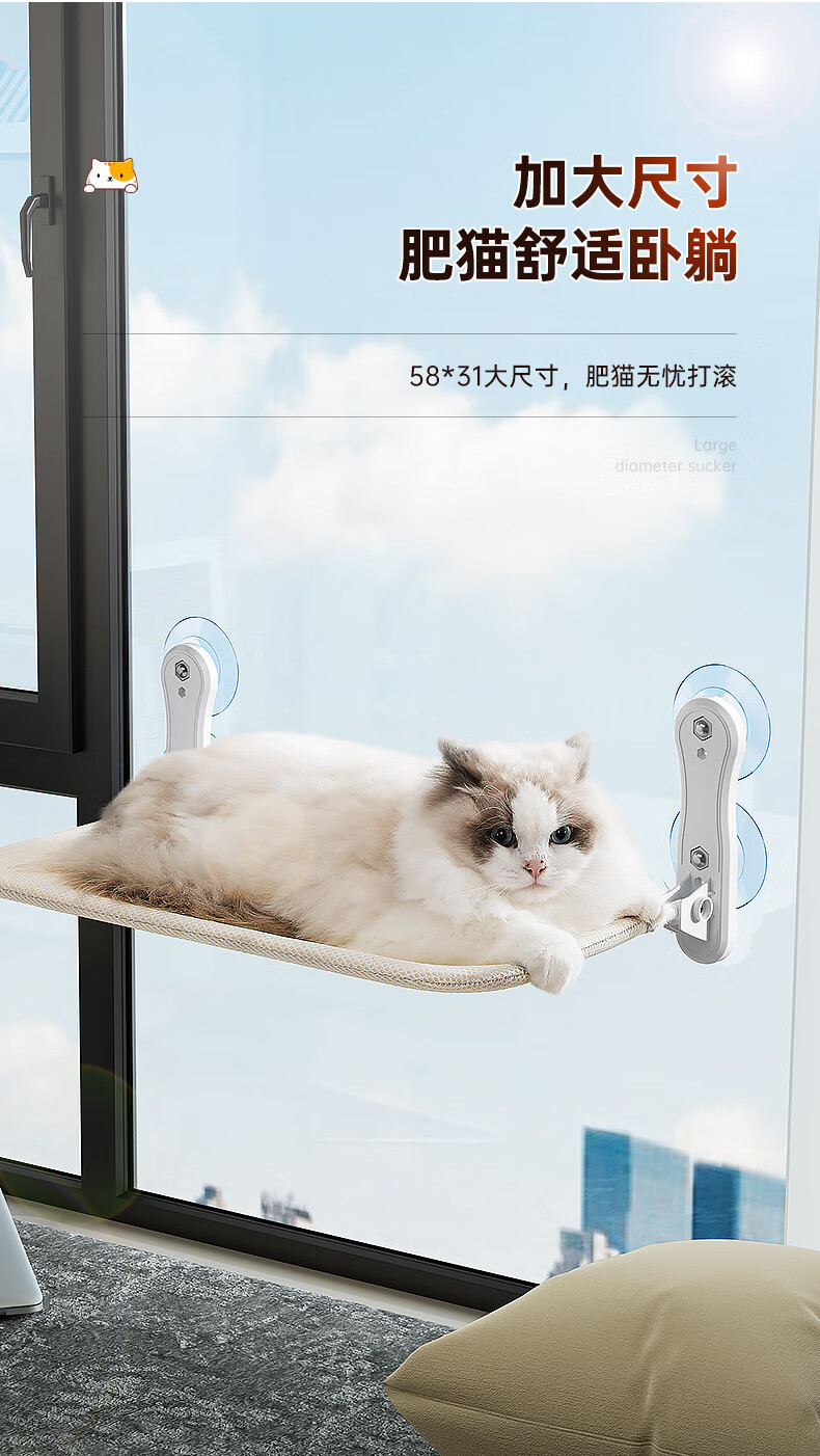 Jingdong Express Cat Hammock Window Suction Cup Cat Nest Glass Cat Bed Suspended Sun Cat Climbing Frame Balcony Gray Breathable Mesh Style 40 catties Super Load-bearing Extra Large Size Bed Surface 58*30