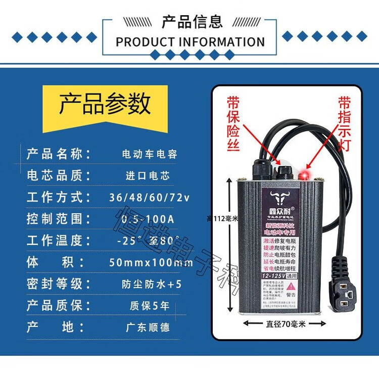 Electric vehicle enhanced range battery vehicle capacitor climbing range extender 48V60V72V two-wheeled vehicle and tricycle universal battery vehicle capacitor climbing range extender 48V60V72V two-wheeled vehicle