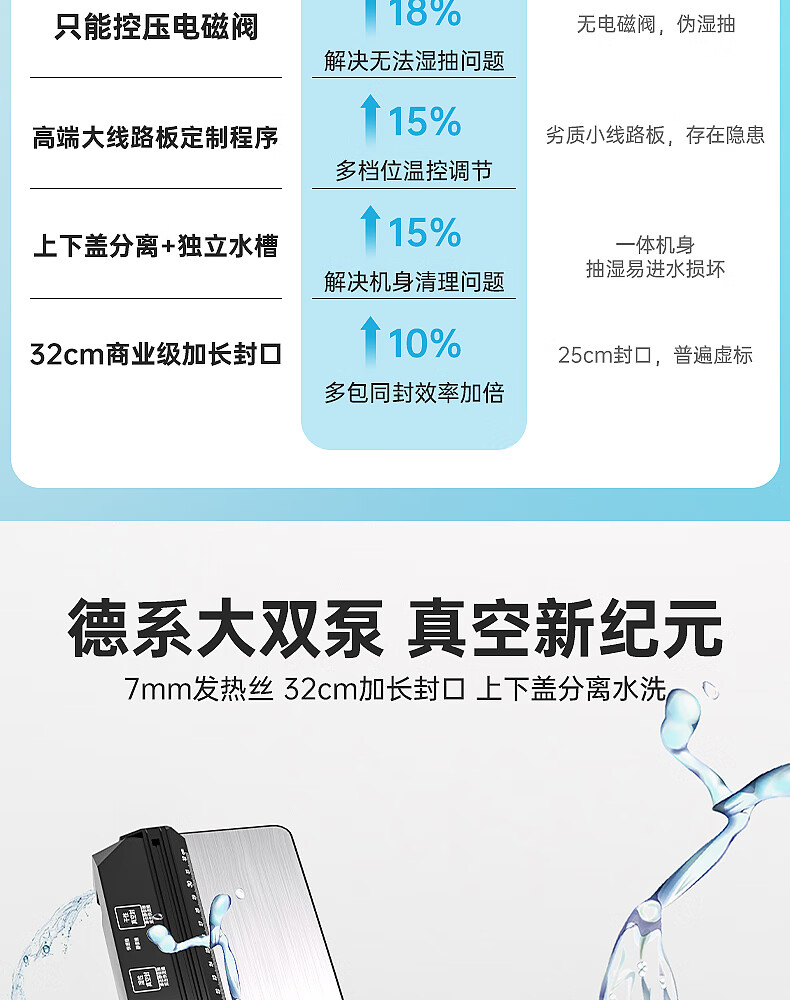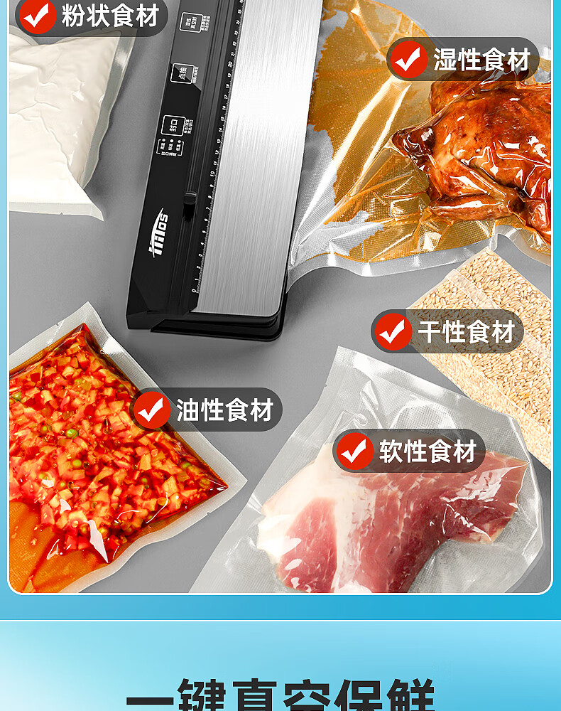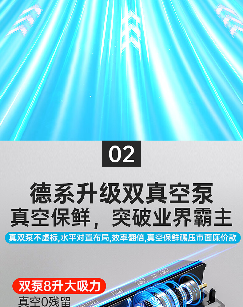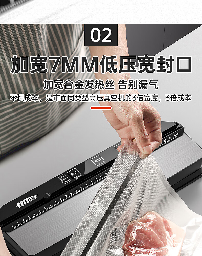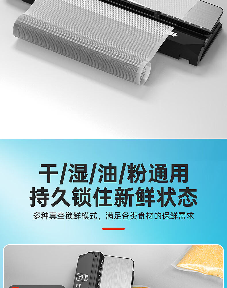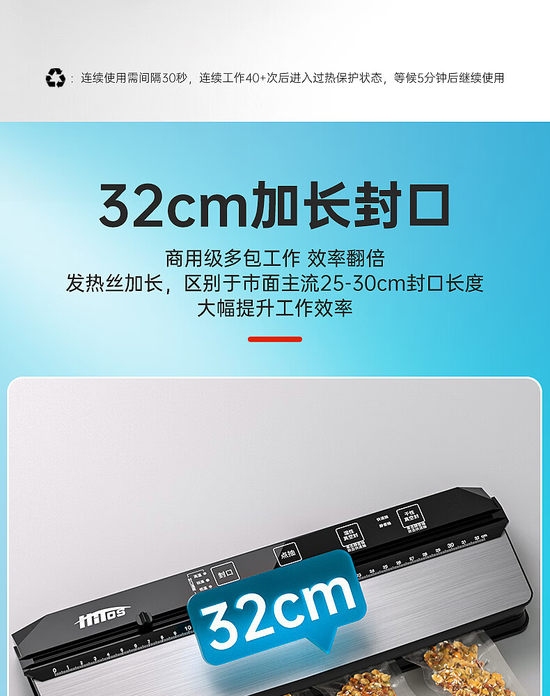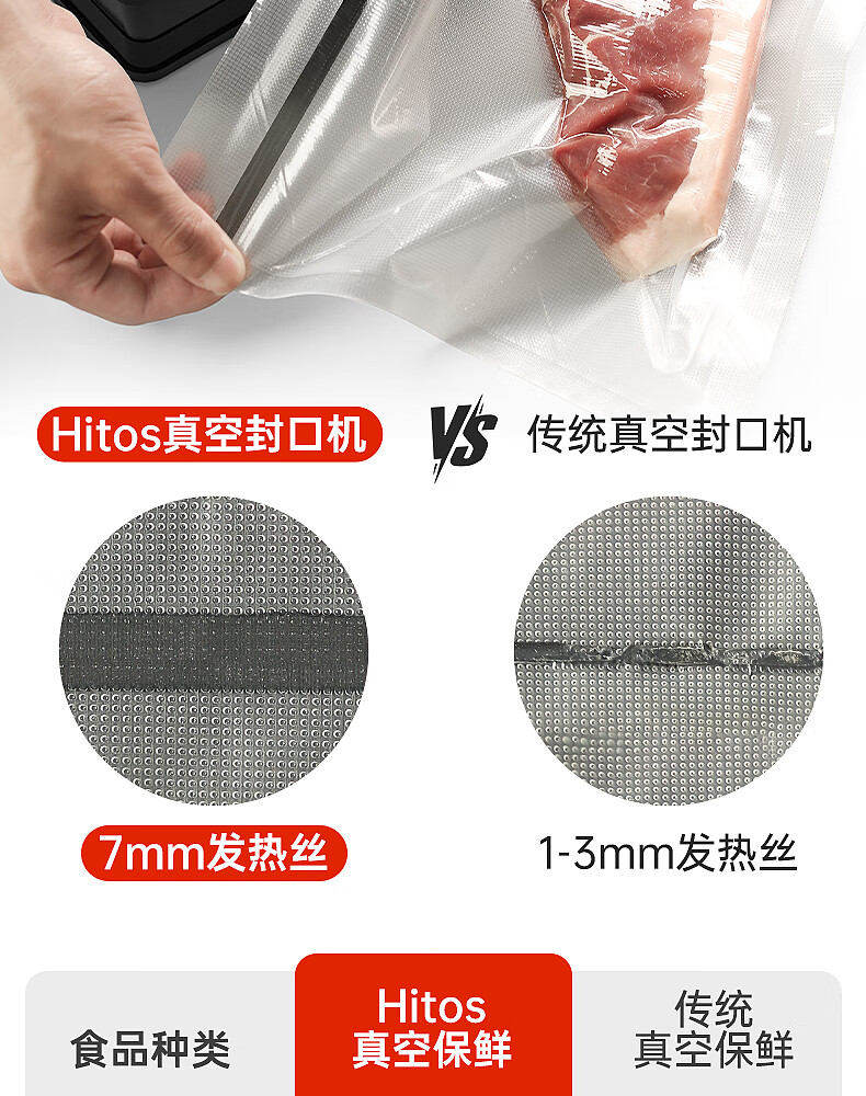 HITOS German vacuum sealing machine household large suction vacuum food preservation packaging machine double pump fully automatic small commercial donkey hide gelatin cake vacuum machine dry and wet dual-use vacuum machine 7mm sealing-double pump streamer silver