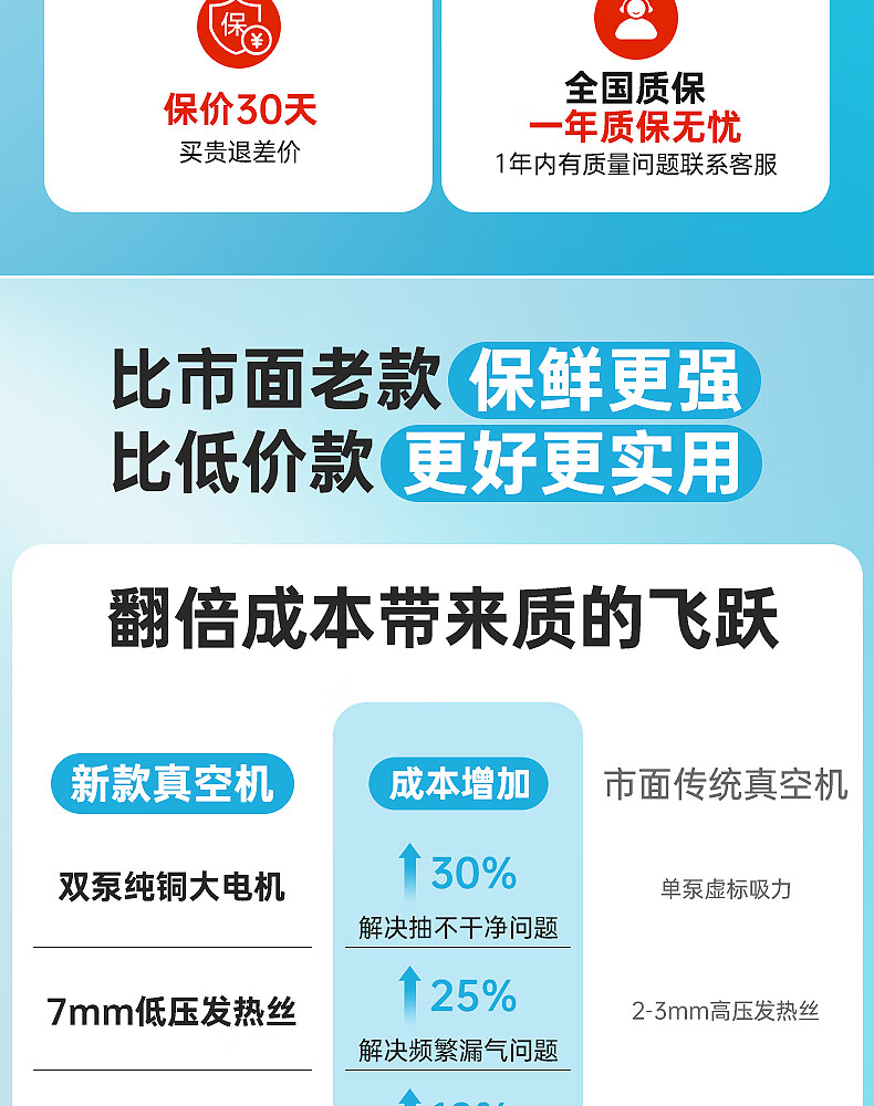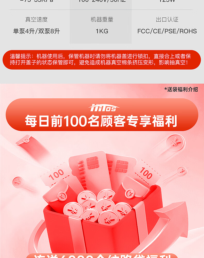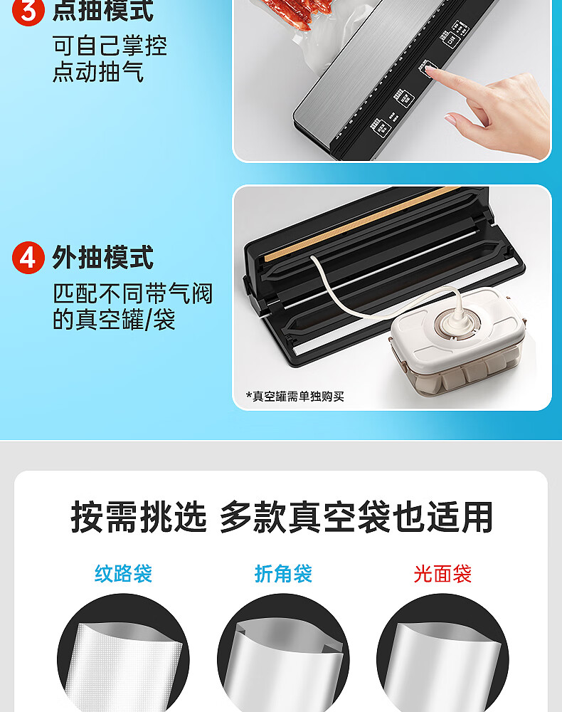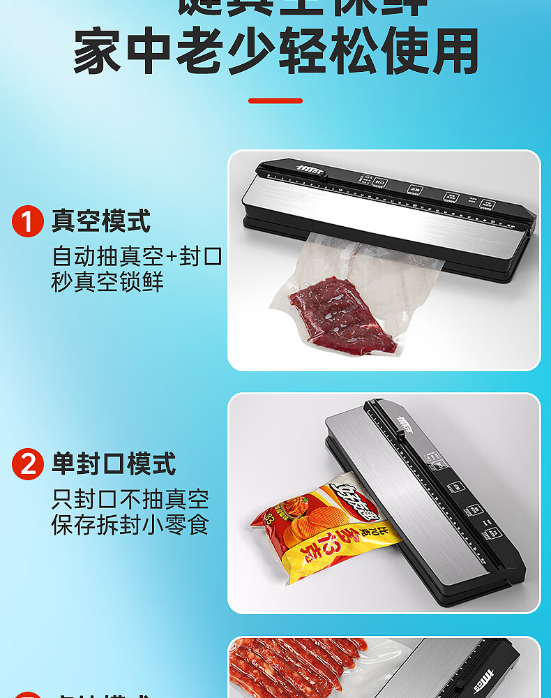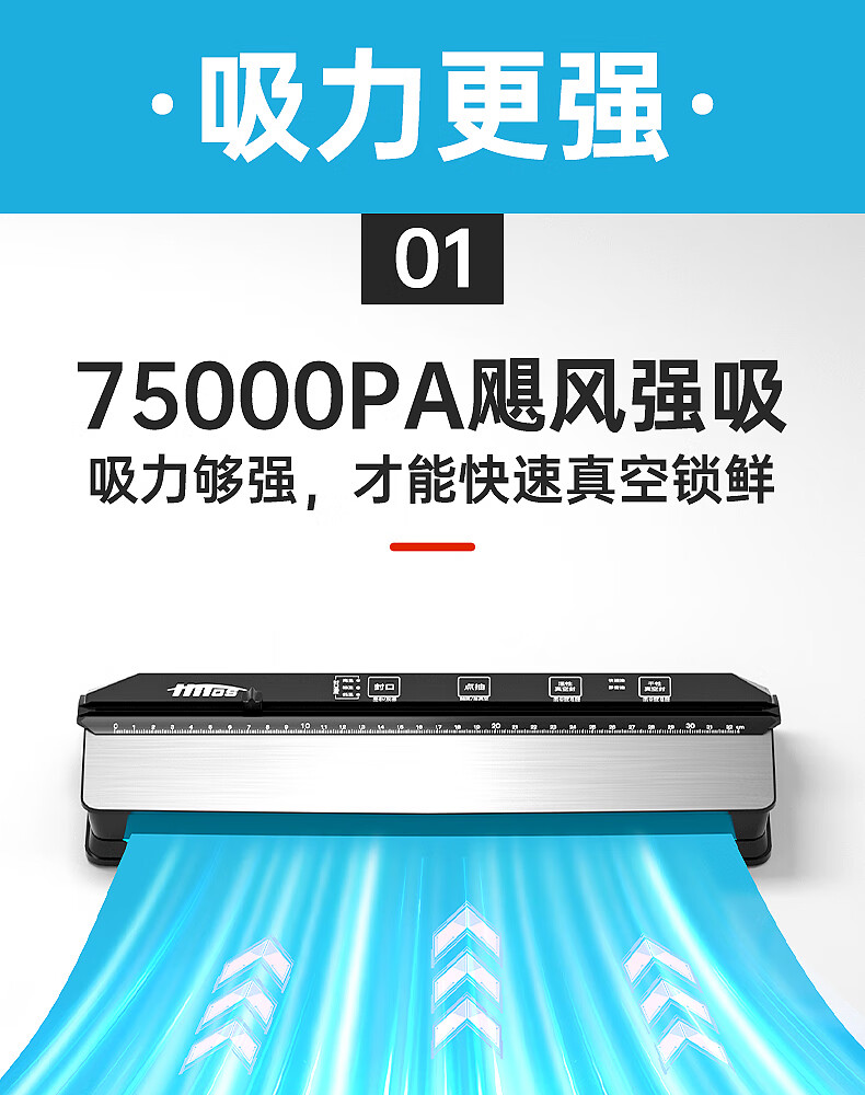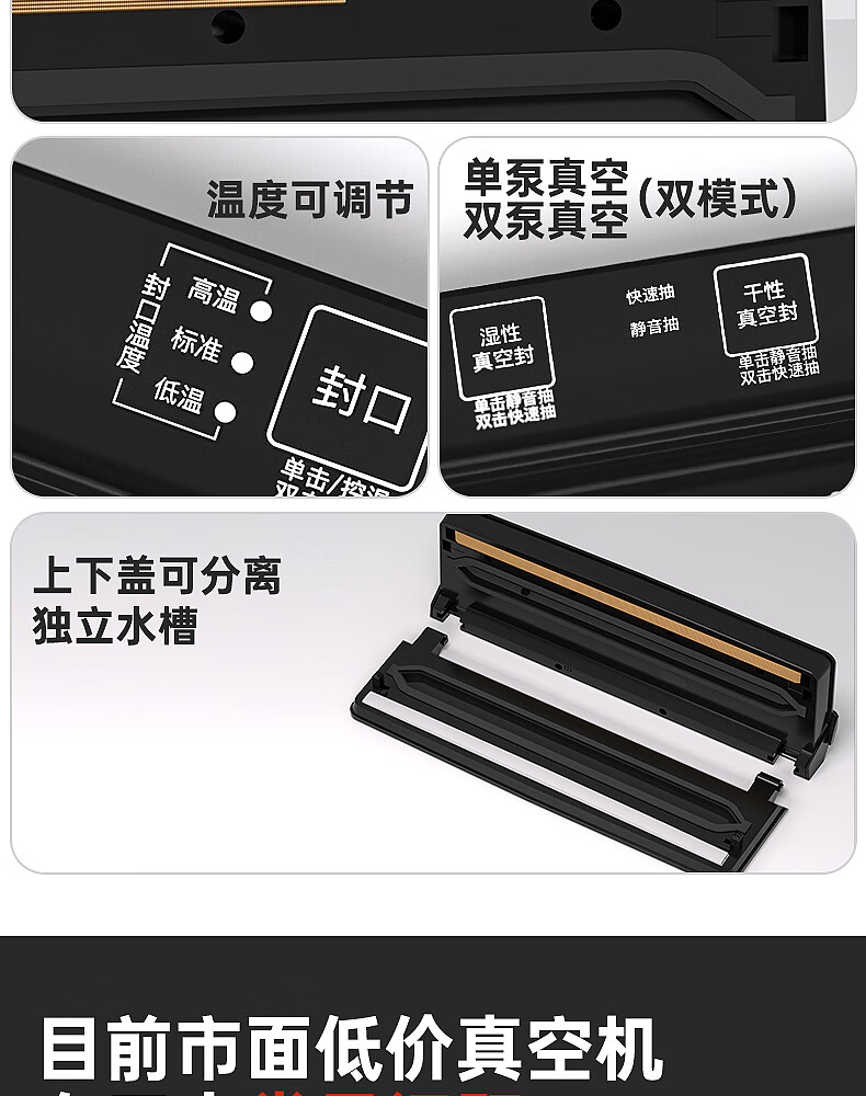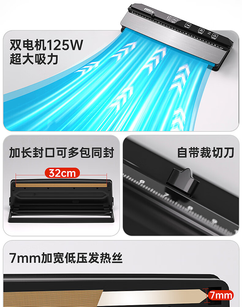 HITOS German vacuum sealing machine household large suction vacuum food preservation packaging machine double pump fully automatic small commercial donkey hide gelatin cake vacuum machine dry and wet dual-use vacuum machine 7mm sealing-double pump streamer silver