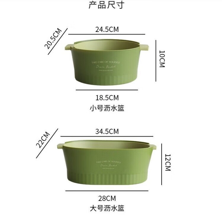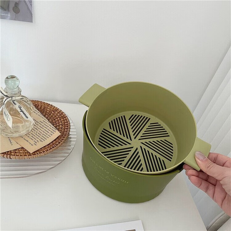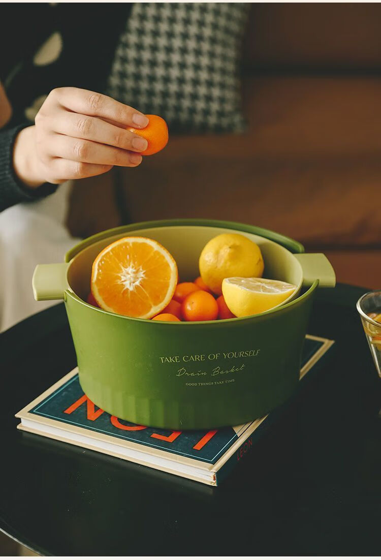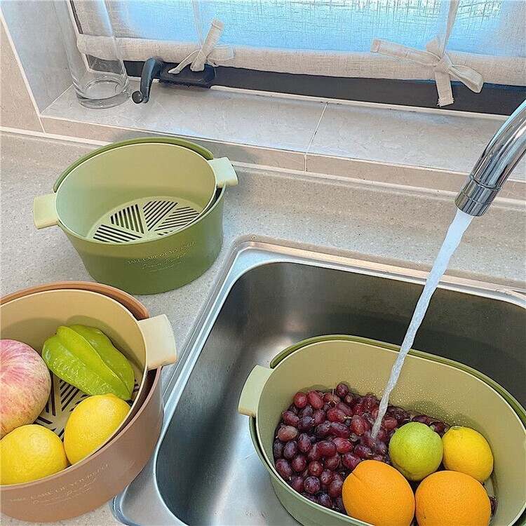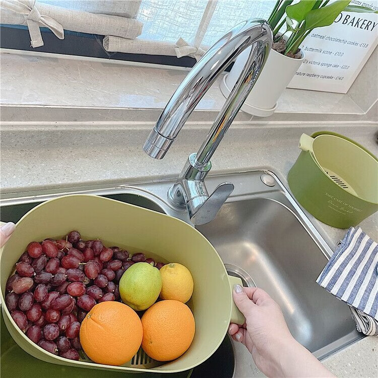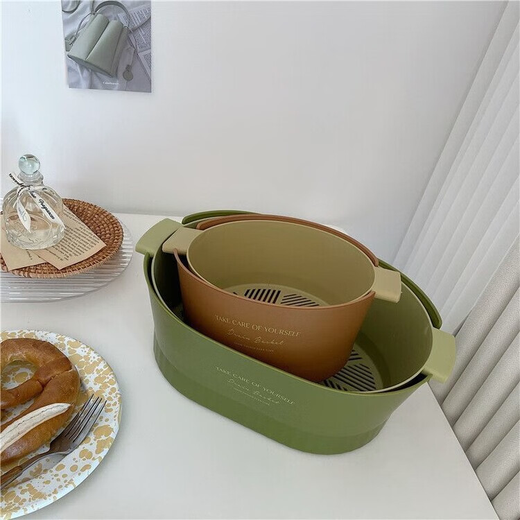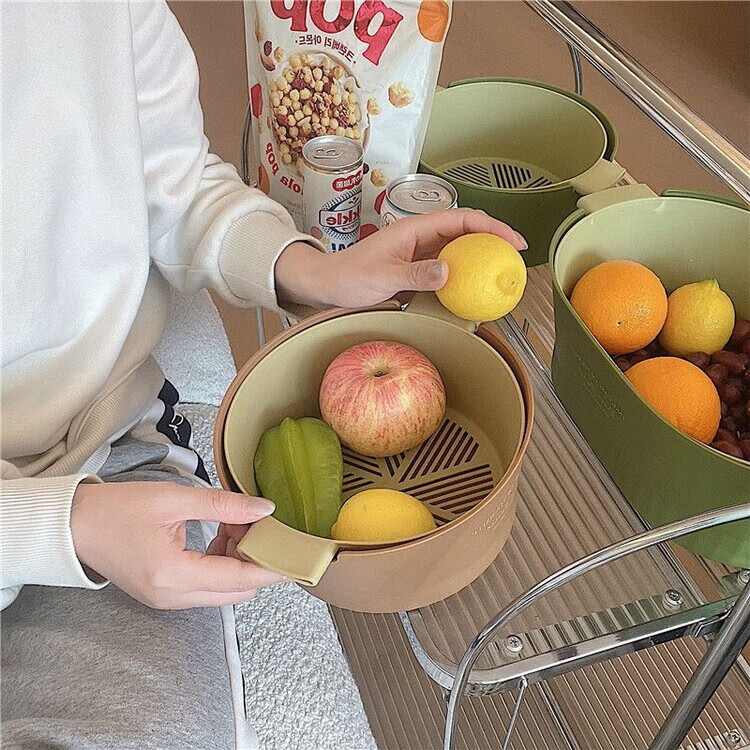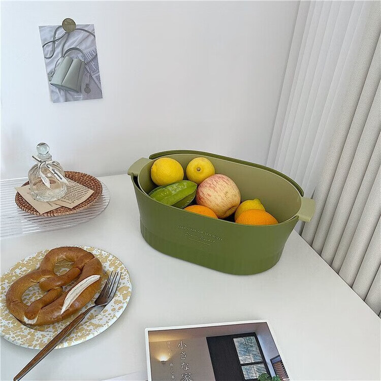 Mingyu thickened double-layer drain basket kitchen vegetable basket fruit basket bowl fruit plate vegetable basin fruit basin home living room coffee table new ins style high-looking multi-functional drain basket matcha green large size 2 pieces 4-piece set