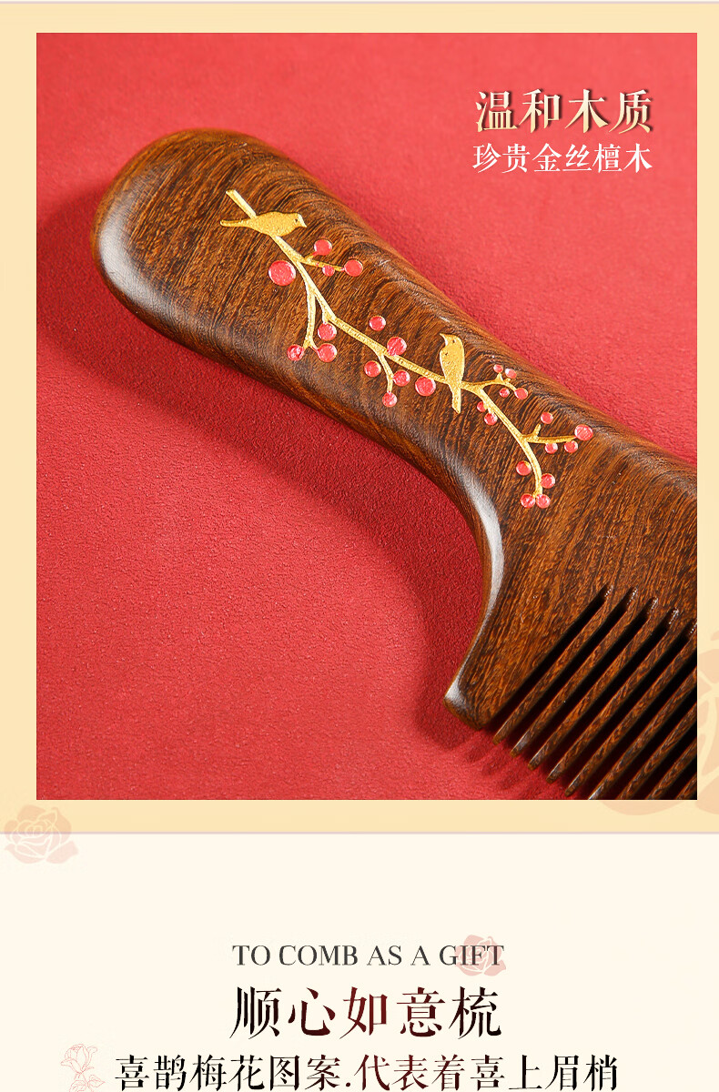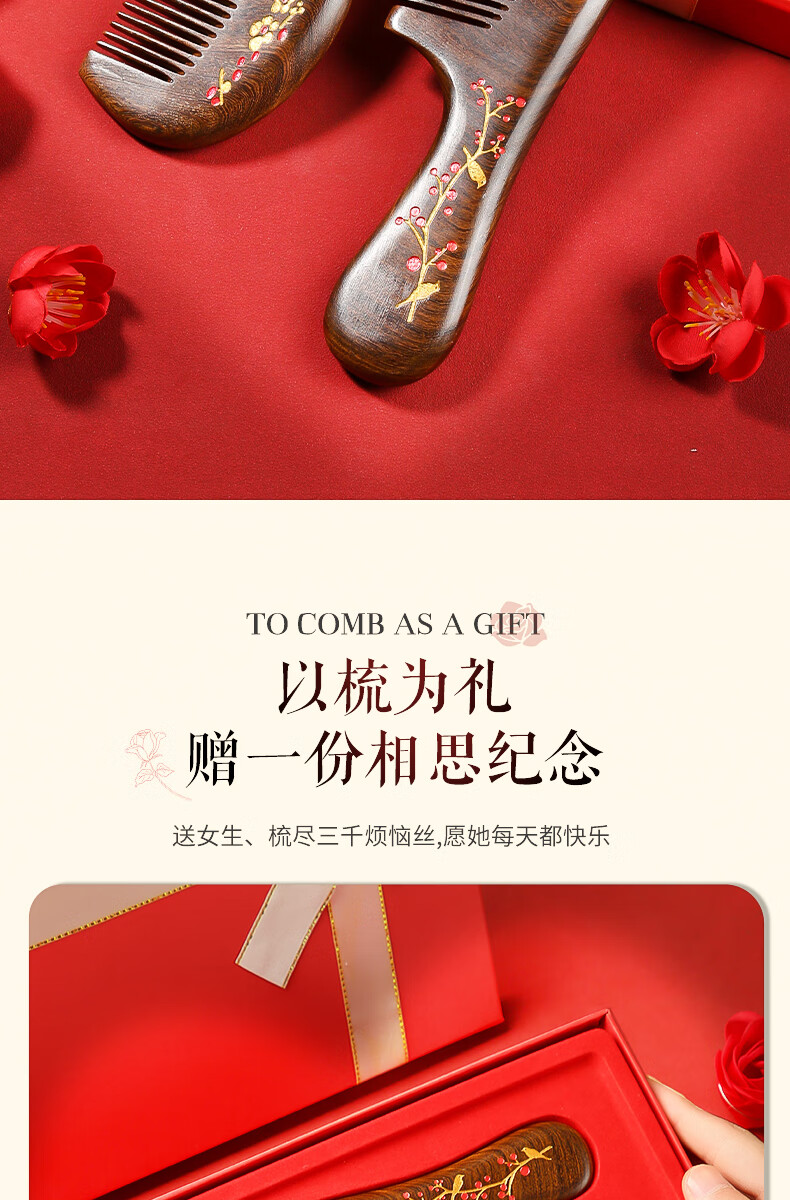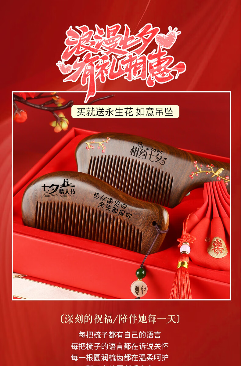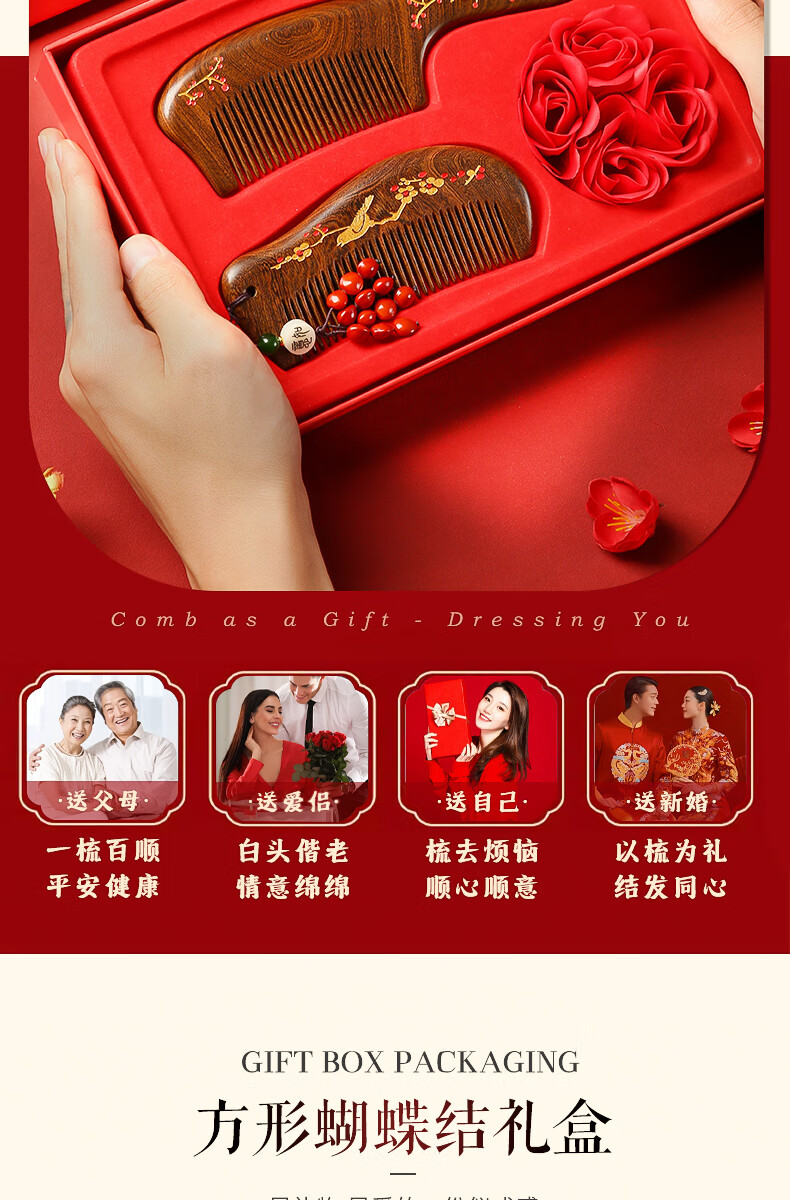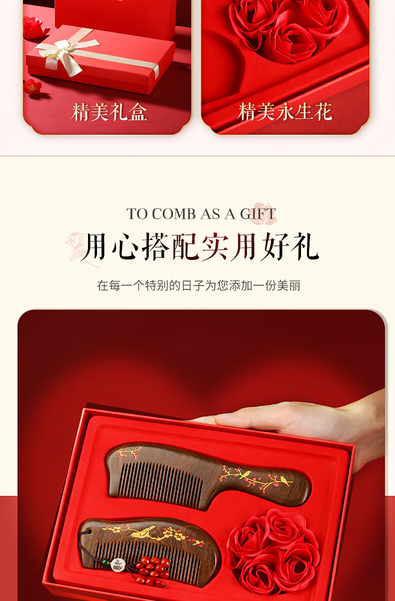 Carpenter Tan's golden sandalwood comb, a pair of wedding combs for women, a pair of gift boxes for Women's Day, a 520 gift for my girlfriend and my wife's birth, a pair of brow combs + sandalwood mirror + gift box +