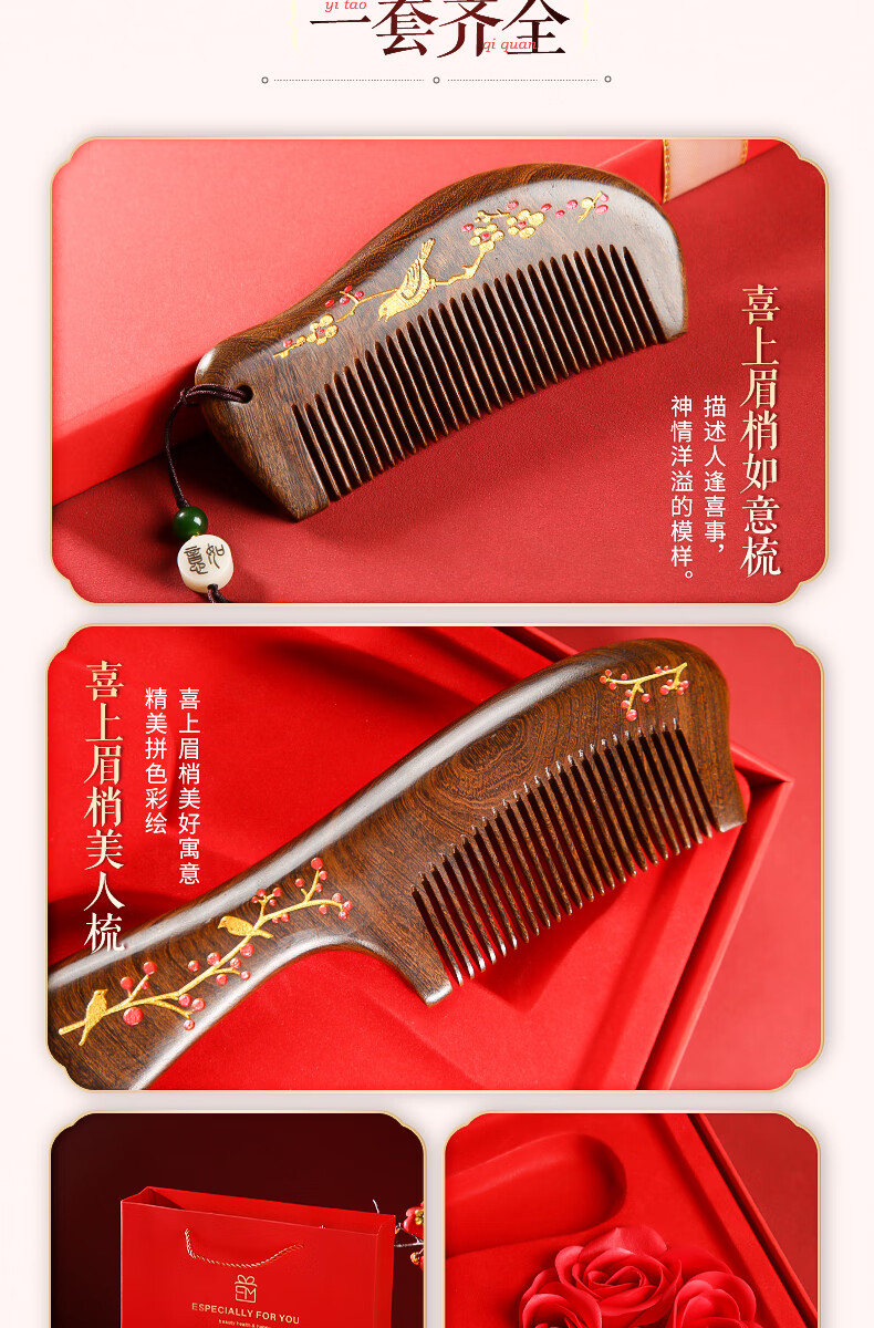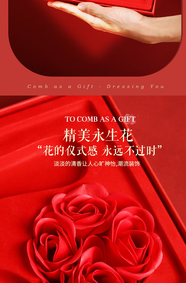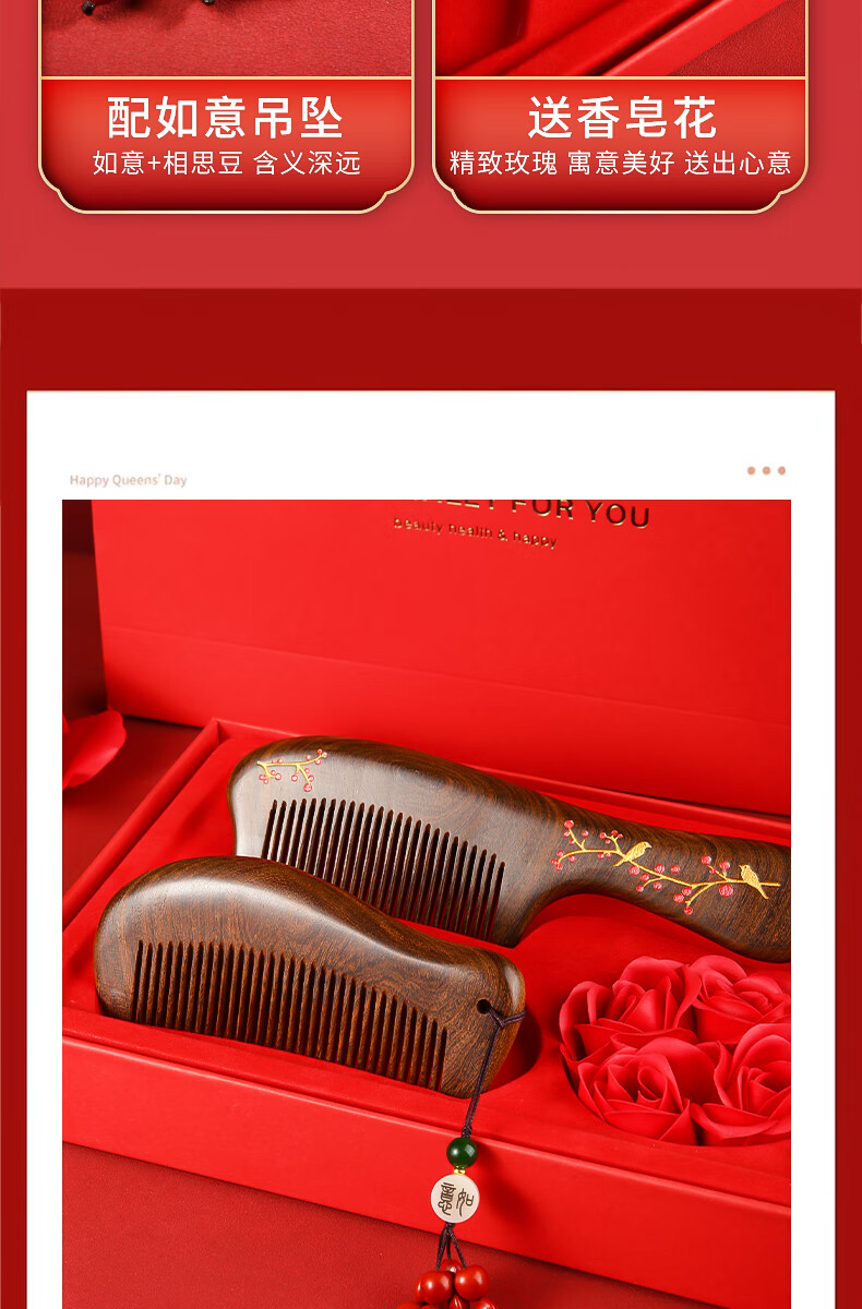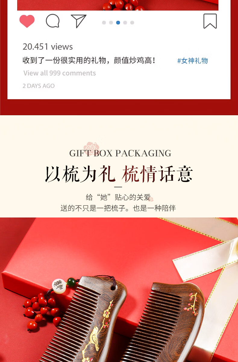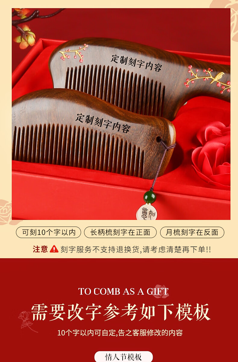 Carpenter Tan's golden sandalwood comb, a pair of wedding combs for women, a pair of gift boxes for Women's Day, a 520 gift for my girlfriend and my wife's birth, a pair of brow combs + sandalwood mirror + gift box +