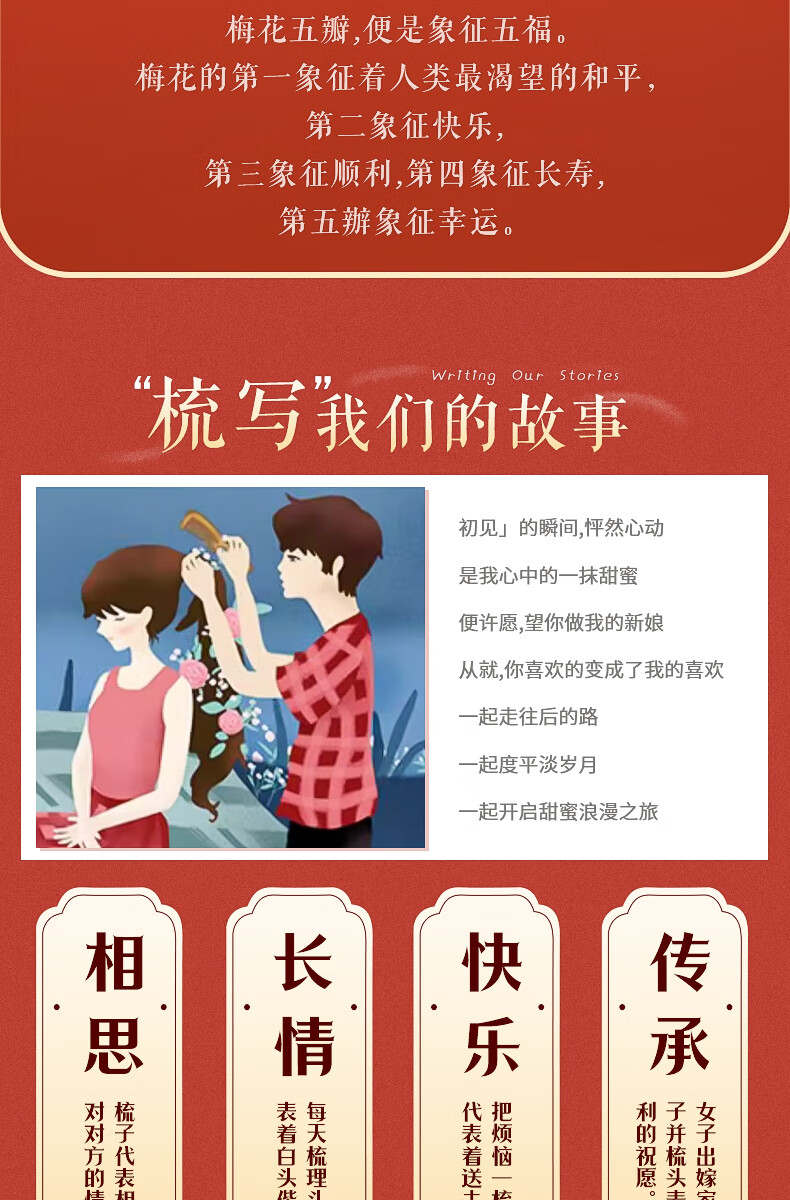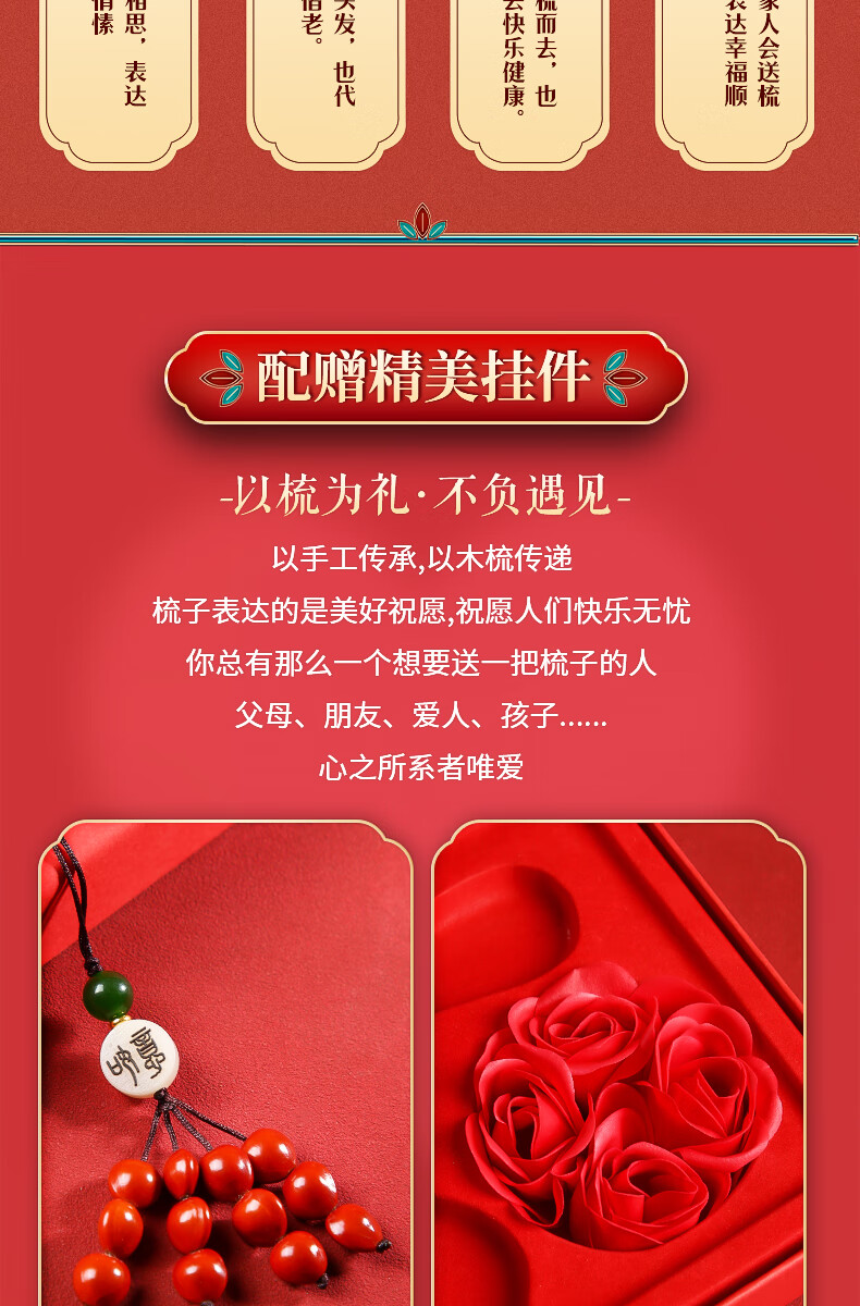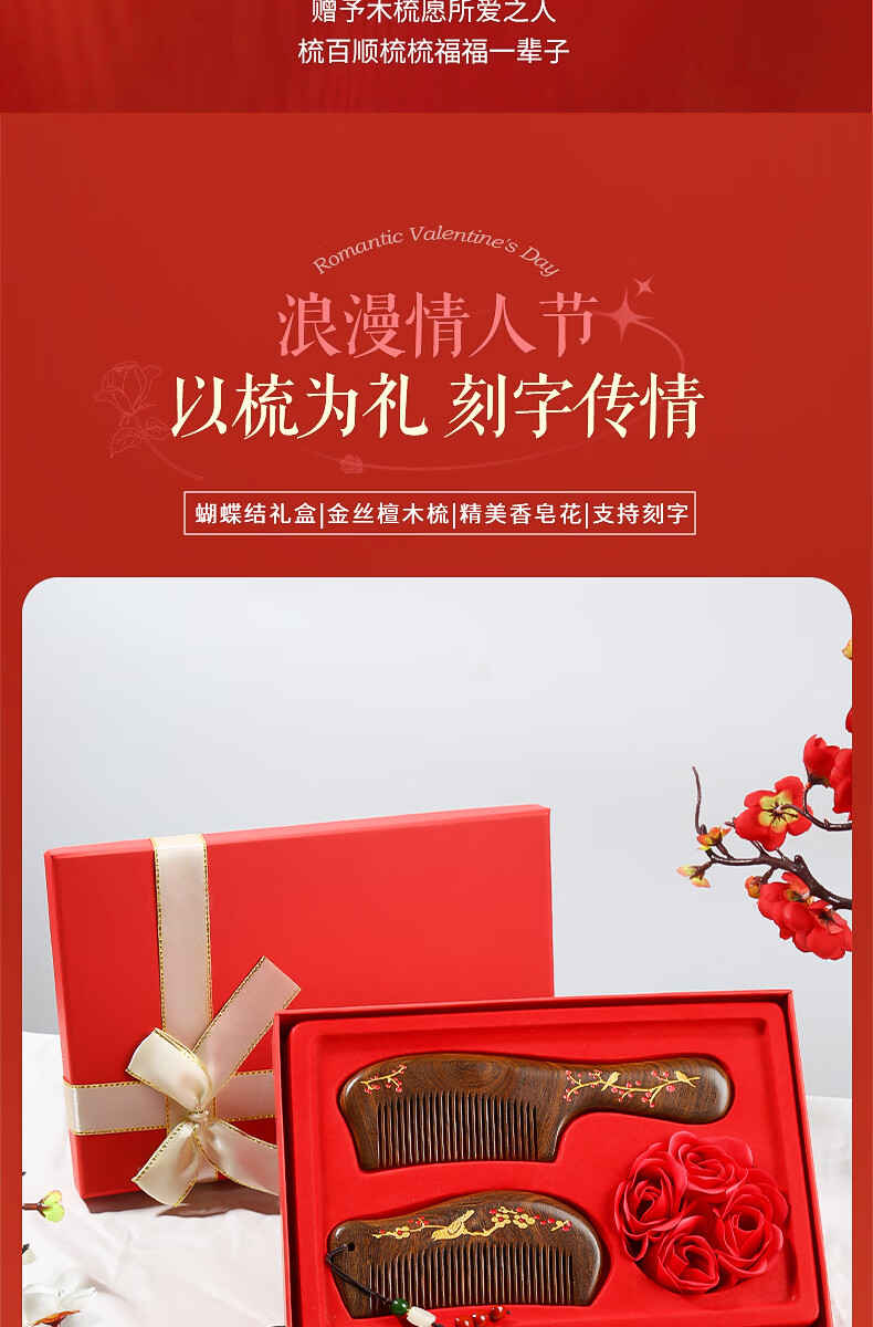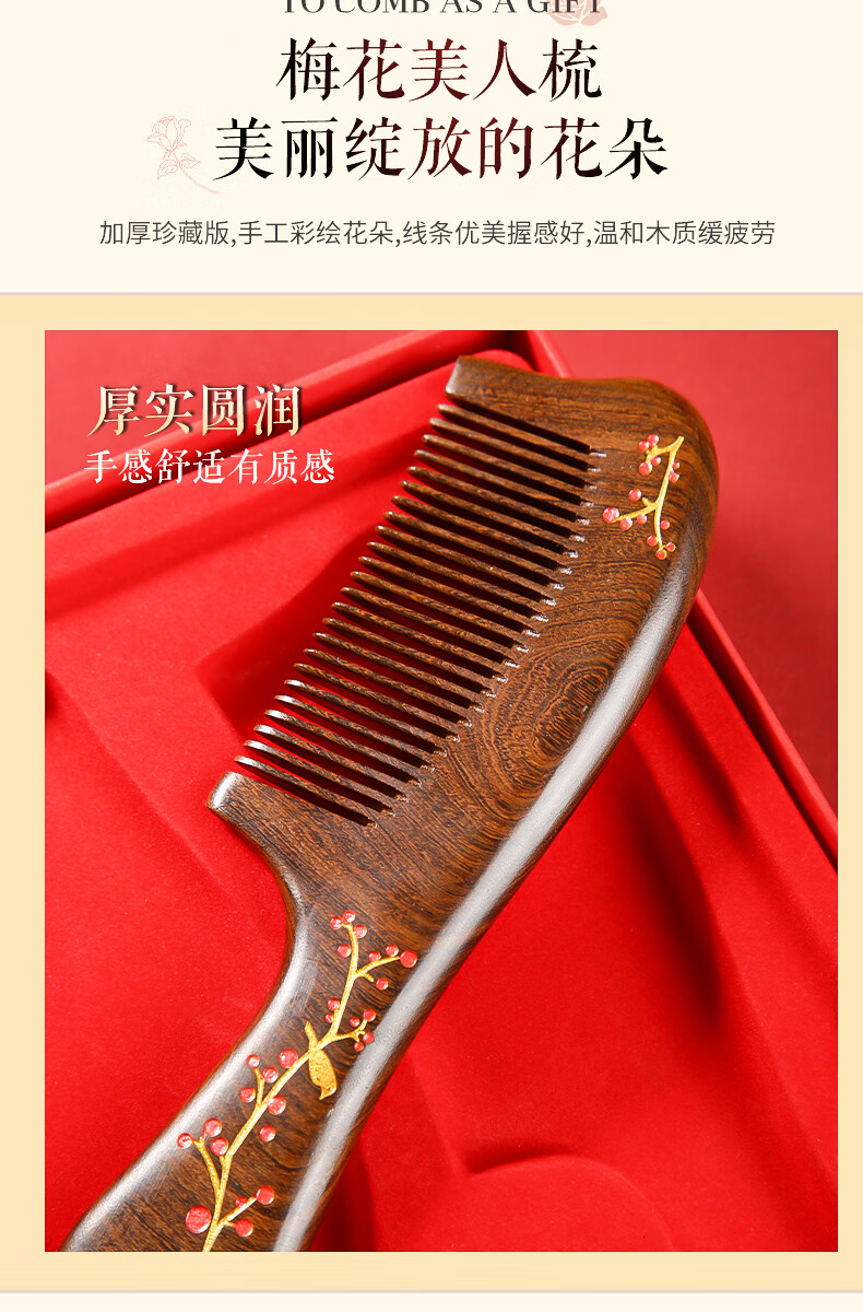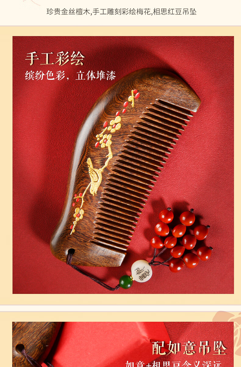 Carpenter Tan's golden sandalwood comb, a pair of wedding combs for women, a pair of gift boxes for Women's Day, a 520 gift for my girlfriend and my wife's birth, a pair of brow combs + sandalwood mirror + gift box +