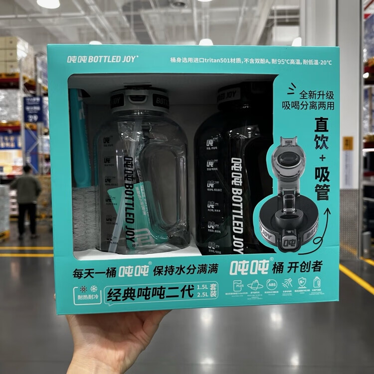 Tonton purchase Sam Tonbucket second generation double drinking kettle and cup set for couples and children large capacity sports kettle 1.5L gray + 2.5 black total capacity 3500ml Sam purchase and delivery