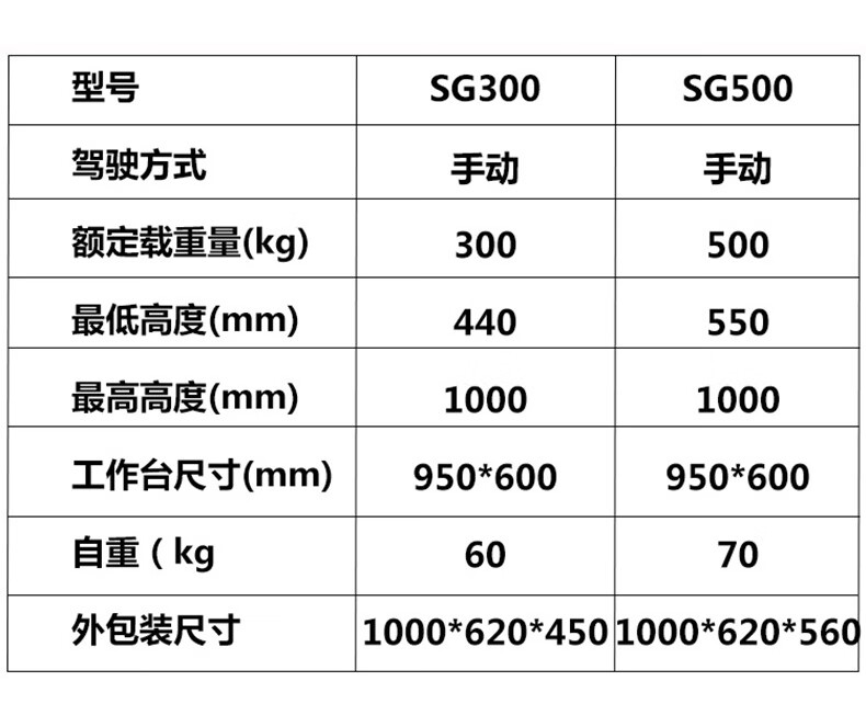 Hand screw lift SG500 small household scissor lift platform truck mobile lift truck loading and unloading platform SG500 load capacity 500 kg 1 meter