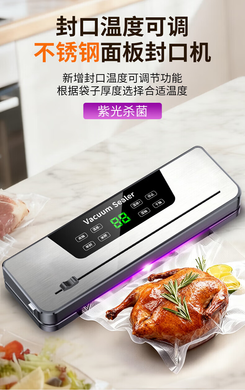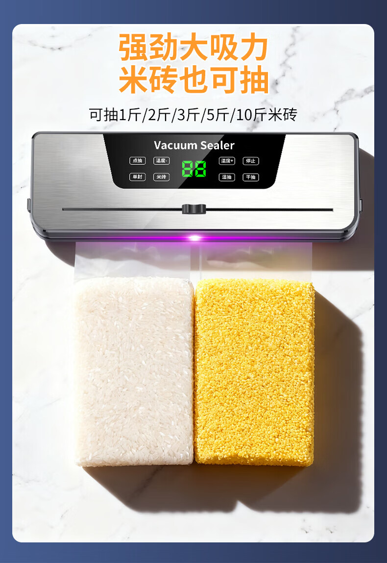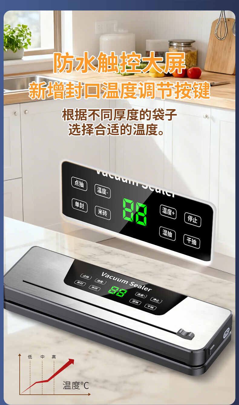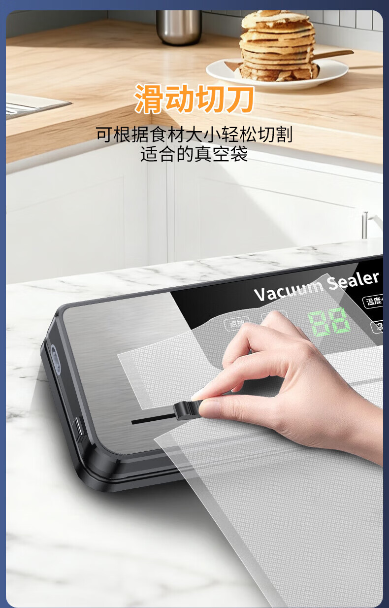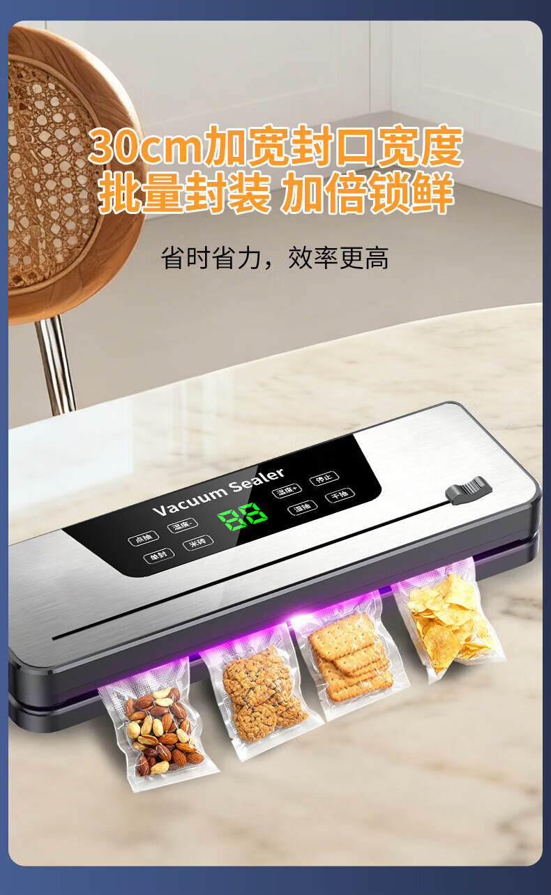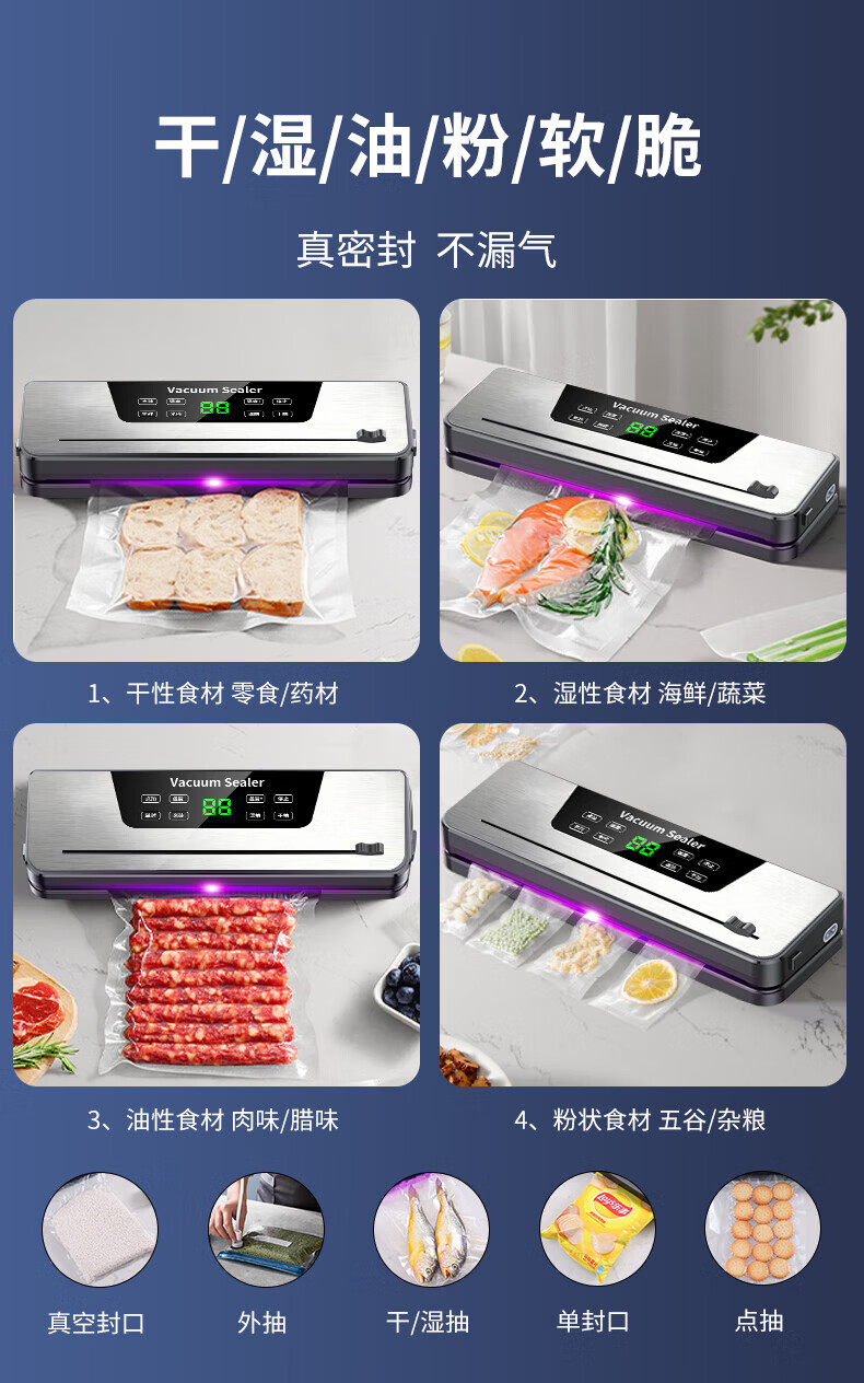 Kaidepudi German quality fully automatic vacuum sealing machine household commercial high suction kitchen sealing food grade packaging machine bacon sausage bag plastic sealing machine compression artifact upgraded temperature adjustable high suction +20*30cm 100 vacuum bags with cutter