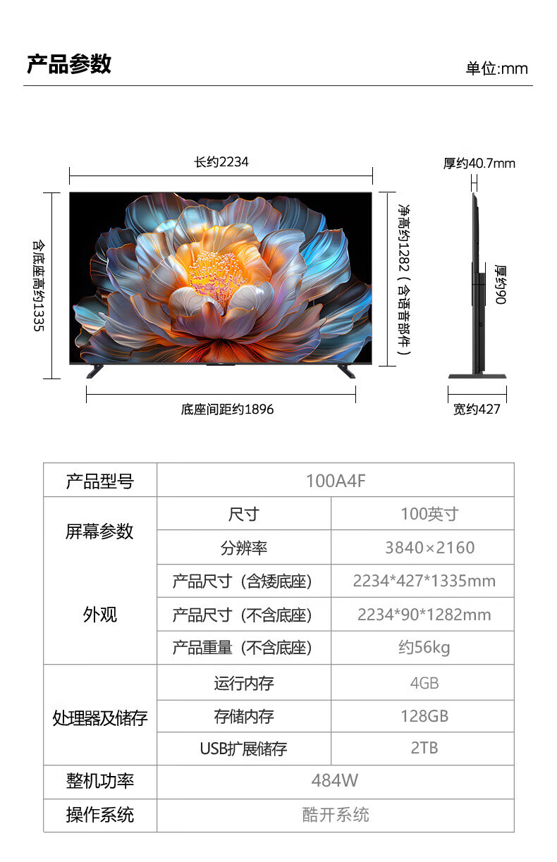Skyworth movable TV best friend machine projection office training large screen 32 40 43 50 55 65 75 85 100-inch live broadcast large screen store display vertical screen all-in-one machine 75-inch rotating set TV + induction rotating cart frame