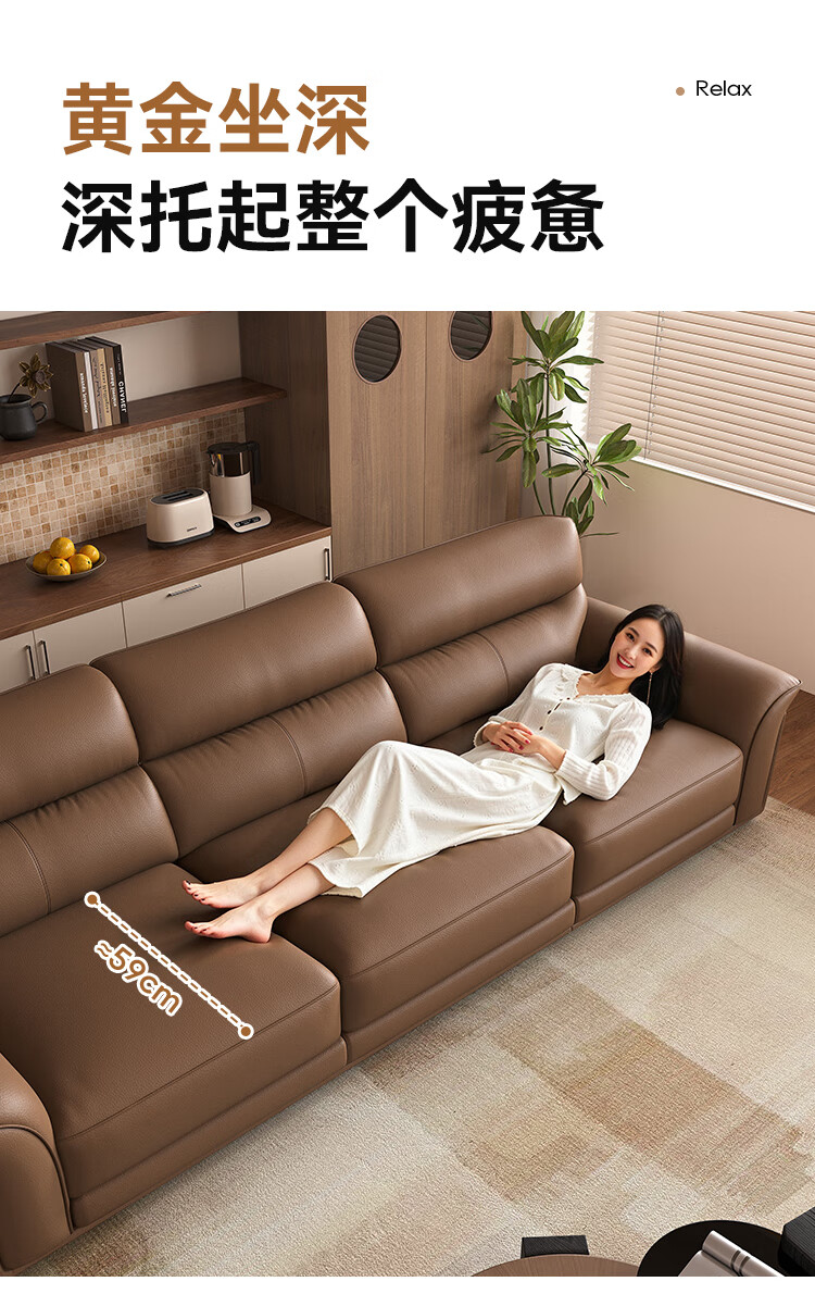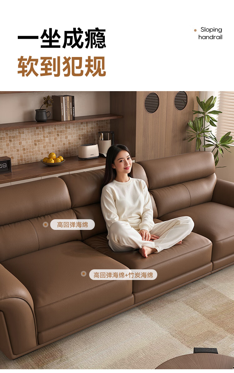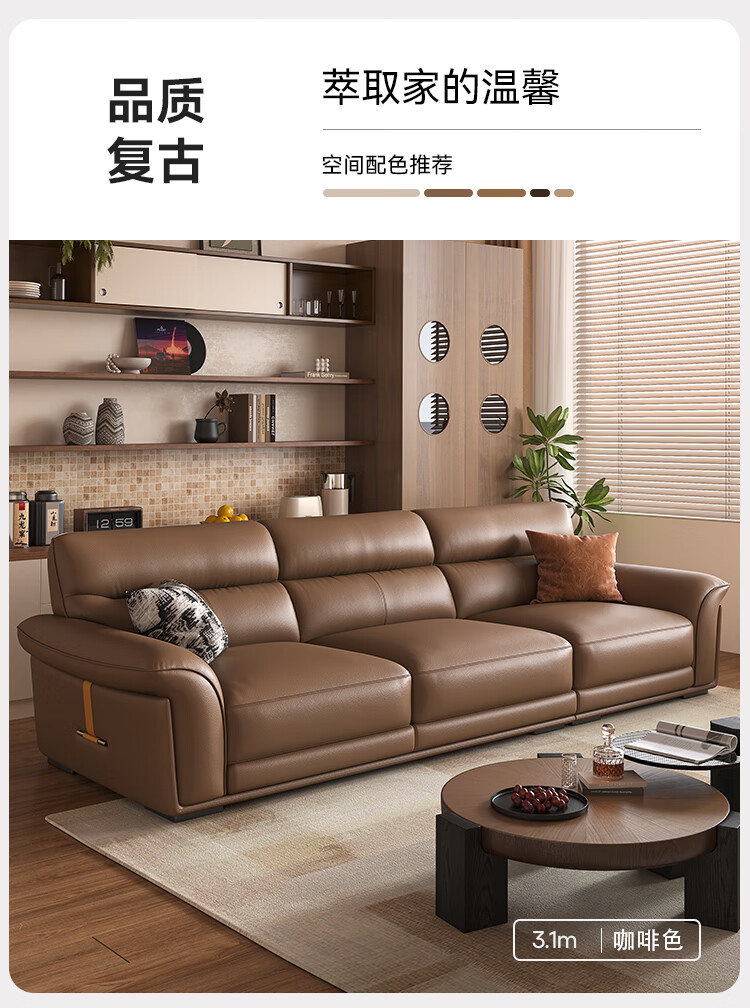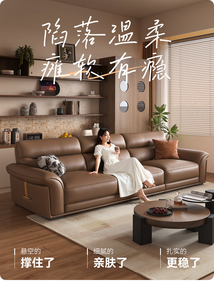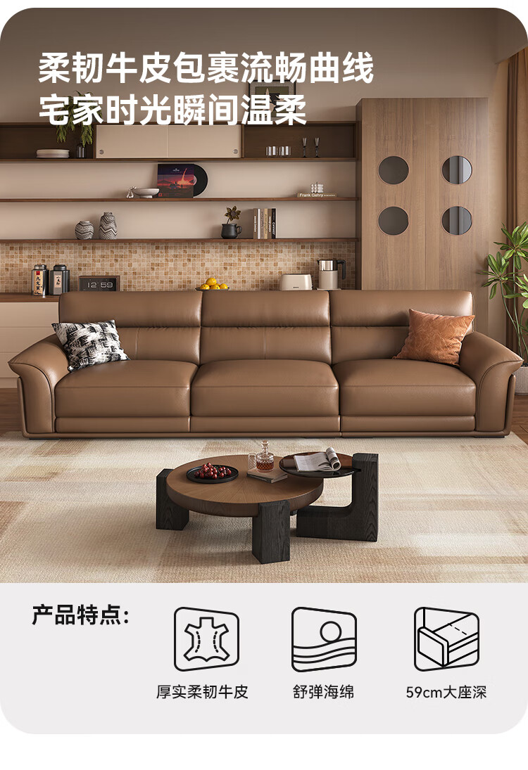 KUKA government subsidy Italian Internet celebrity leather sofa first layer cowhide 2025 new living room light luxury retro straight row 1526 brown 2.8m丨soft and elastic skin-friendly丨layers of pressure relief丨first layer cowhide wide and deep sitting丨lazy and comfortable丨segmented support丨not collapse after long sitting