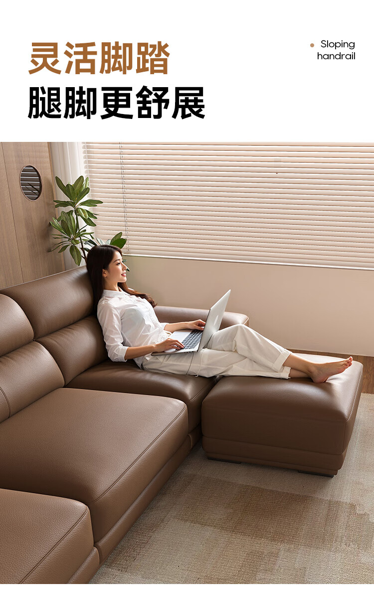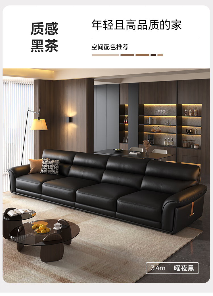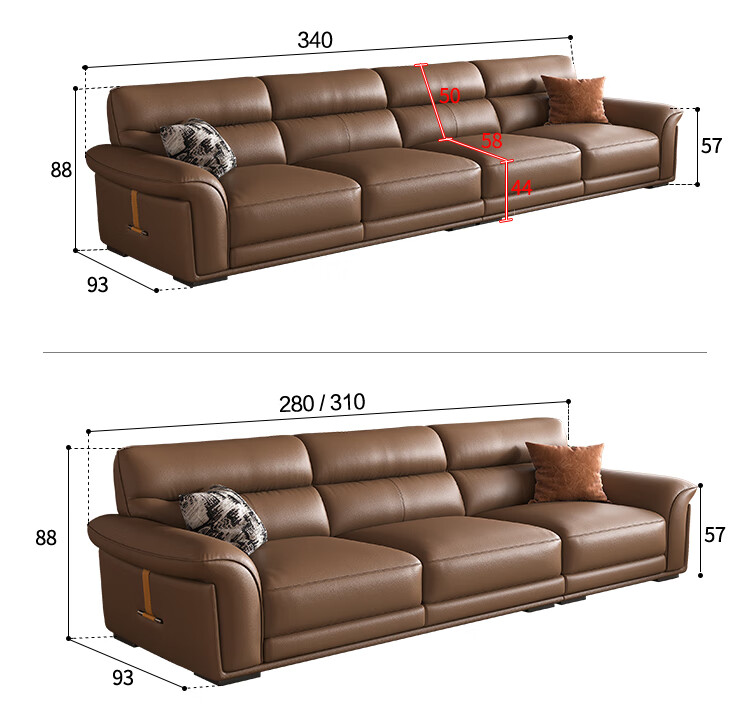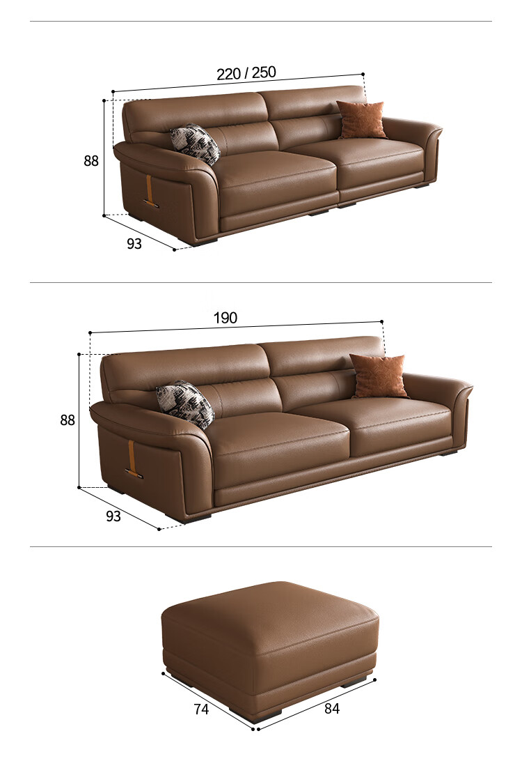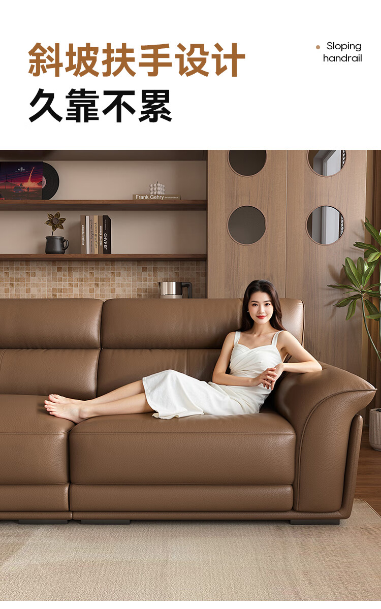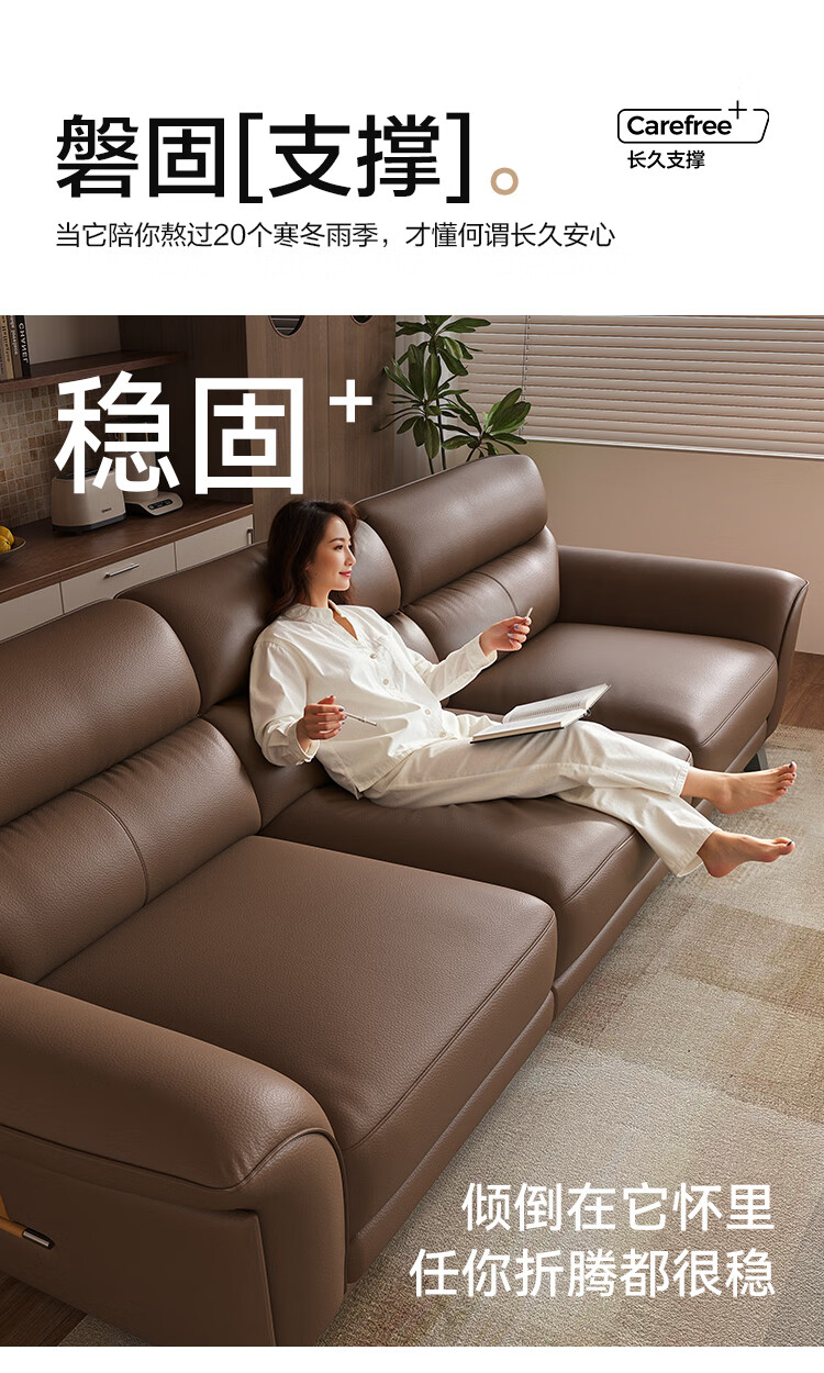 KUKA government subsidy Italian Internet celebrity leather sofa first layer cowhide 2025 new living room light luxury retro straight row 1526 brown 2.8m丨soft and elastic skin-friendly丨layers of pressure relief丨first layer cowhide wide and deep sitting丨lazy and comfortable丨segmented support丨not collapse after long sitting