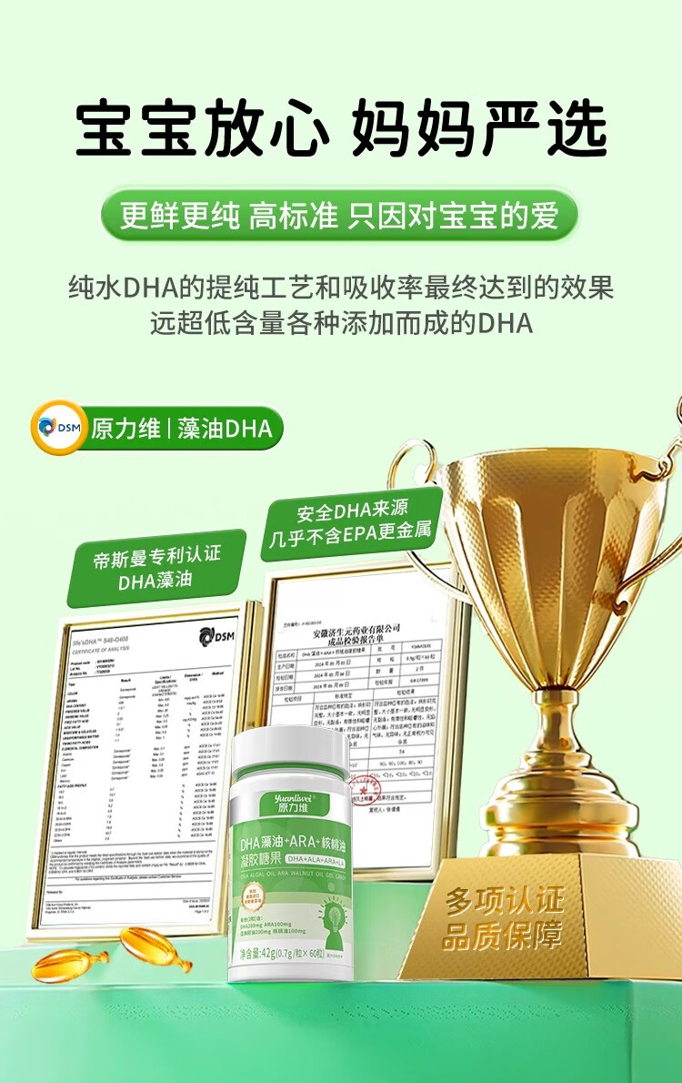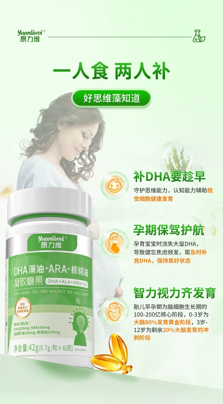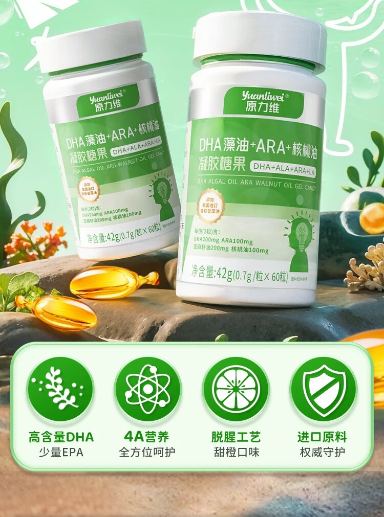 Yuanliwei Yuanliwei Baby DHA Algae Oil Yuanliwei Baby DHA Algae Oil Yuanlw Yuanliwei Eye Brain Walnut Oil RLI 1 bottle trial pack-Basic UP
