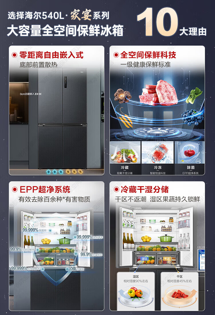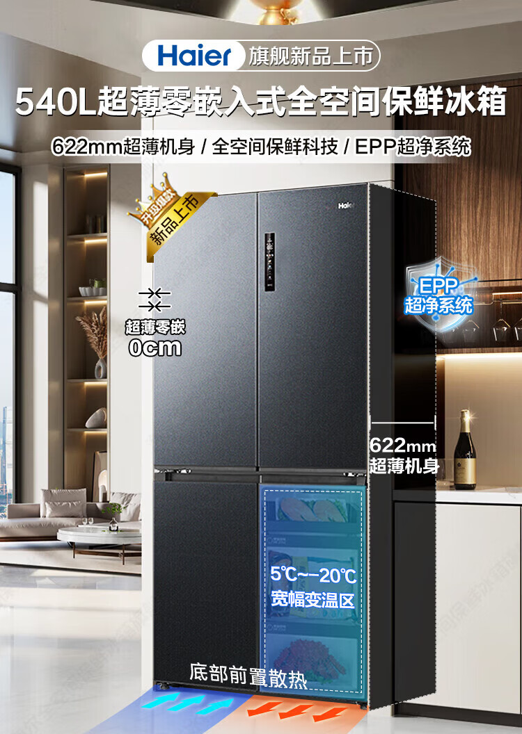 Haier Refrigerator 540L household cross-door four-door full-space fresh-keeping technology EPP clean system first-level dual-frequency oxygen-blocking dry and wet storage household large-capacity refrigerator Haier 540L + free embedded + full-space fresh-keeping + EPP ultra-clean system