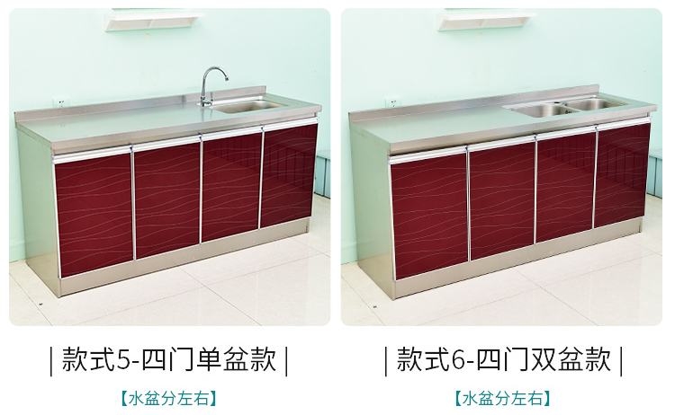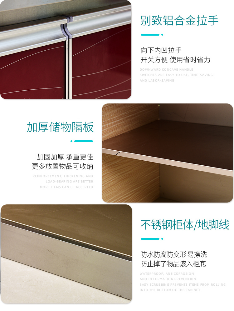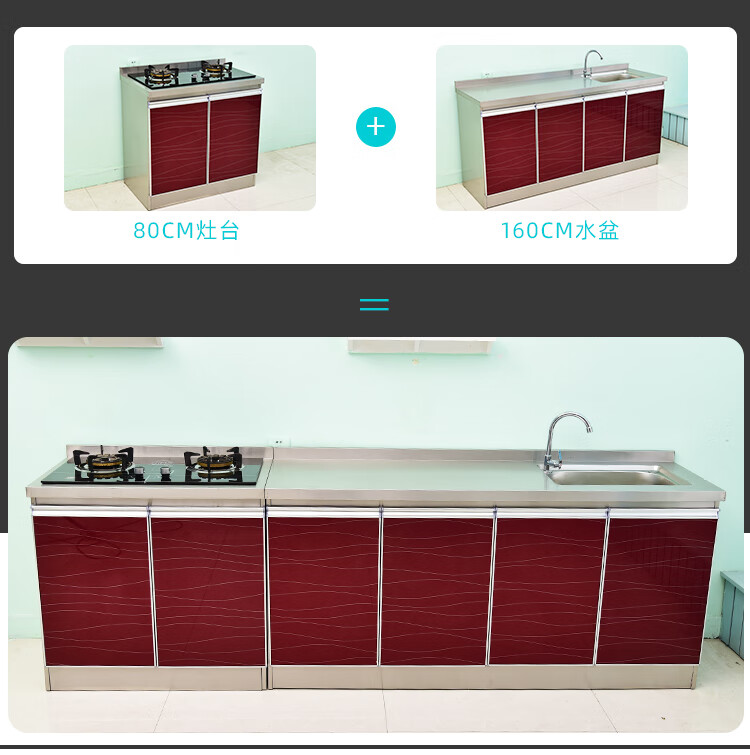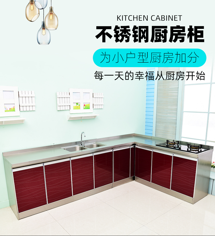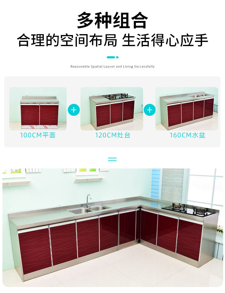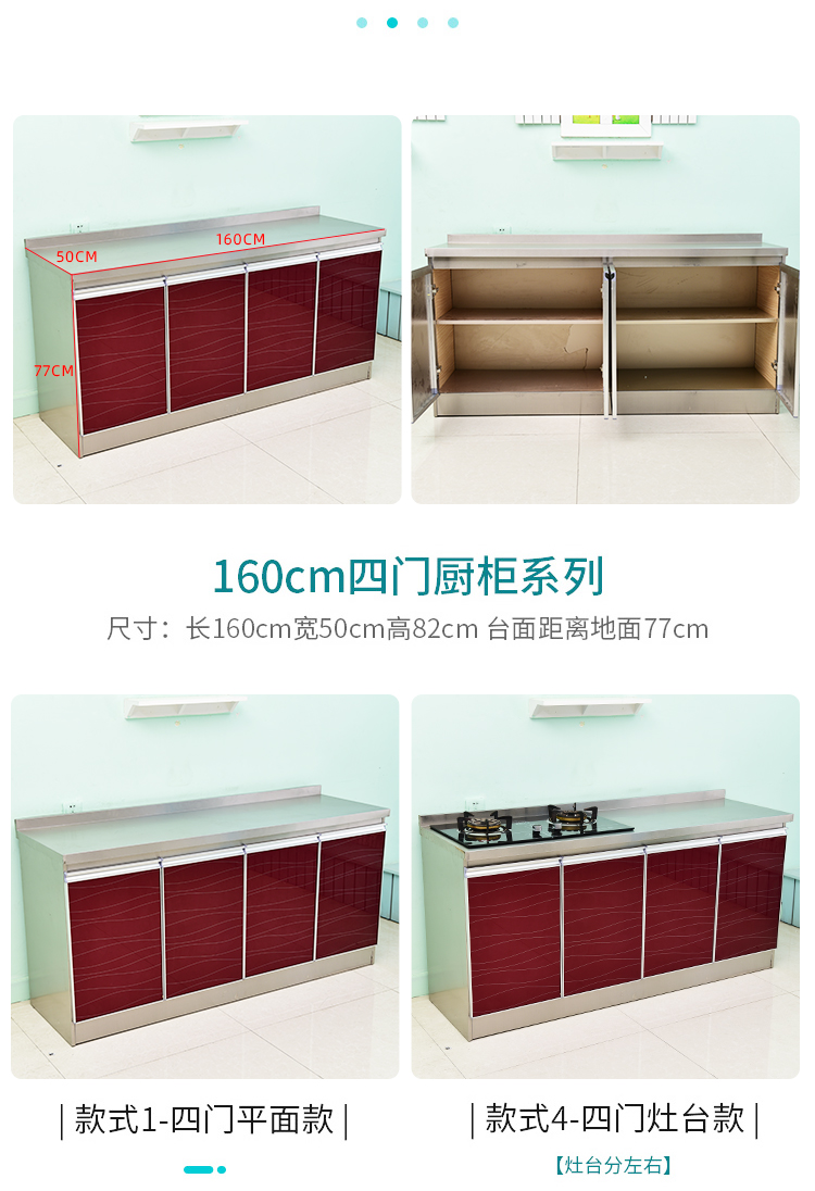 Kitchen Story 2 meters stainless steel kitchen cabinets finished stove cabinet integrated cabinet combination household storage cupboard overall simple rental 180*50 left side opening for stove