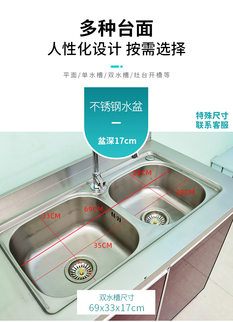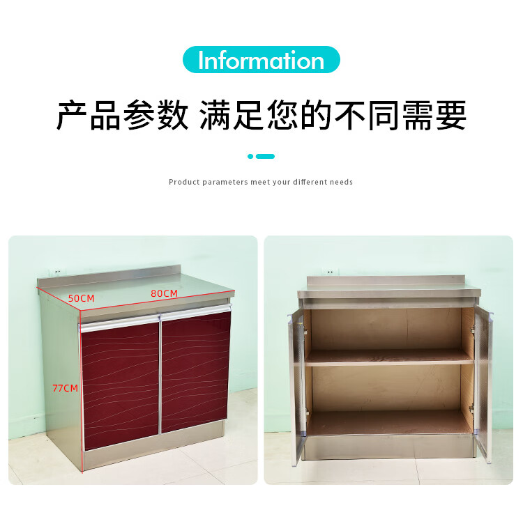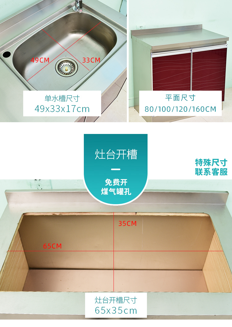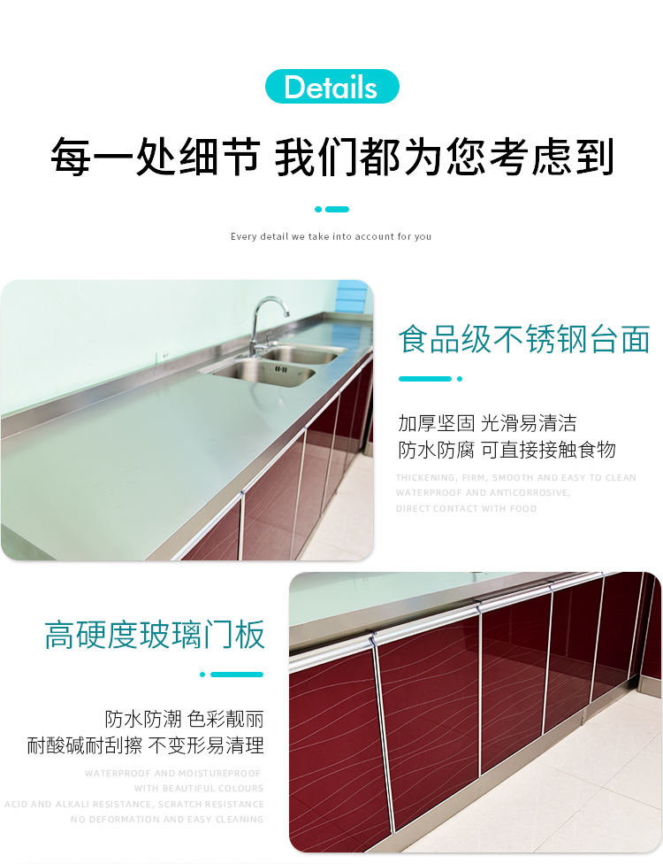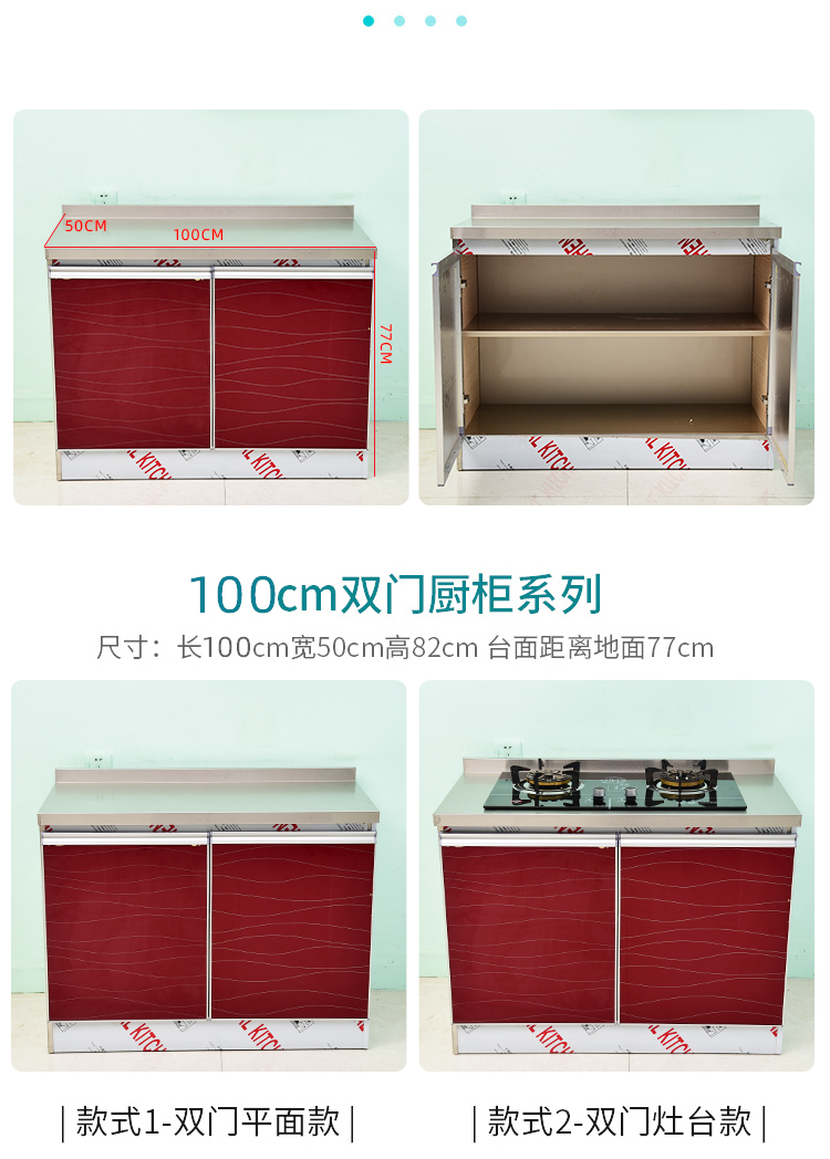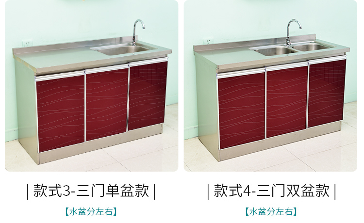 Kitchen Story 2 meters stainless steel kitchen cabinets finished stove cabinet integrated cabinet combination household storage cupboard overall simple rental 180*50 left side opening for stove