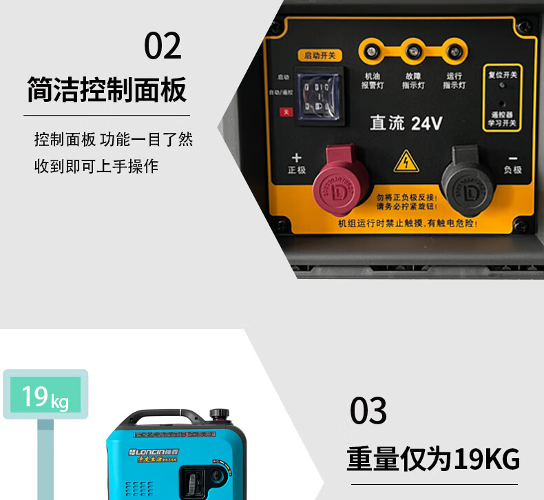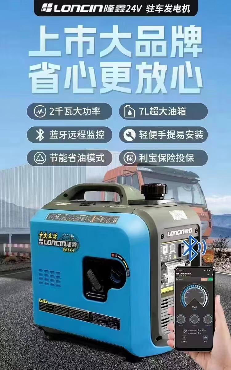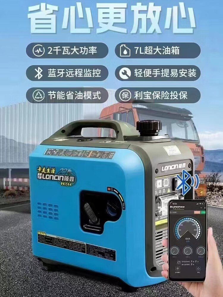 Loncin 24V gasoline generator truck parking air conditioner special portable portable silent DC frequency conversion self-starting and stopping Loncin 24V generator Bluetooth model