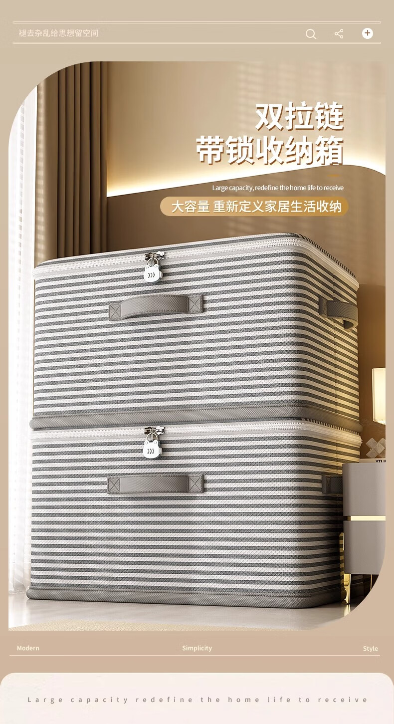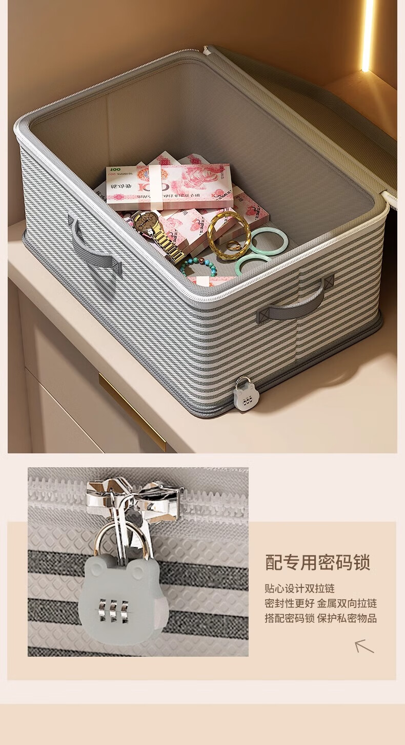Youna Lockable Storage Box Home Wardrobe Clothes Quilt Toy Organizing Box Collapsible Password Storage Box Magic Striped Gray Lockable Model - Extra Large Can Store About 10-15 Jin of Cotton Quilts