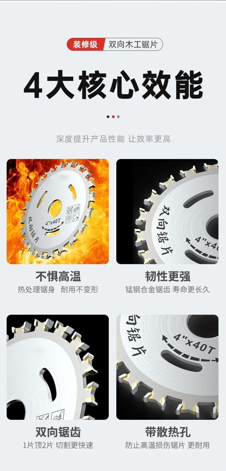 Chengzhou woodworking saw blade 4-inch carbide angle grinder hand grinder wood double-sided cutting blade sharp and wear-resistant two-way saw blade reversible 5 pieces