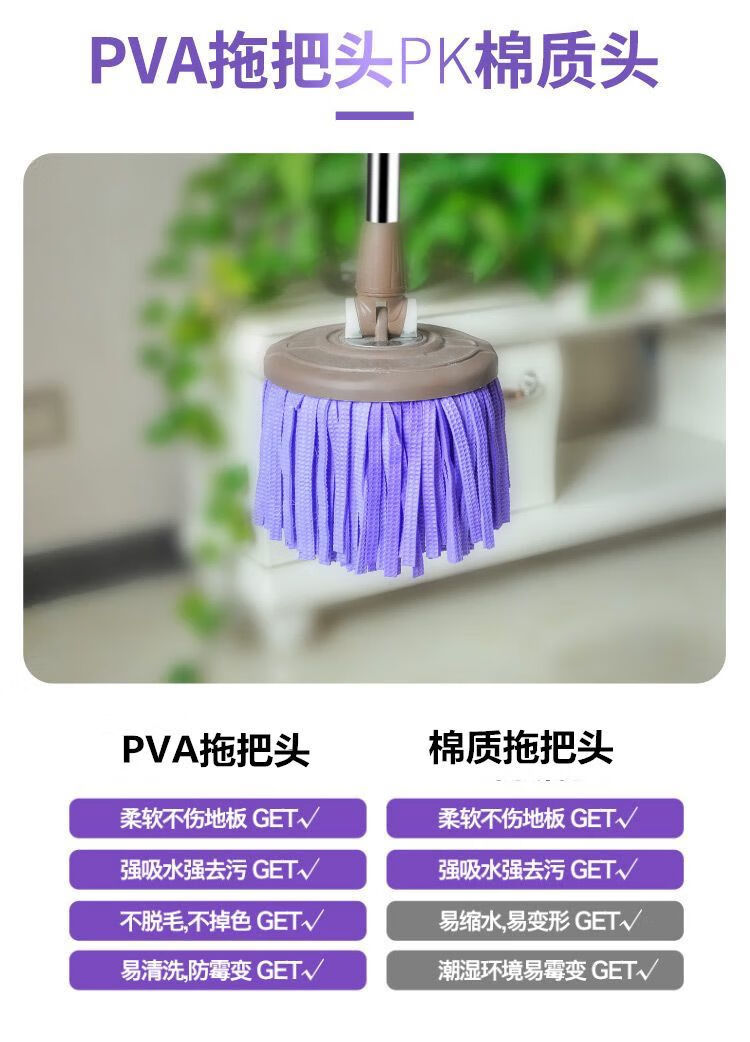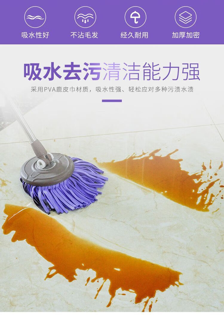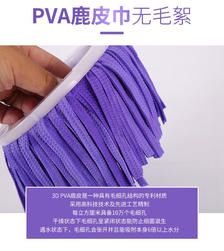 Deerskin mop, traceless household 5d hand-washable lazy spin replacement universal water-absorbent hand-free good god cotton thread accessories mop 5d complete set of spin mop + dehydration bucket random color