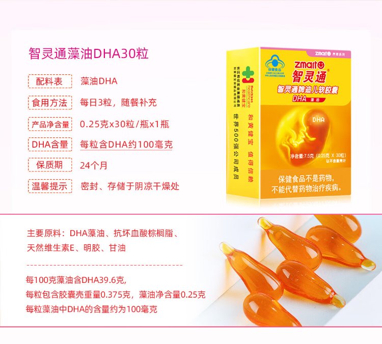 Zhilingtong DHA Algae Oil Soft Capsules Maternal Nutrients for Pregnancy and Lactation Nutrition 30 capsules Expires in August 26