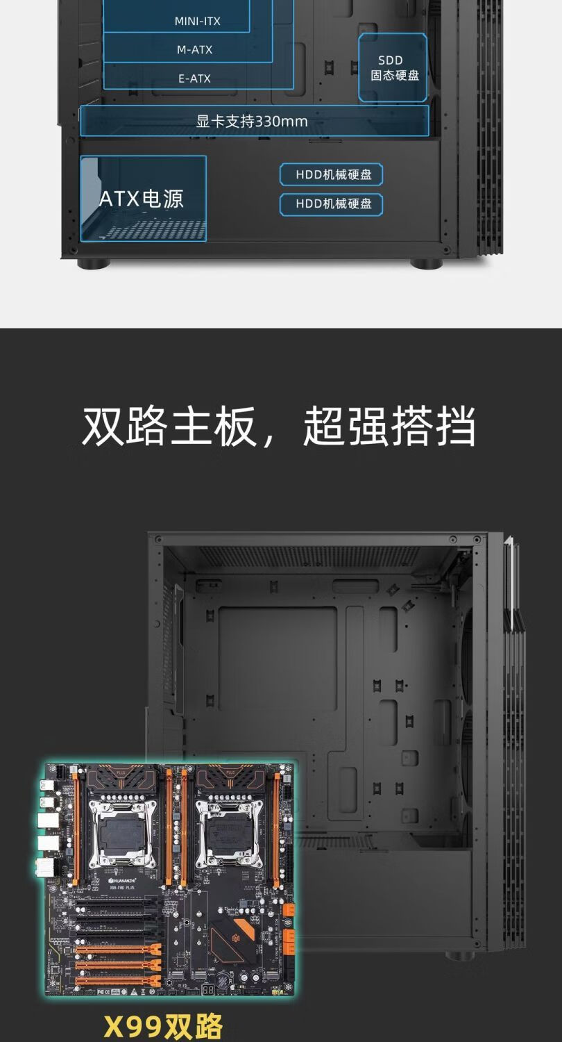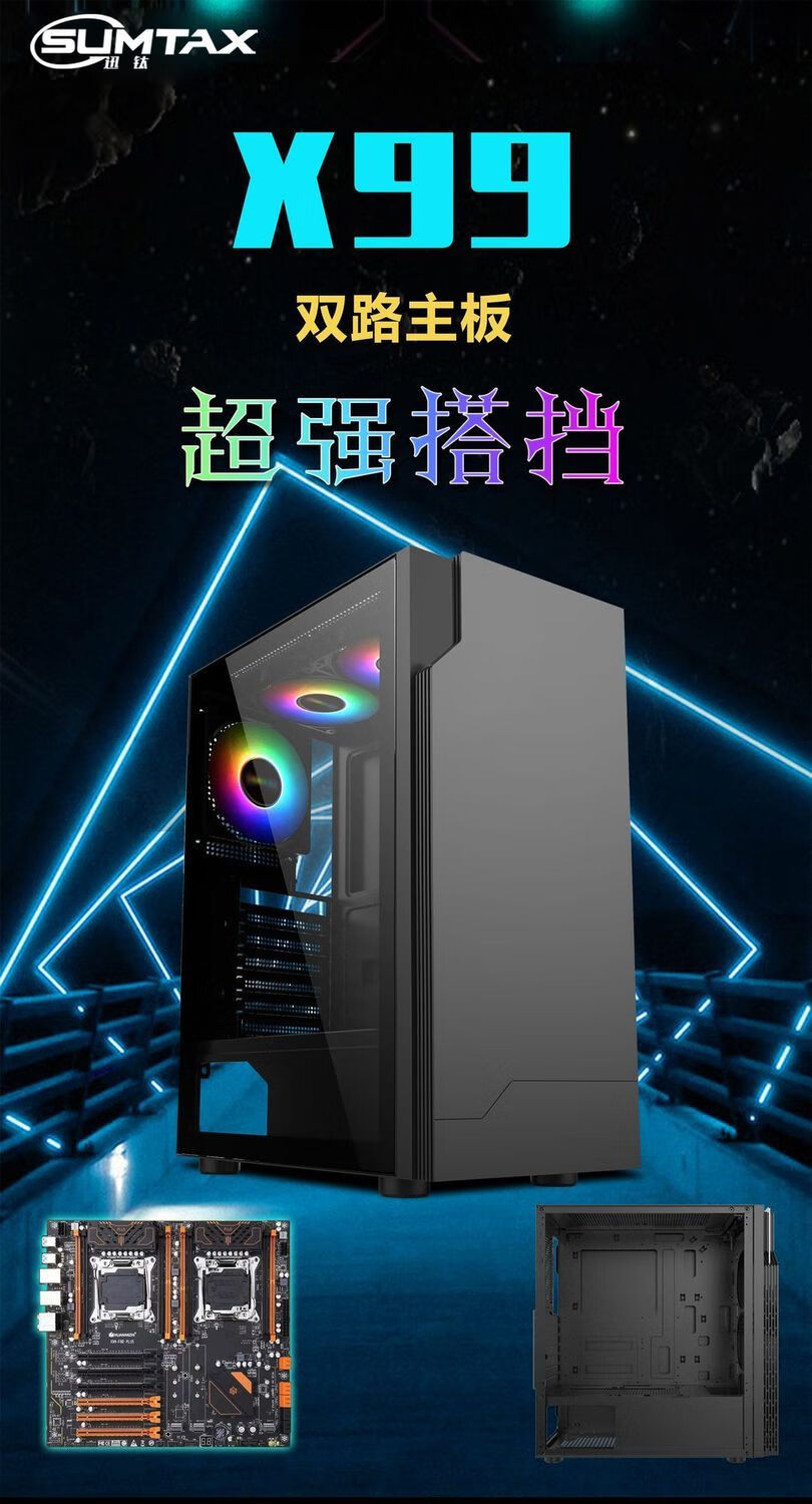 Sumtax/Xuntai X99 X79 dual-way chassis computer chassis desktop glass side transparent E-ATX motherboard game chassis