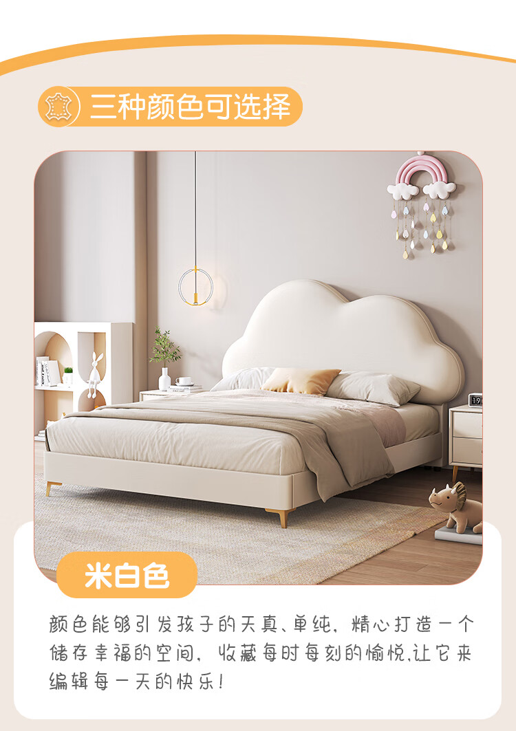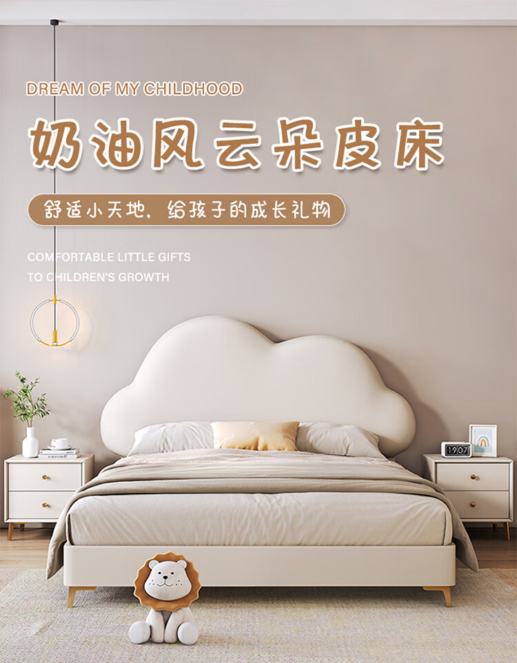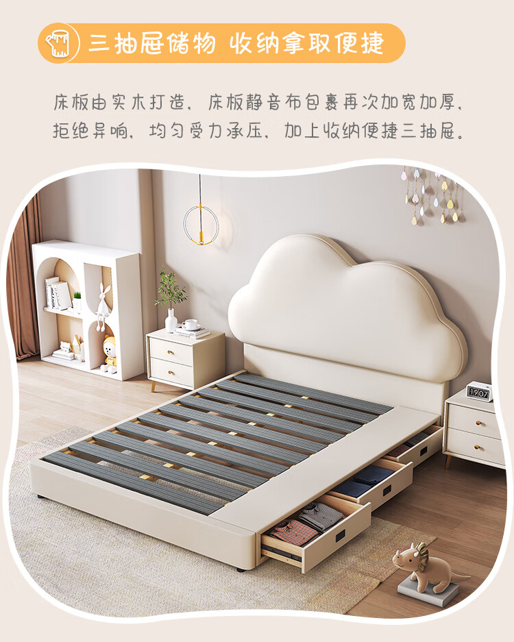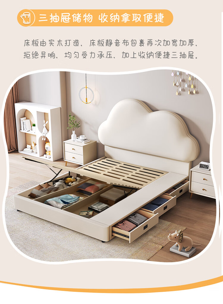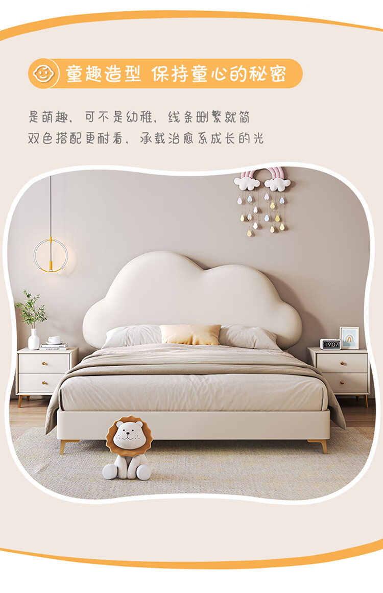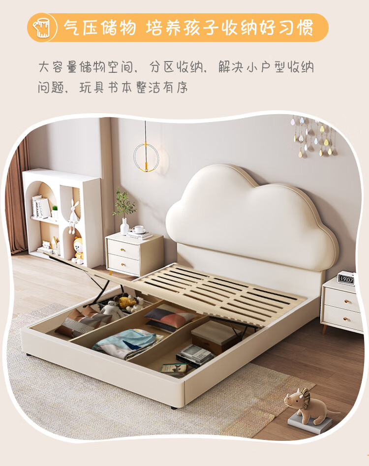 Children's bed girl 1.2m leather bed single Nordic 1.8m simple double bed storage princess bed cloud bed bed + T333 fully disassembled latex mattress + 1 cabinet + delivery and installation 1.35m * 2.0m three pumps + air pressure structure