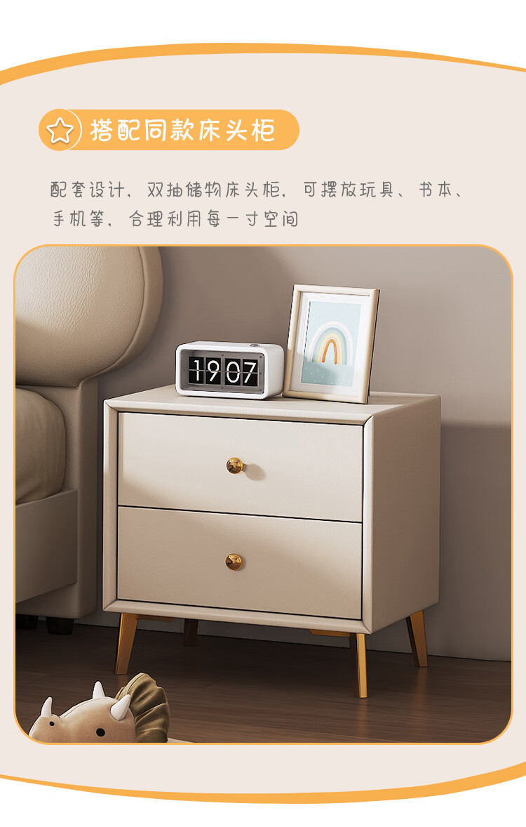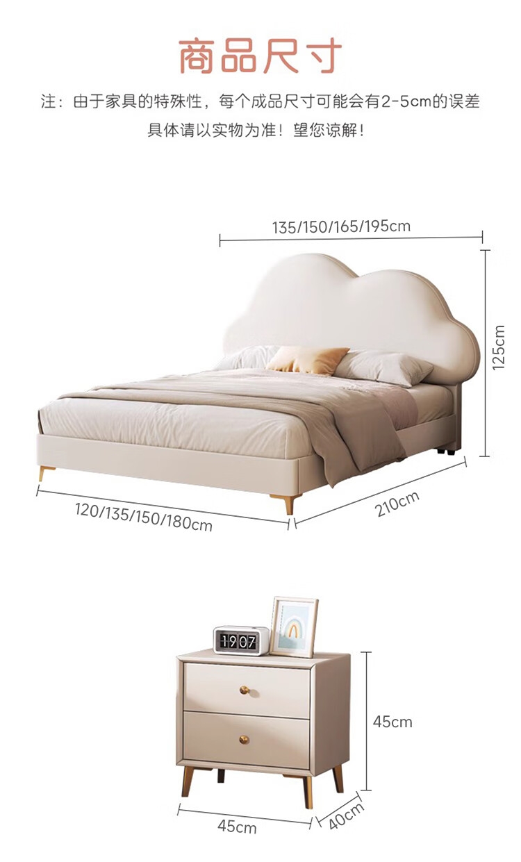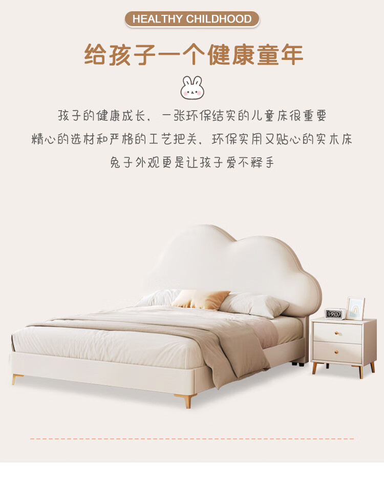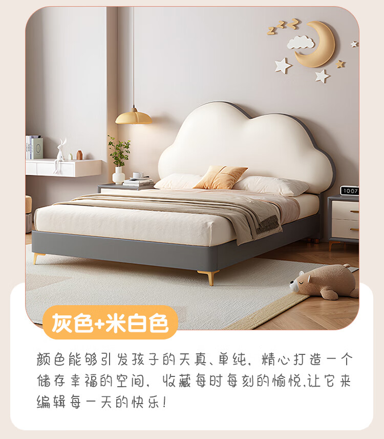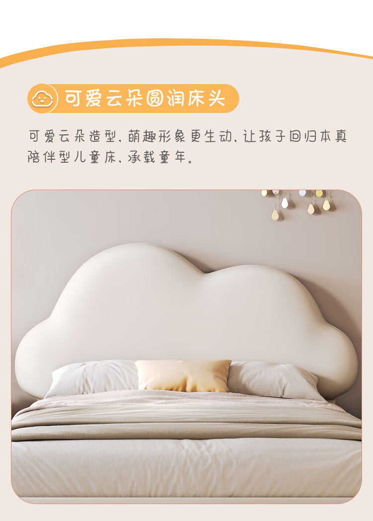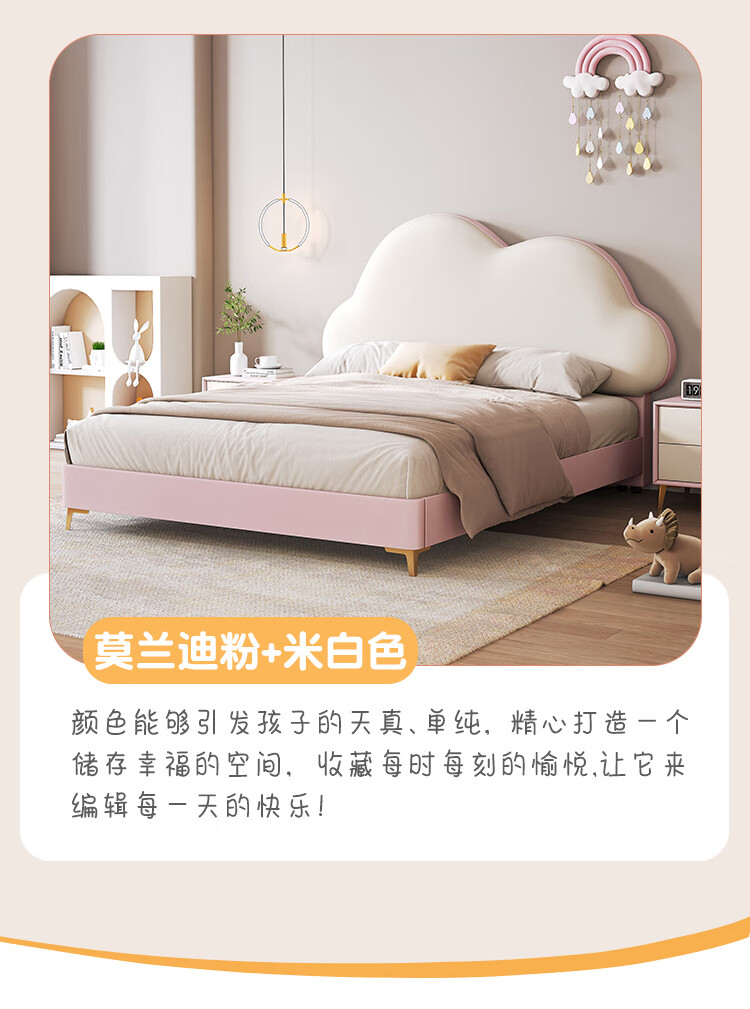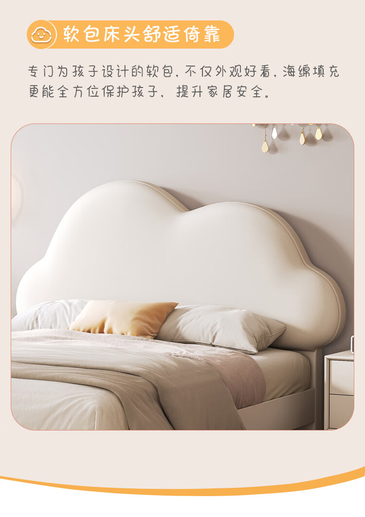 Children's bed girl 1.2m leather bed single Nordic 1.8m simple double bed storage princess bed cloud bed bed + T333 fully disassembled latex mattress + 1 cabinet + delivery and installation 1.35m * 2.0m three pumps + air pressure structure