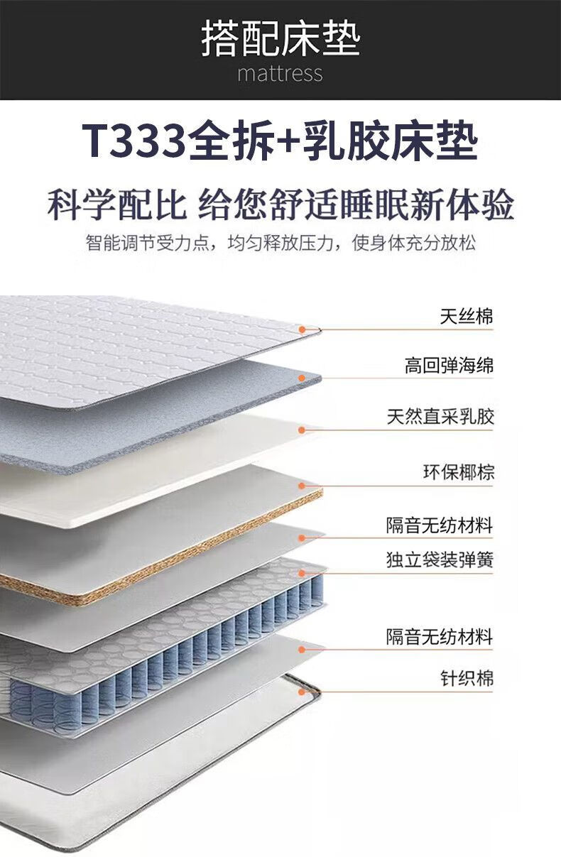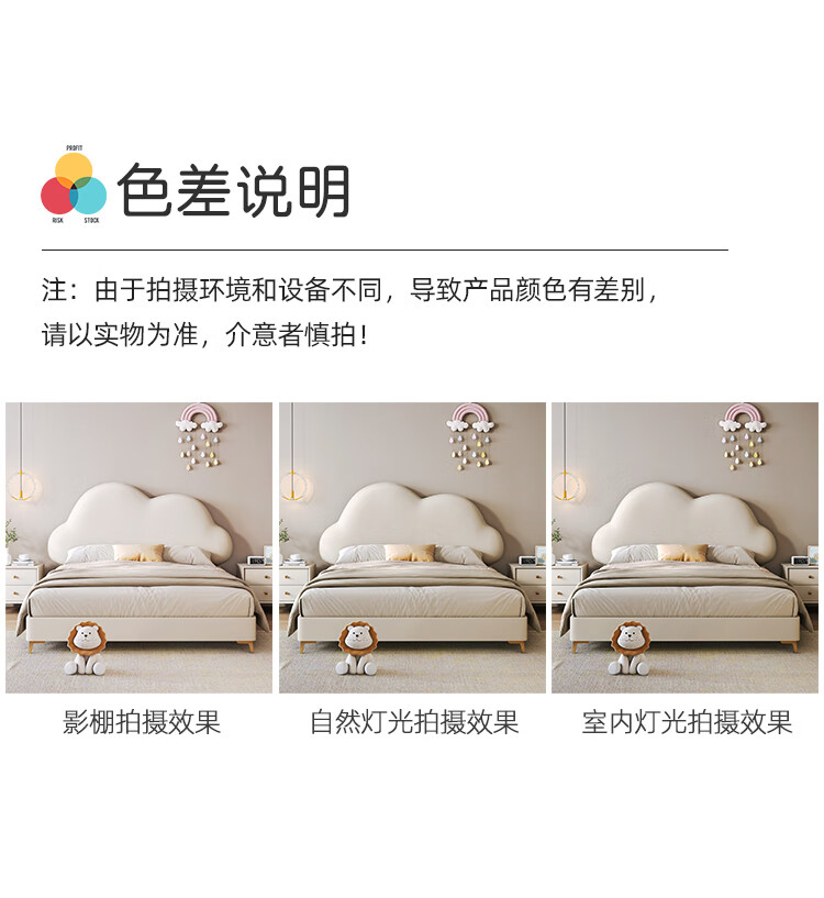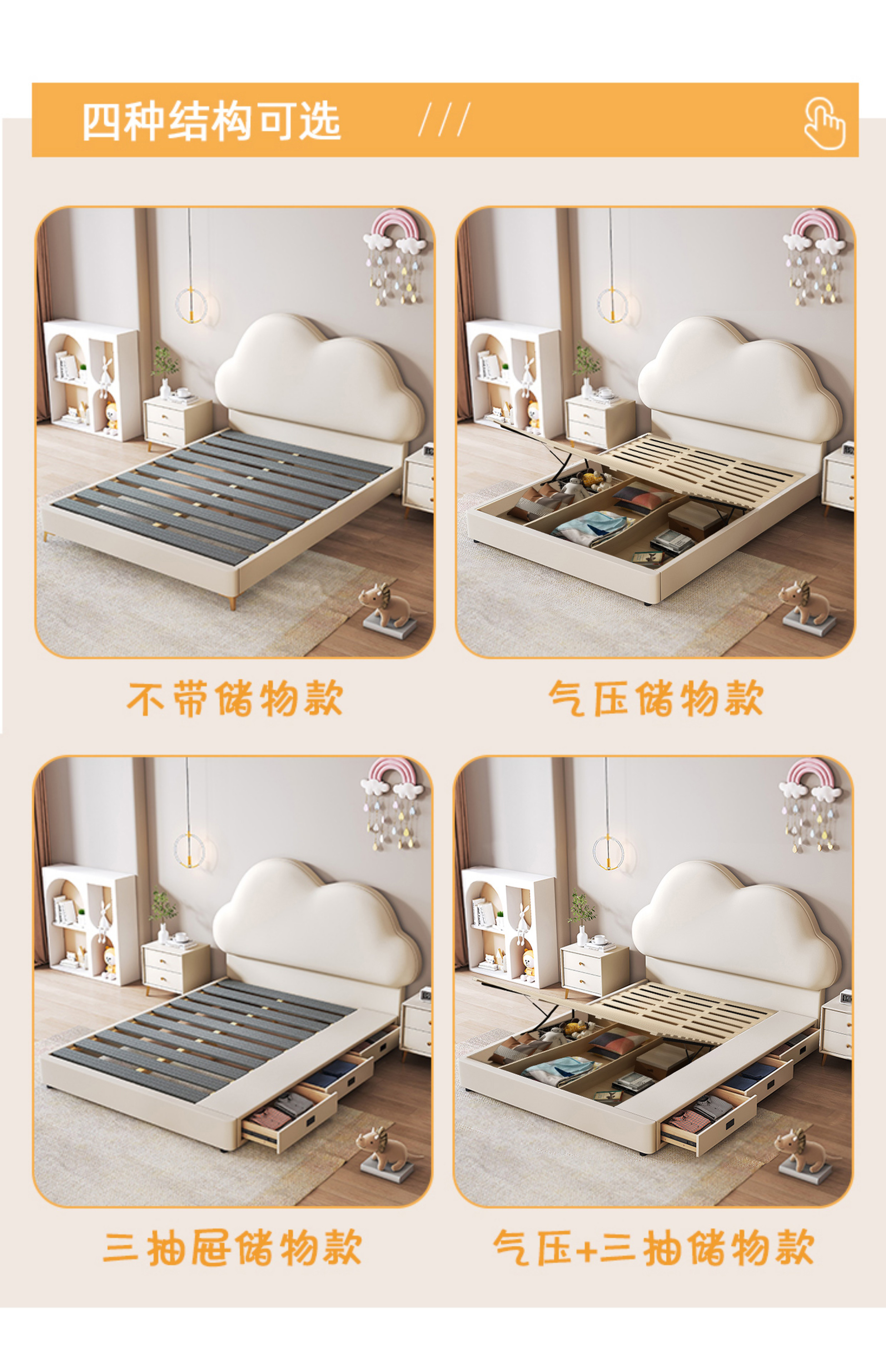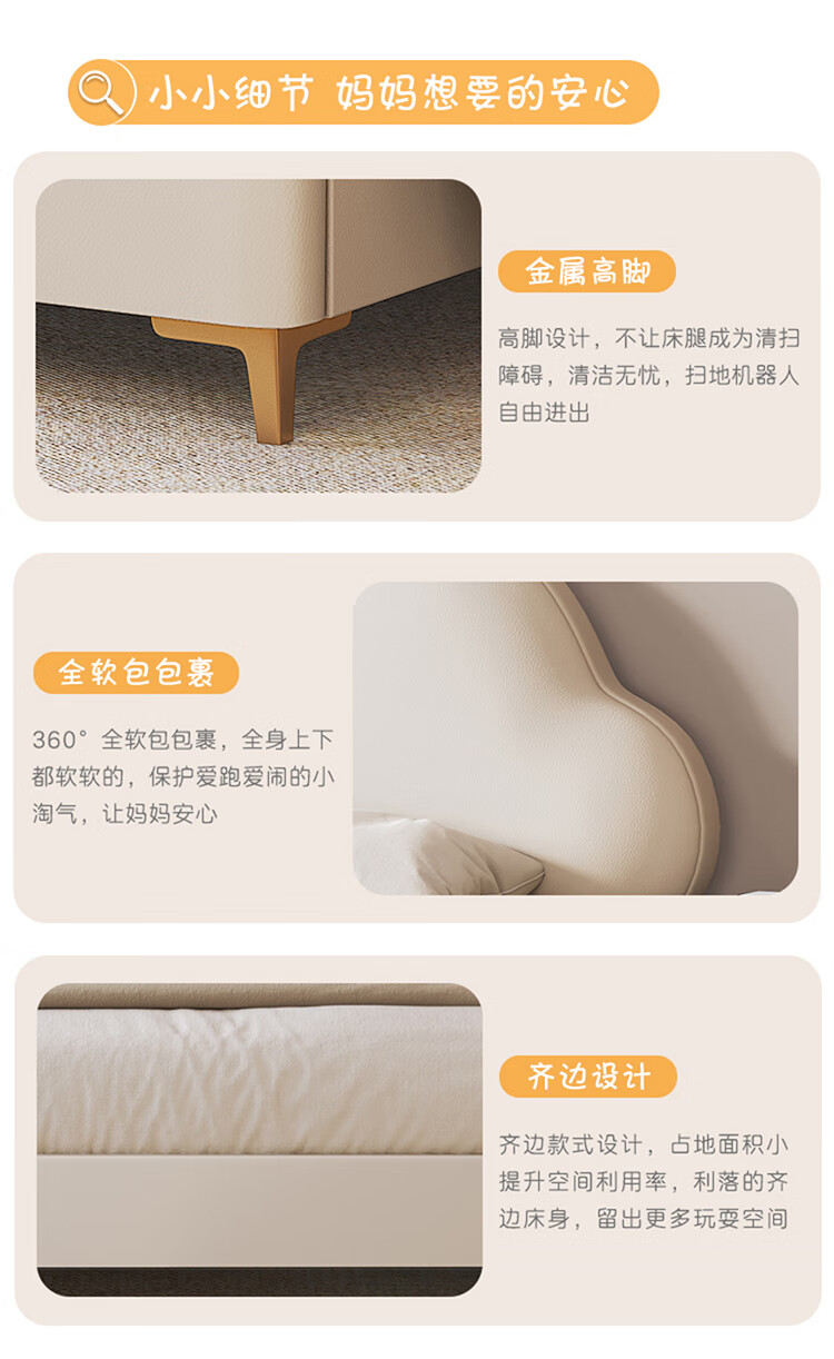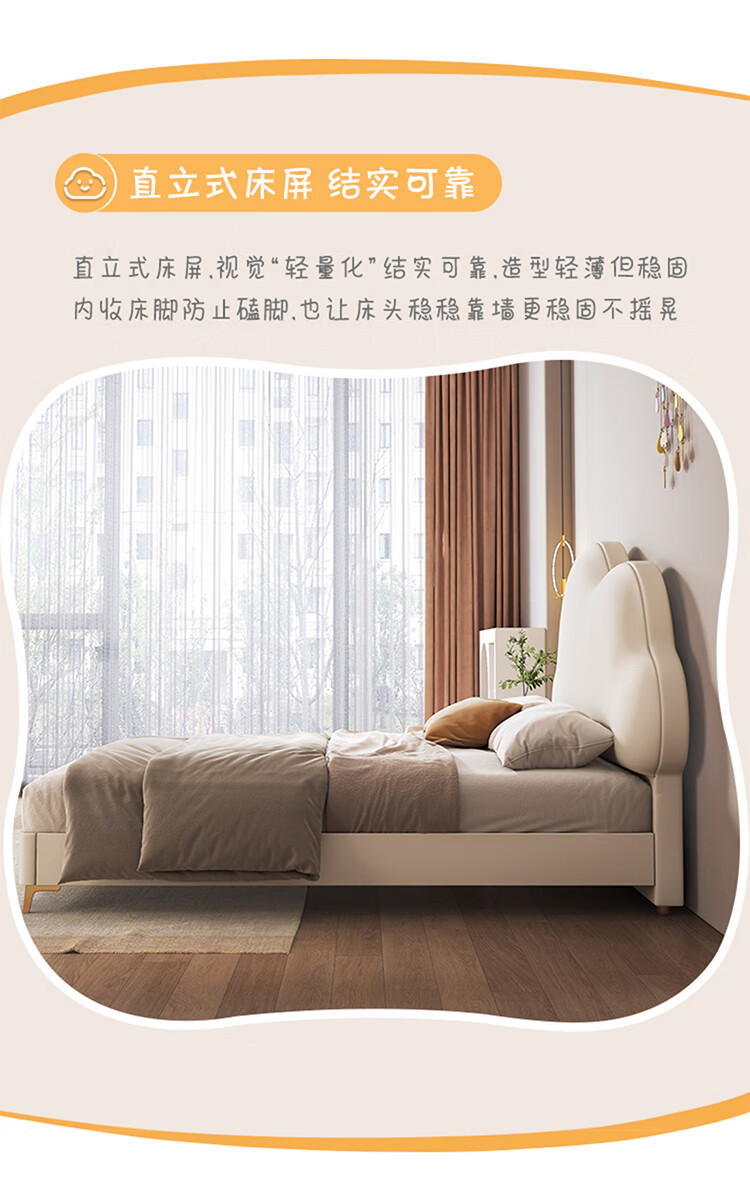 Children's bed girl 1.2m leather bed single Nordic 1.8m simple double bed storage princess bed cloud bed bed + T333 fully disassembled latex mattress + 1 cabinet + delivery and installation 1.35m * 2.0m three pumps + air pressure structure