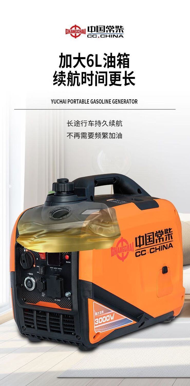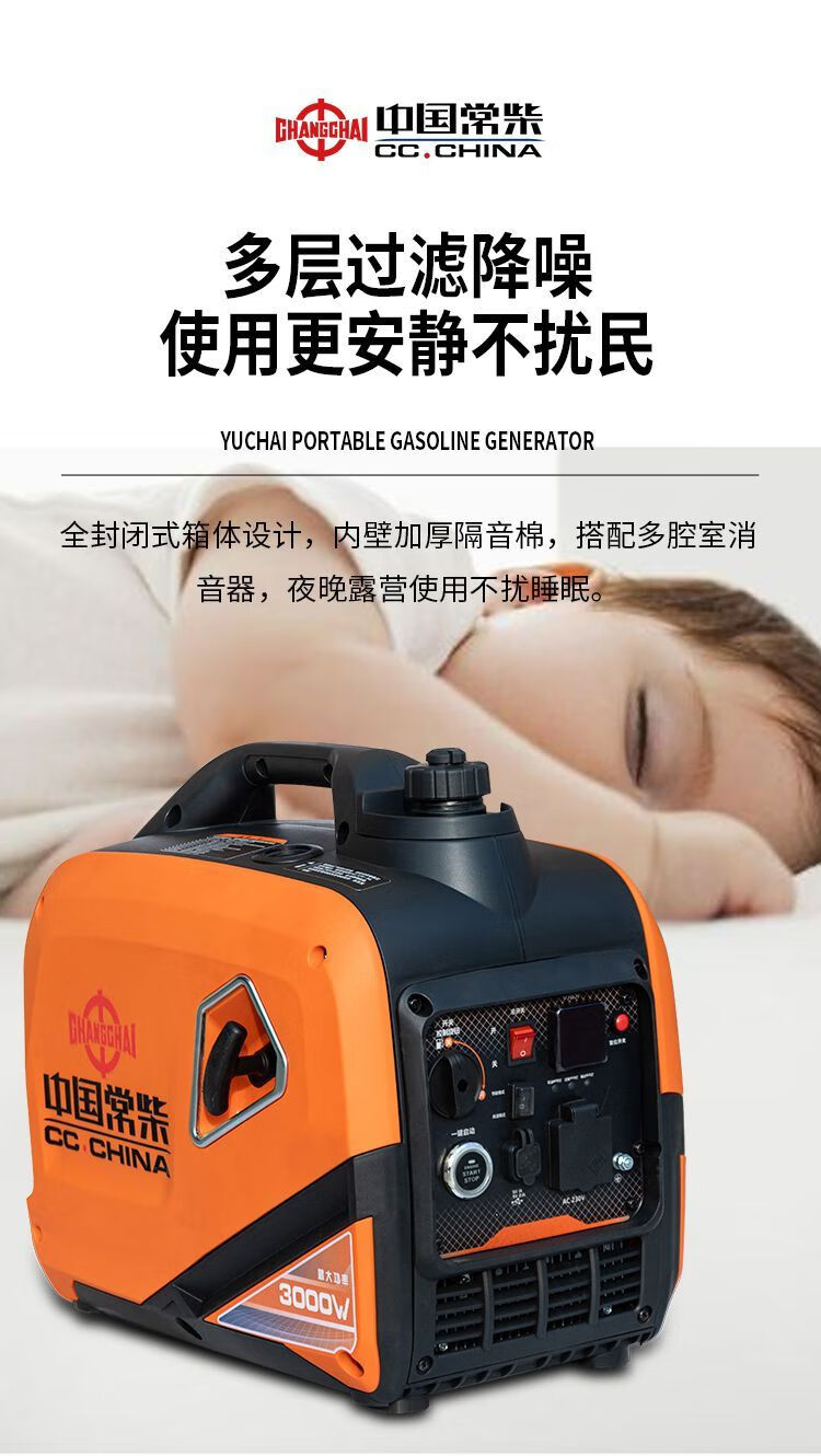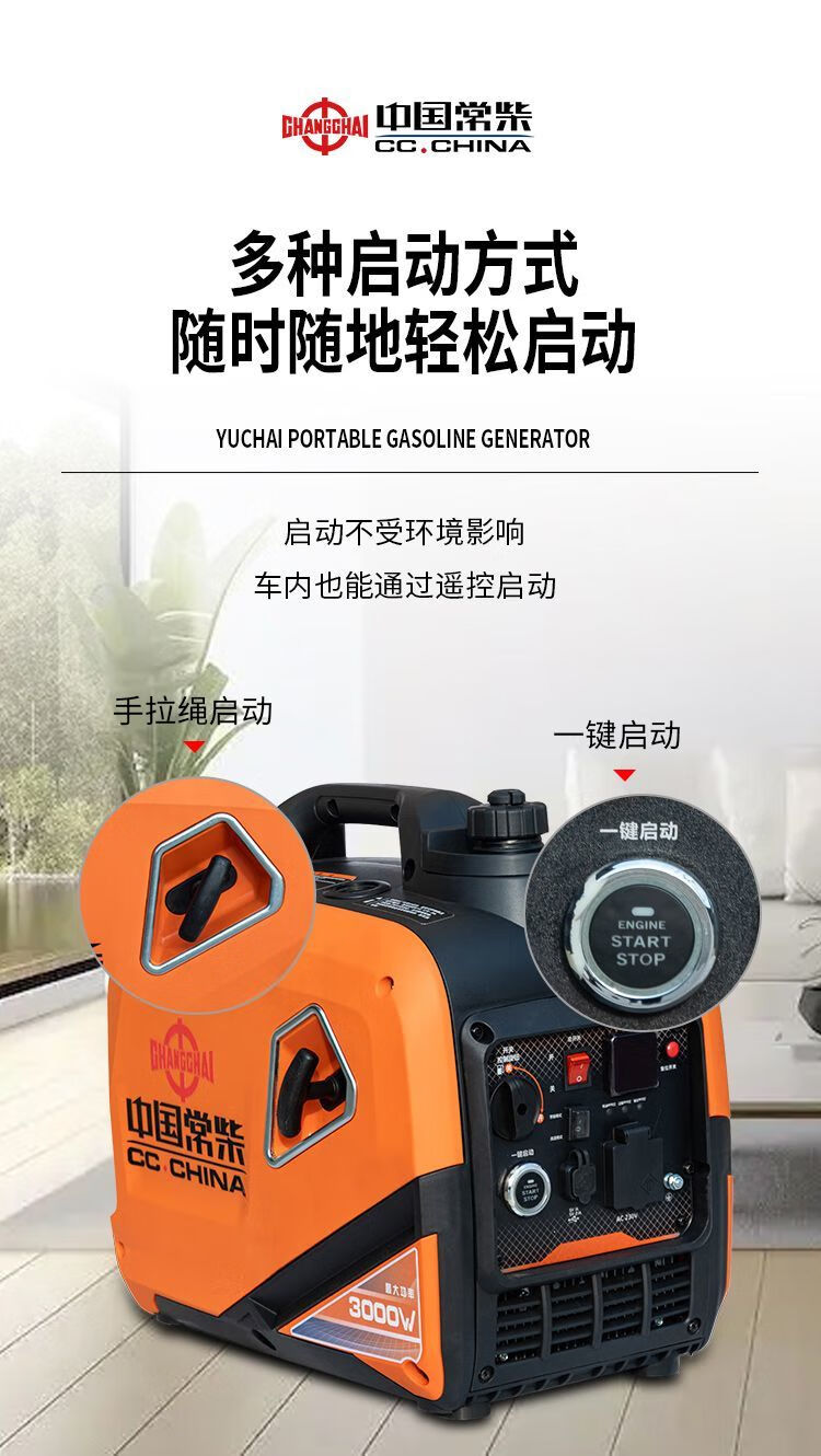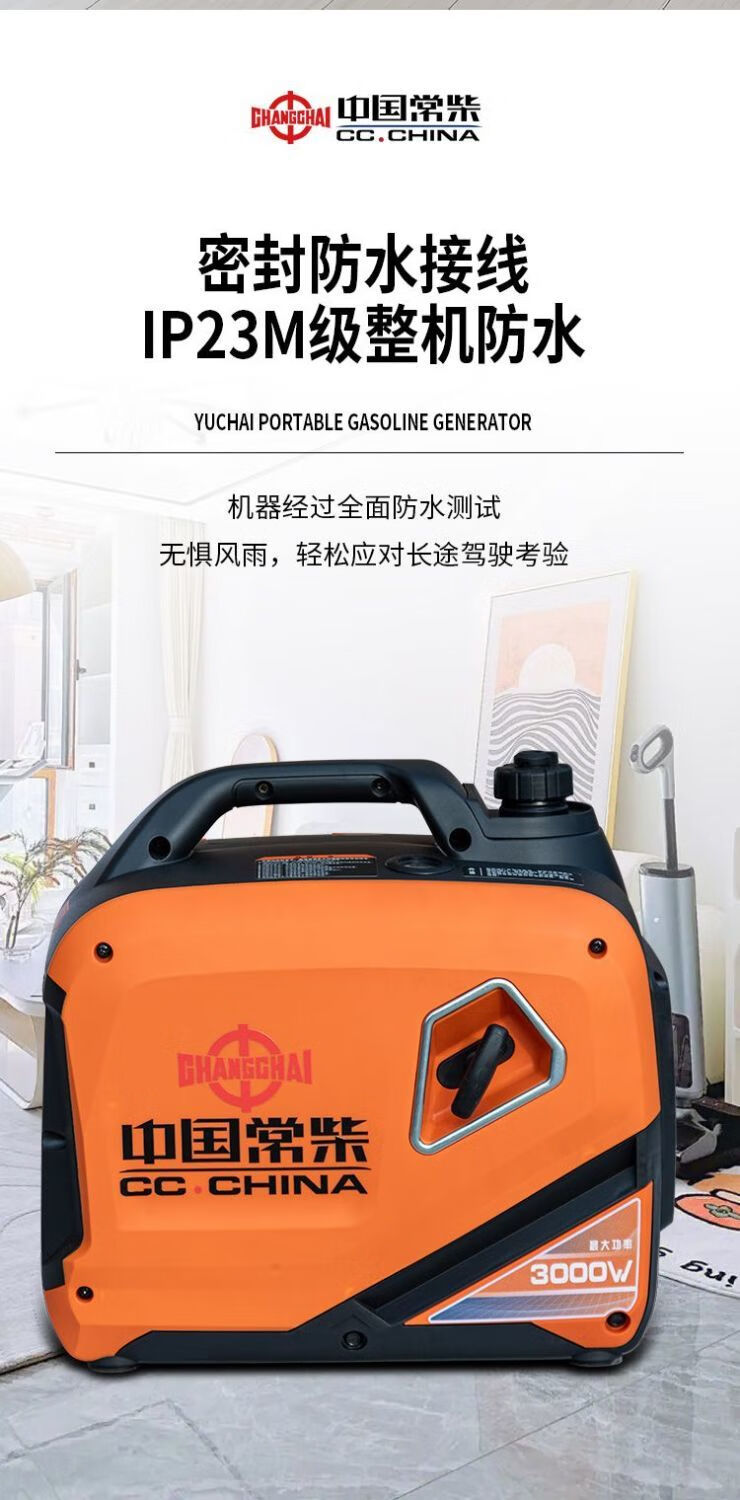 Changchai frequency conversion permanent magnet silent gasoline generator set 220v small household car outdoor stall camping portable frequency conversion digital display 5.5KW electric start with remote control