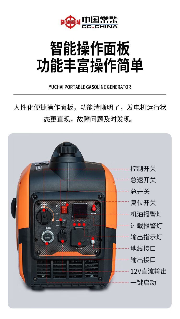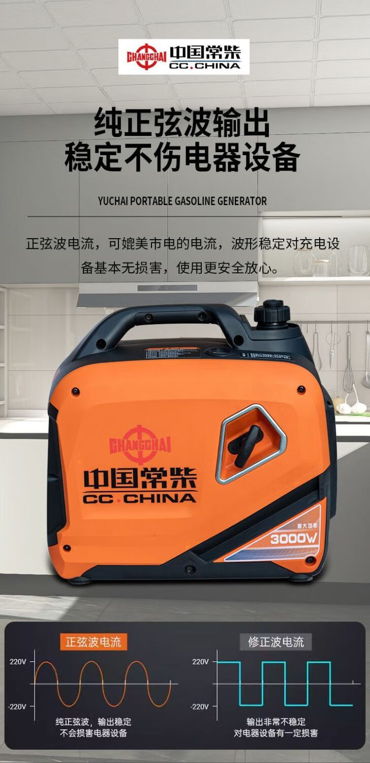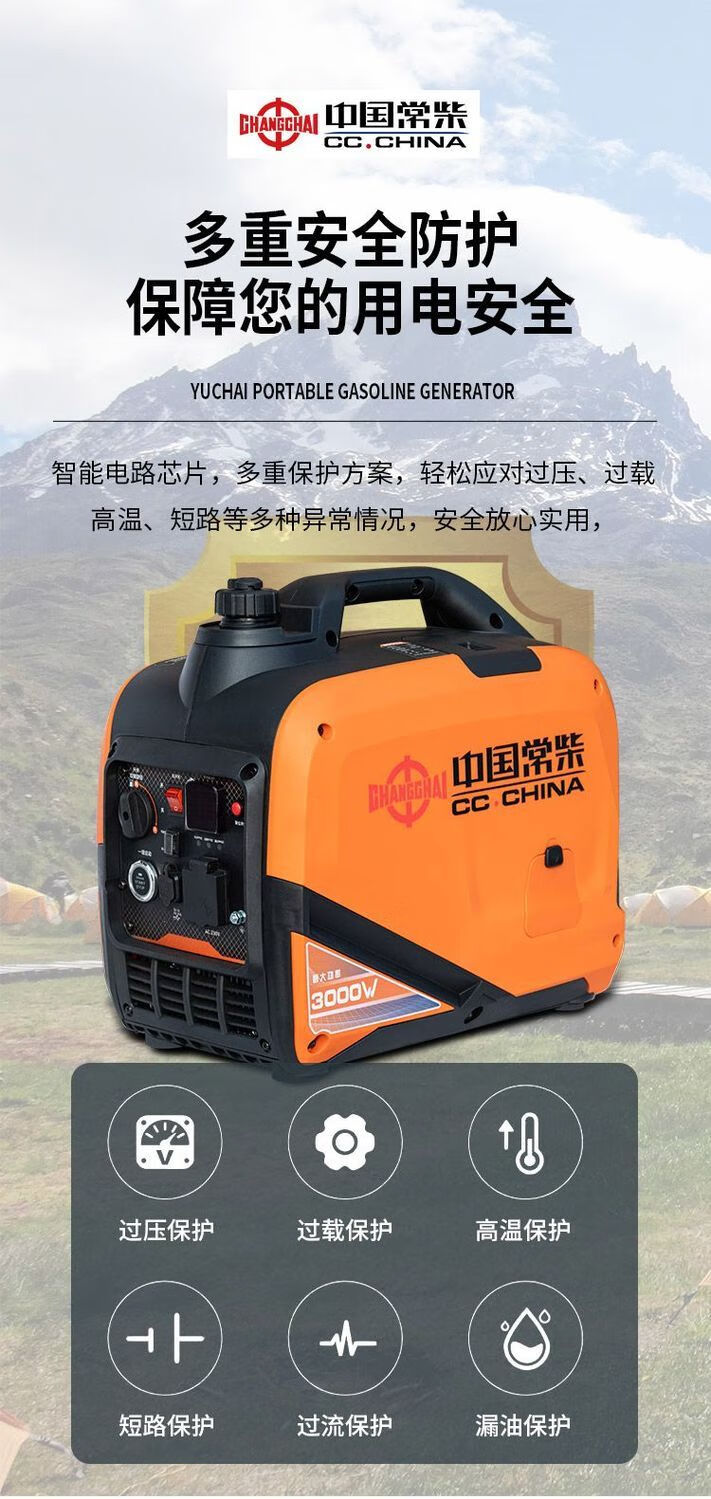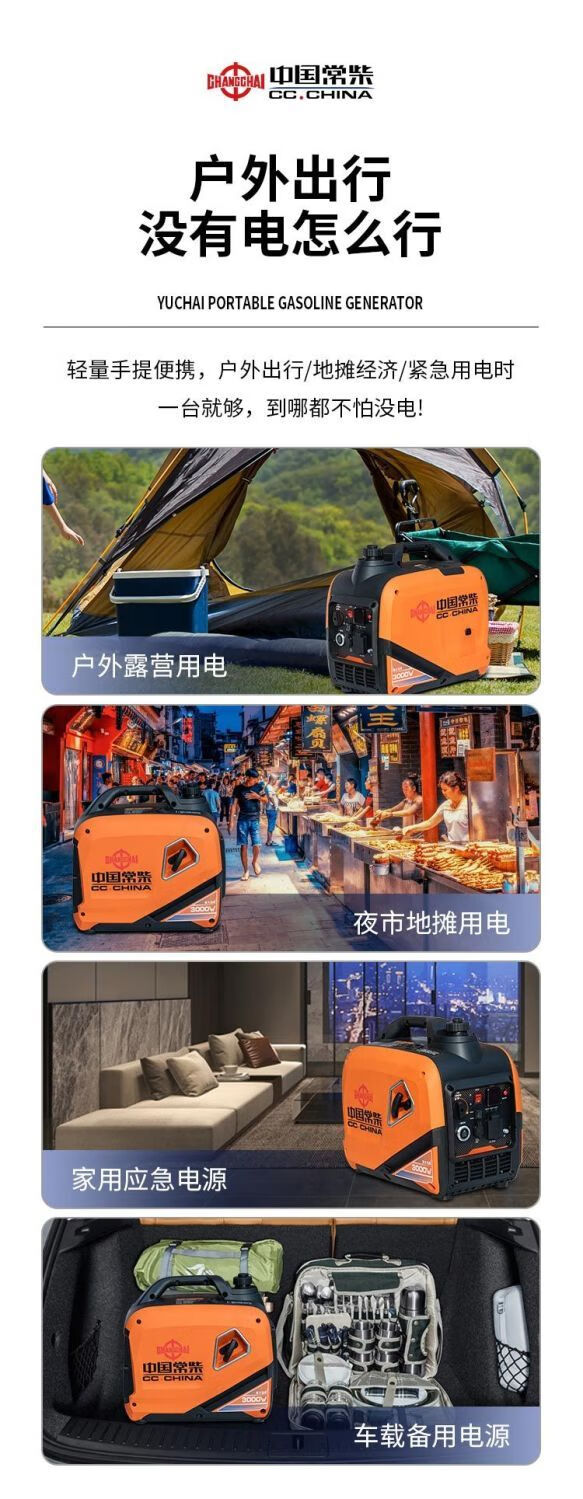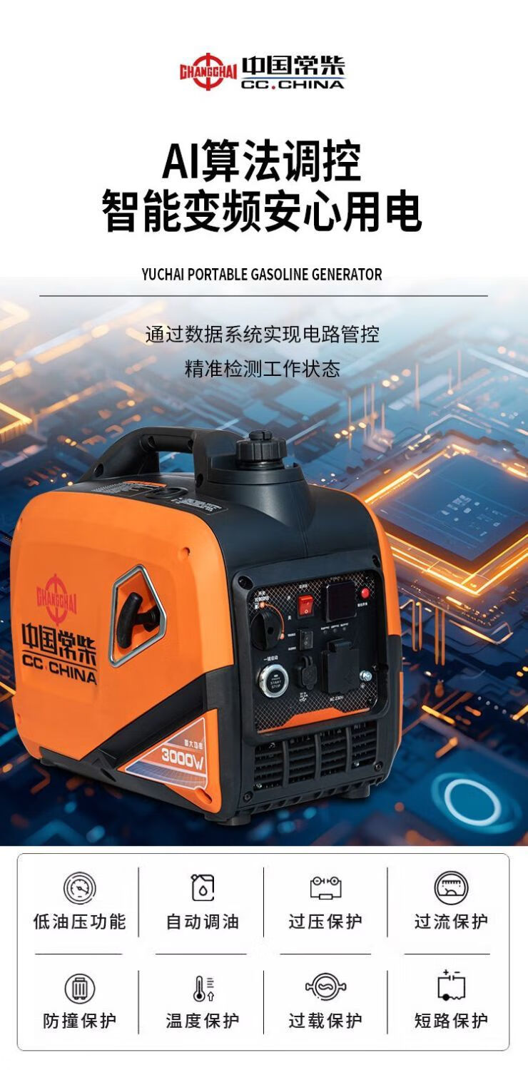 Changchai frequency conversion permanent magnet silent gasoline generator set 220v small household car outdoor stall camping portable frequency conversion digital display 5.5KW electric start with remote control