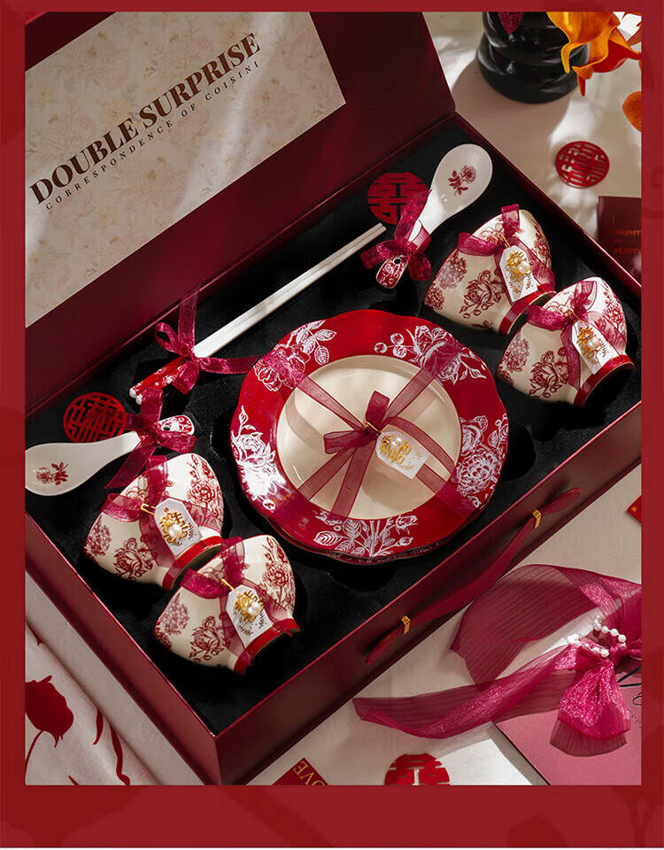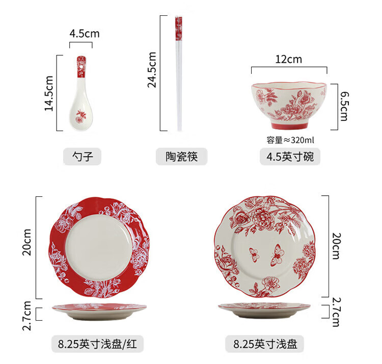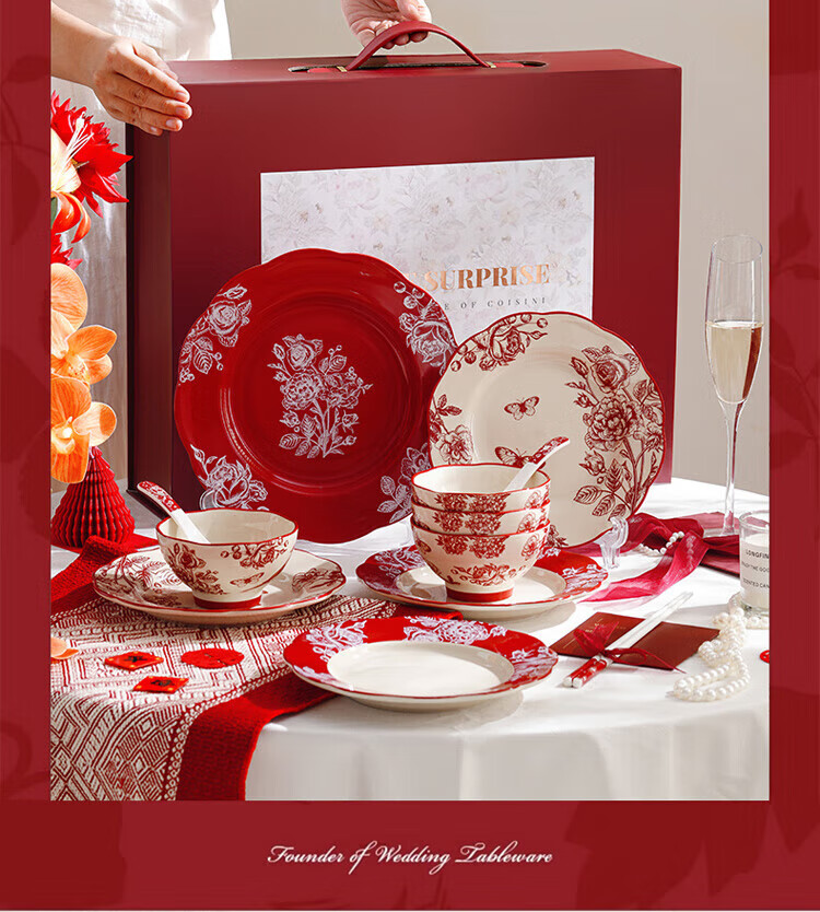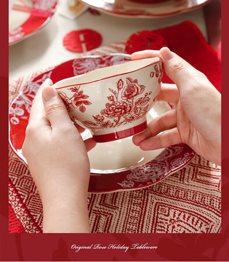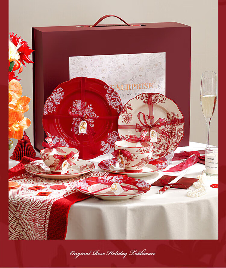 Garson high-end dishware and tableware set gift box wedding gift for newlyweds, newly engaged and bride moving house (JD Logistics) holiday rose tableware 16-piece set