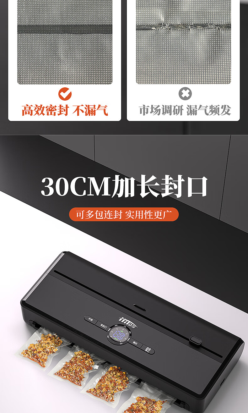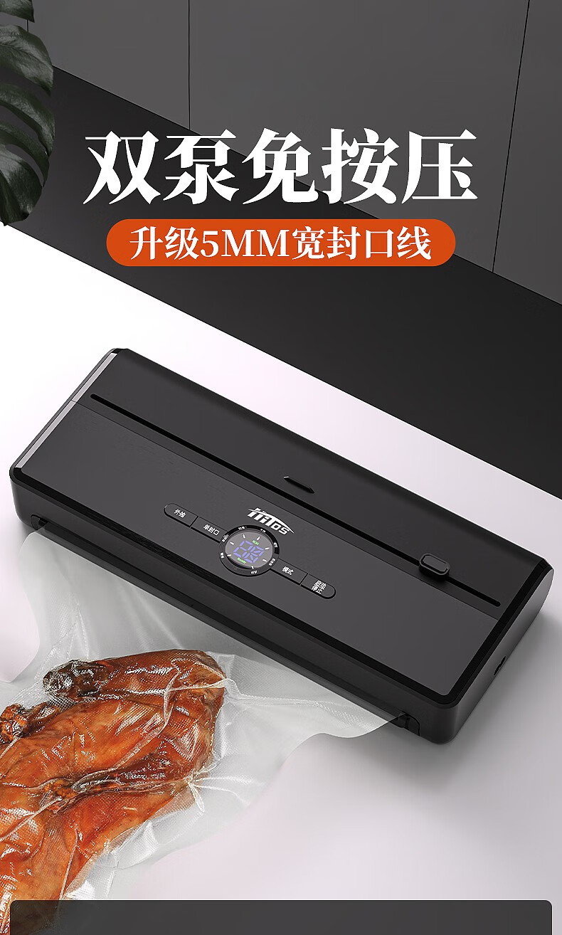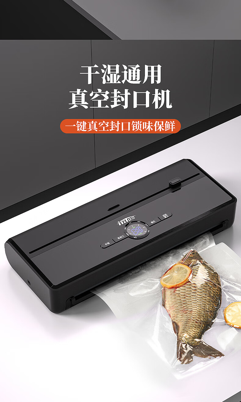HITOS German vacuum sealing all-in-one machine fully automatic dry and wet dual-use home and commercial large suction food packaging machine dual pump dual motor copper core/no flip cover silver vacuum machine + (1 roll bag + 5 bag) 30cm