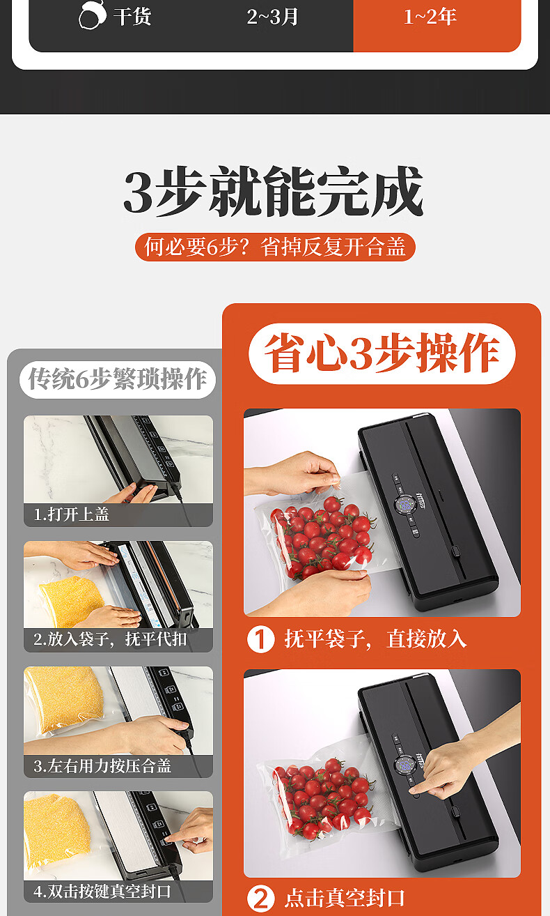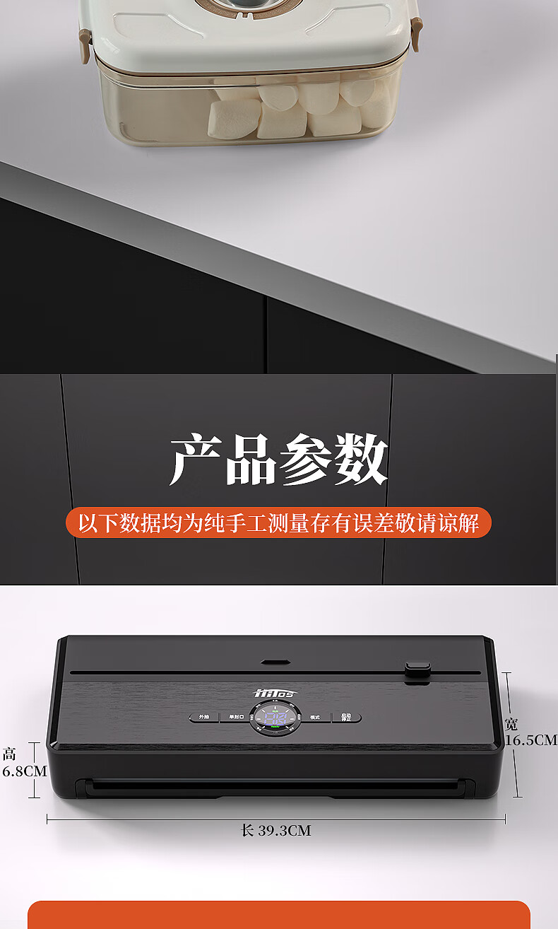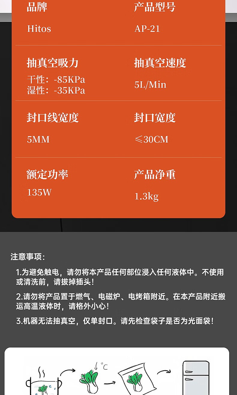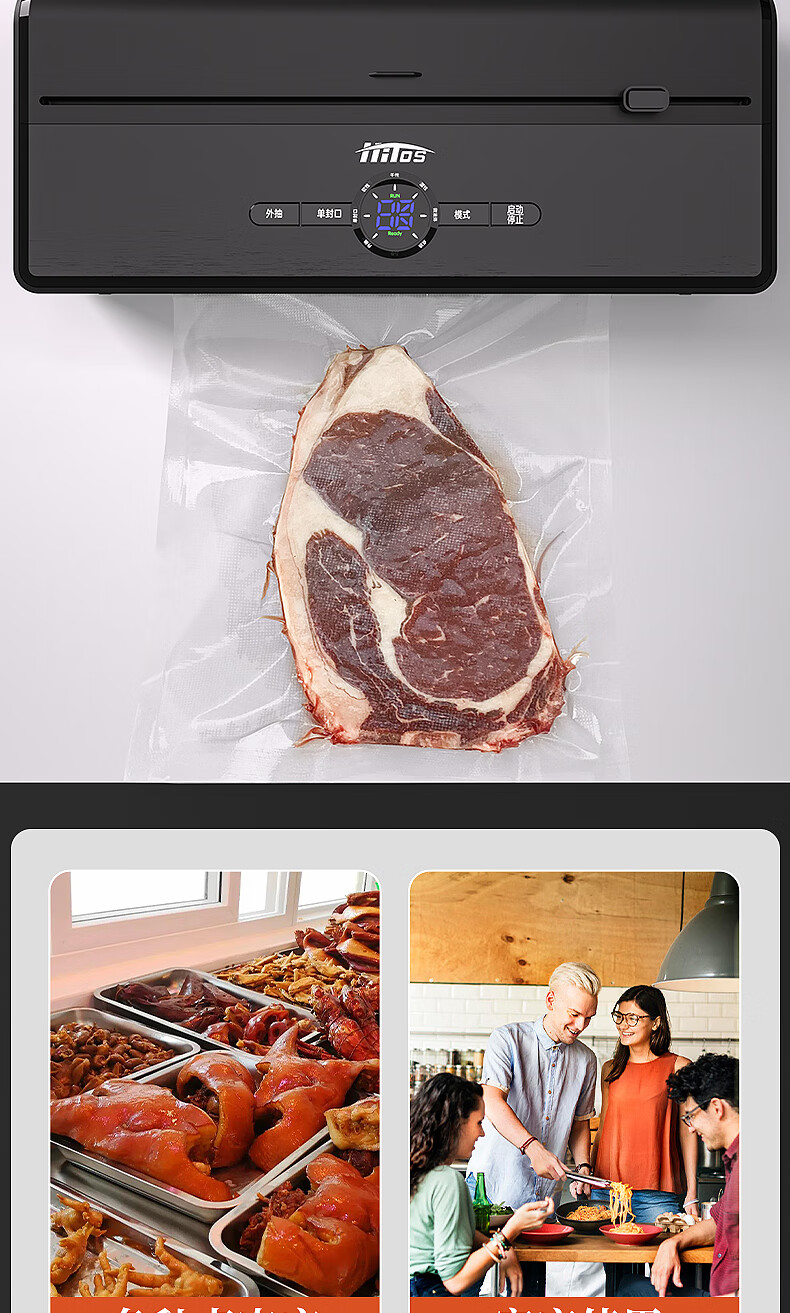 HITOS German vacuum sealing all-in-one machine fully automatic dry and wet dual-use home and commercial large suction food packaging machine dual pump dual motor copper core/no flip cover silver vacuum machine + (1 roll bag + 5 bag) 30cm