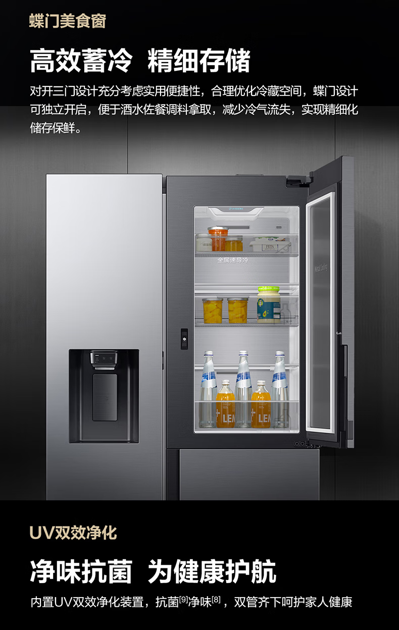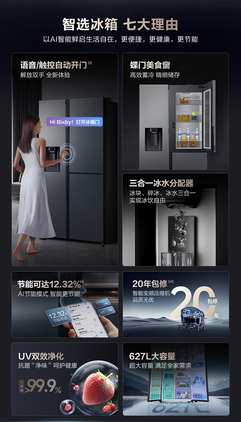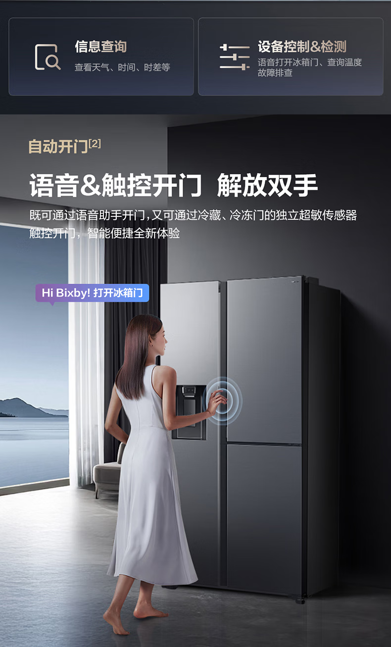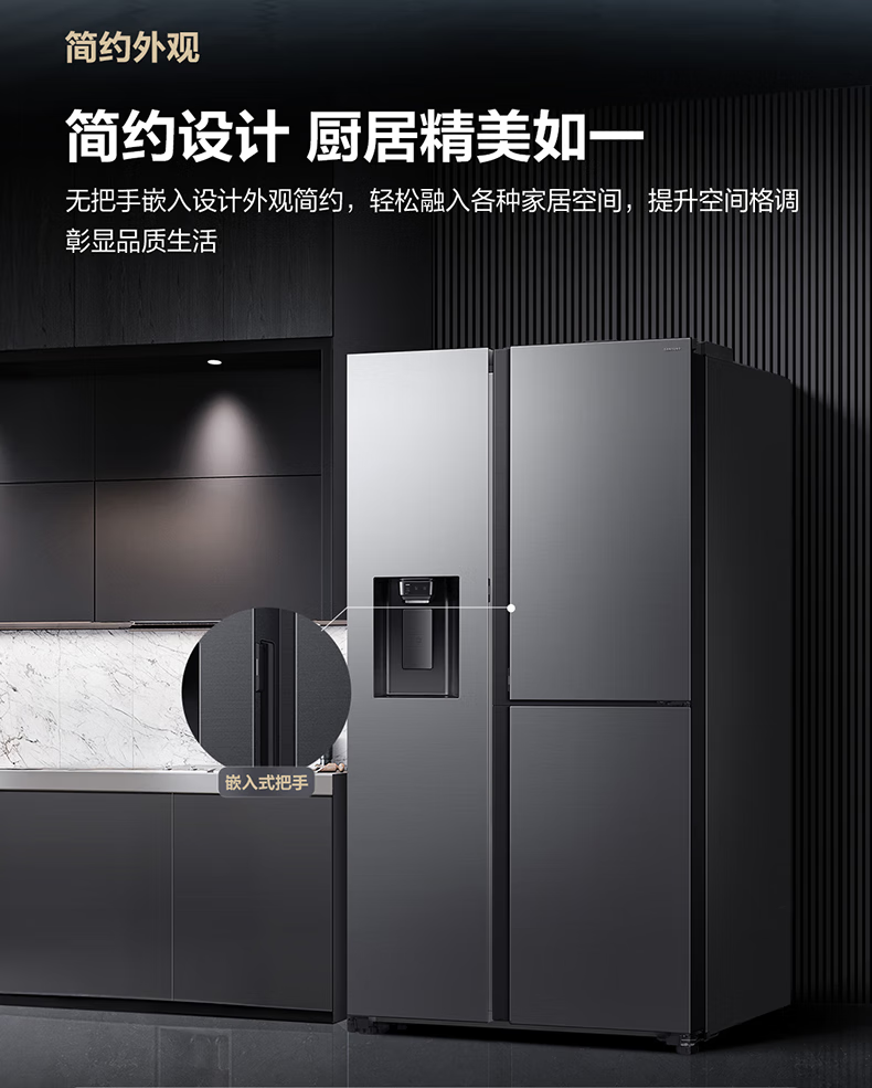 Samsung (SAMSUNG) official reissued new product 627 liters of large-capacity air-cooled frost-free frequency conversion sound-touch dual-control automatic door opening ice making butterfly door side-by-side refrigerator ice and water separation first-level energy efficiency Moonlight Silver RS80F65F1TSC