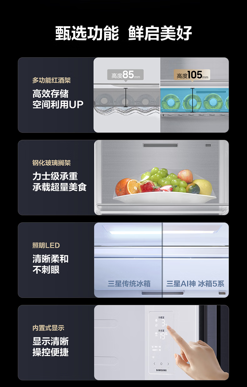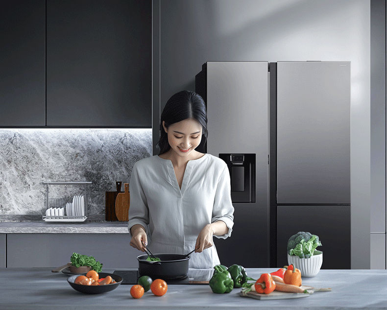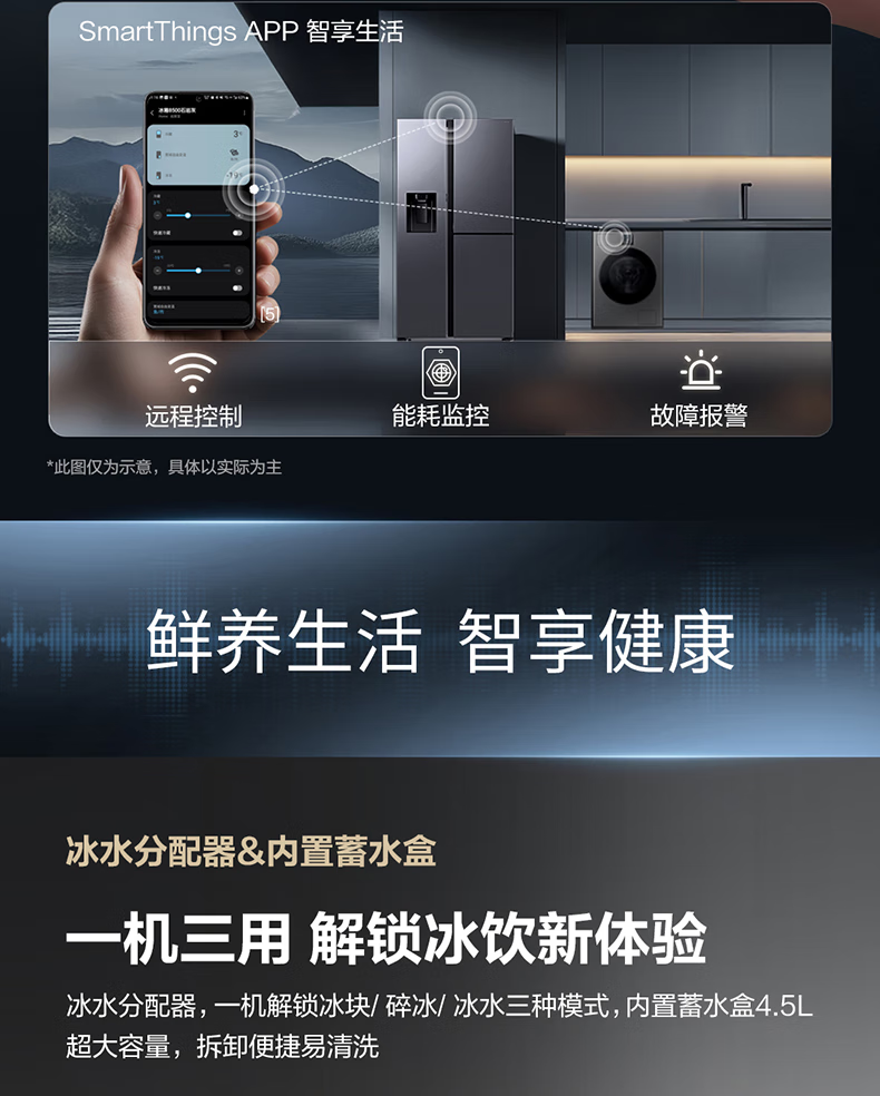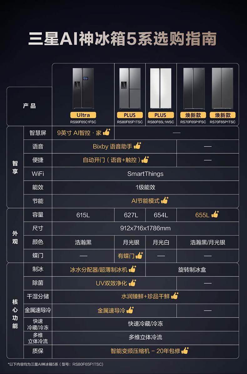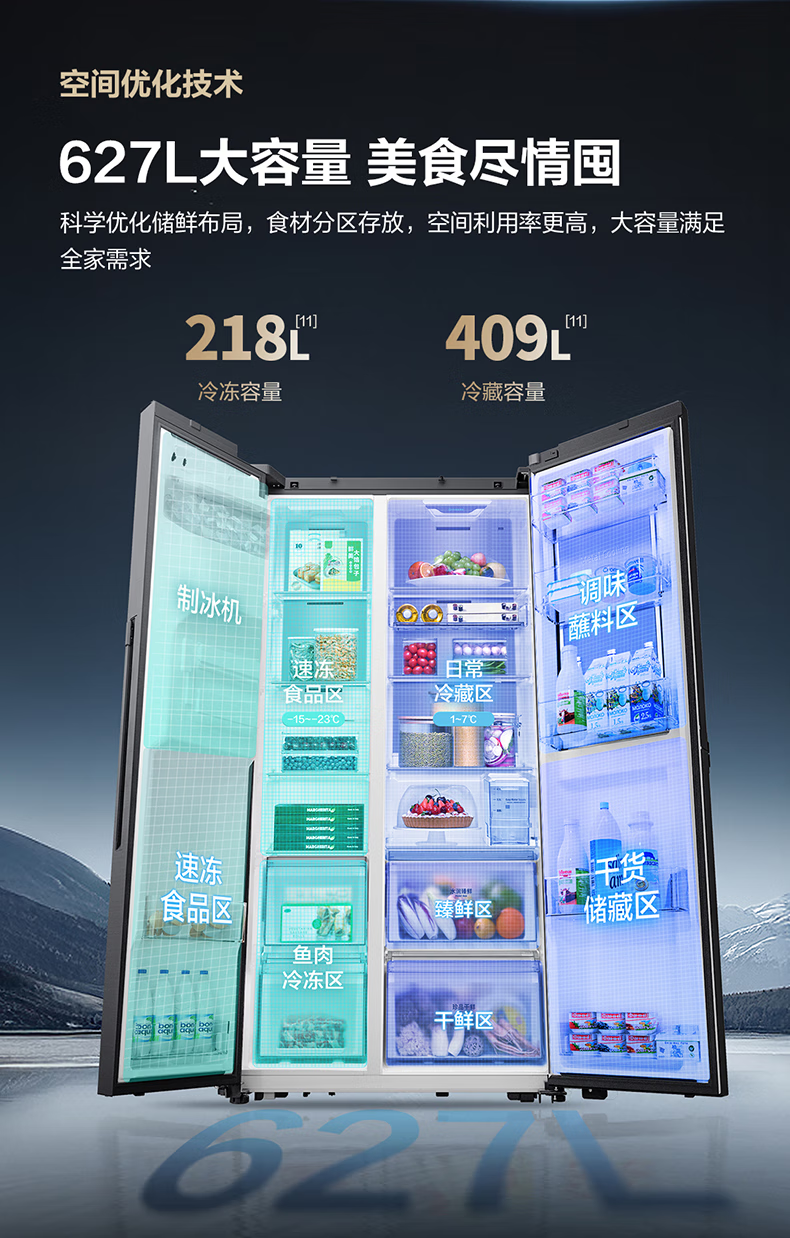 Samsung (SAMSUNG) official reissued new product 627 liters of large-capacity air-cooled frost-free frequency conversion sound-touch dual-control automatic door opening ice making butterfly door side-by-side refrigerator ice and water separation first-level energy efficiency Moonlight Silver RS80F65F1TSC