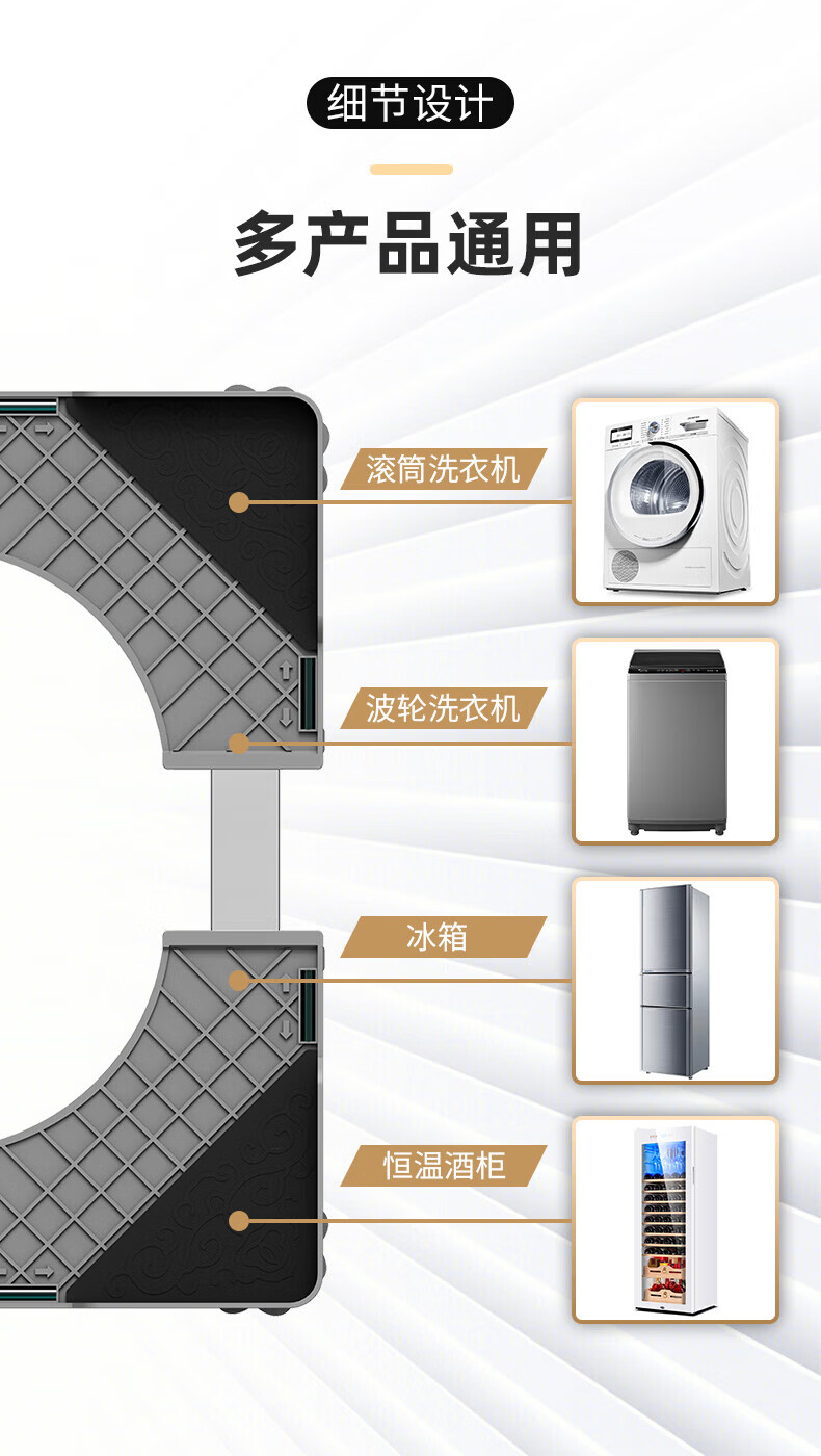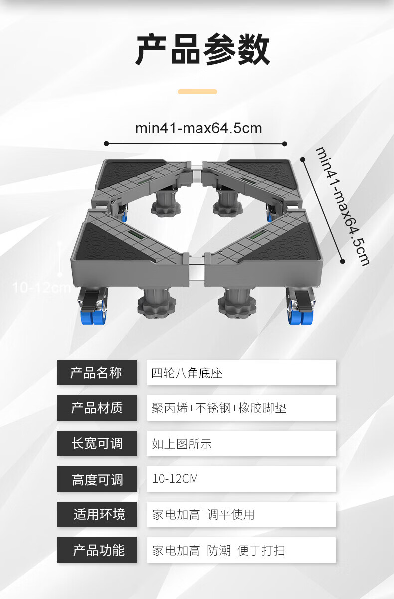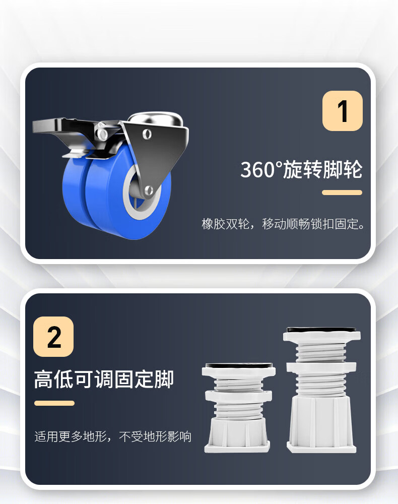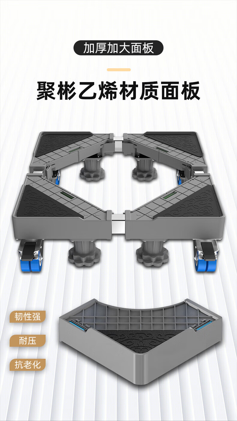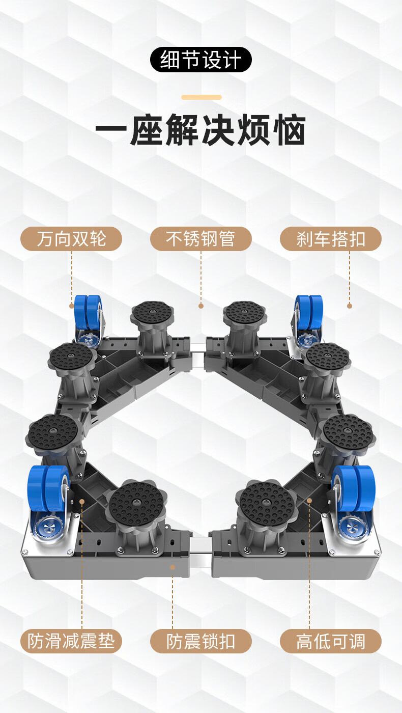 Movable rack drum pulsator fully automatic washing machine base refrigerator base elevated rack bracket shock absorption stainless steel tube 4 wheels 8 feet mobile model durable anti-corrosion no installation required