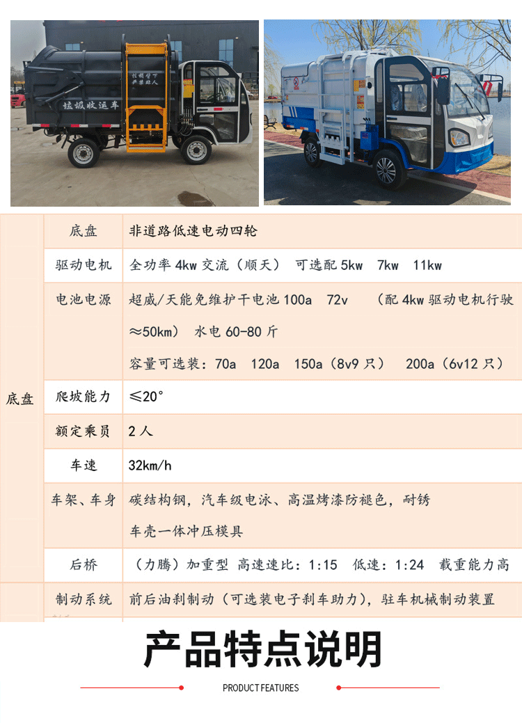 Electric four-wheel hanging bucket garbage truck self-loading and self-unloading garbage removal truck new energy residential property garbage transfer truck electric four-wheel hanging bucket garbage truck 5 cubic meters