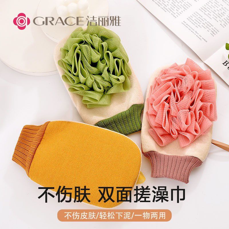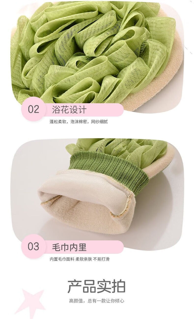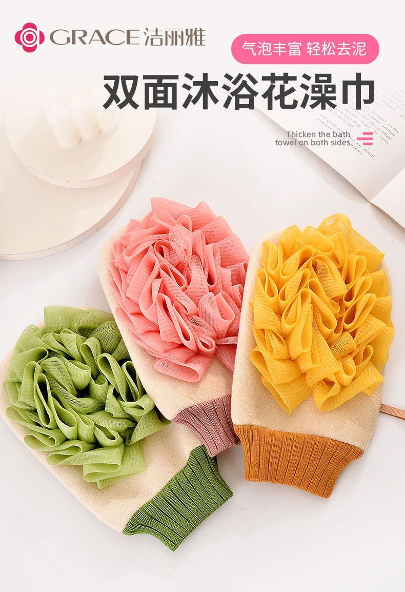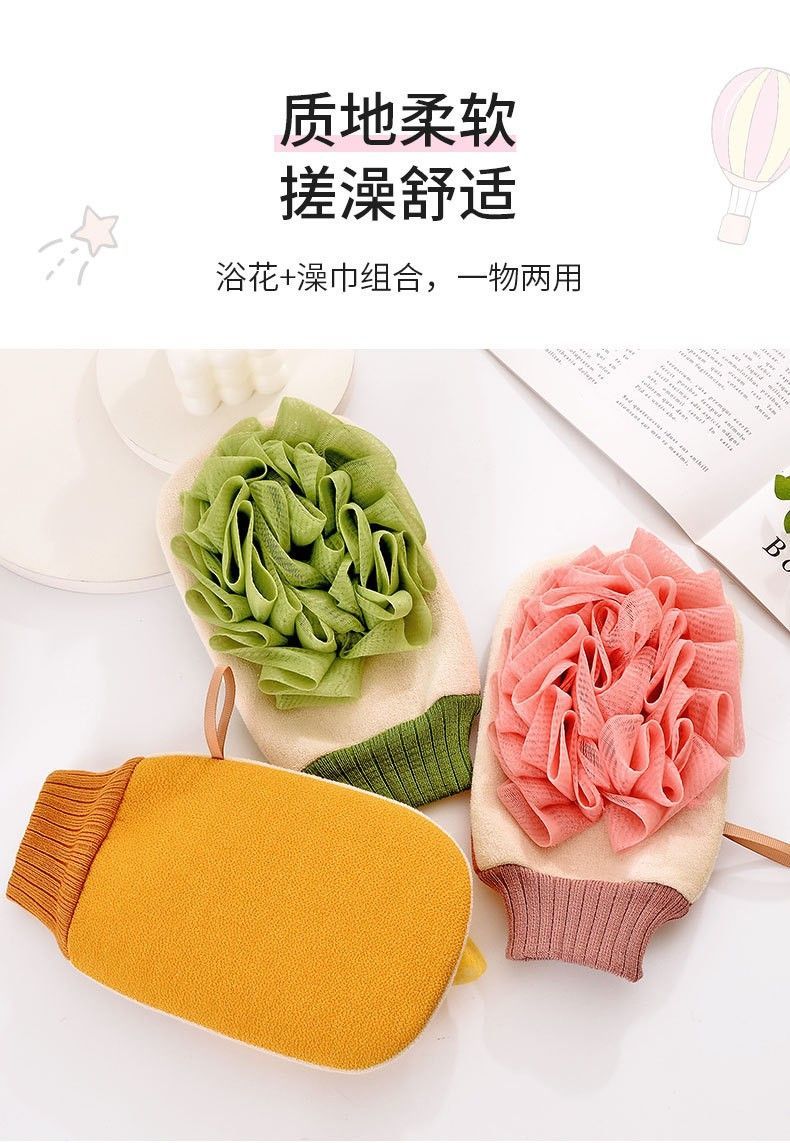Jie Liya bath towel and bath towel 2-in-1 strong mud rub and back bath towel household back bath towel gloves and towel upgraded foaming bath towel 2-in-1 yellow one side with bath and one side with bath flower