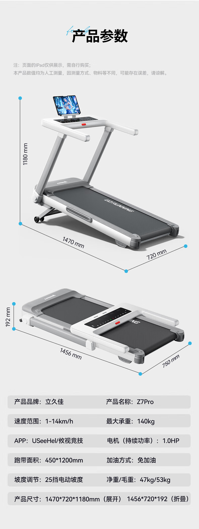 Lijiujia Xueying Z7Pro climbing treadmill smart home folding shock-absorbing silent gym equipment 10 large slopes/25-speed electric adjustment/full folding storage