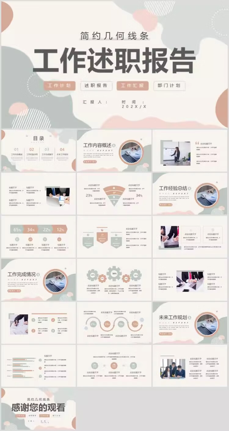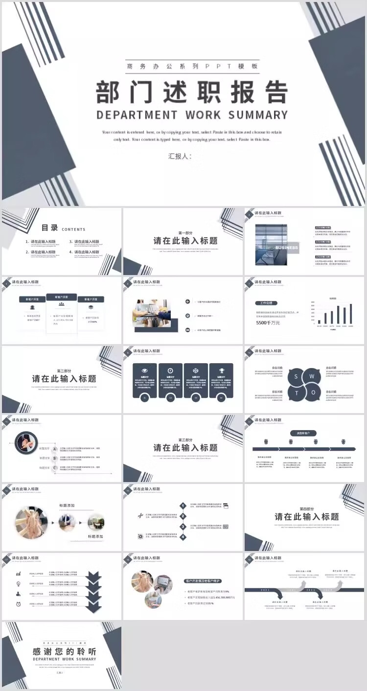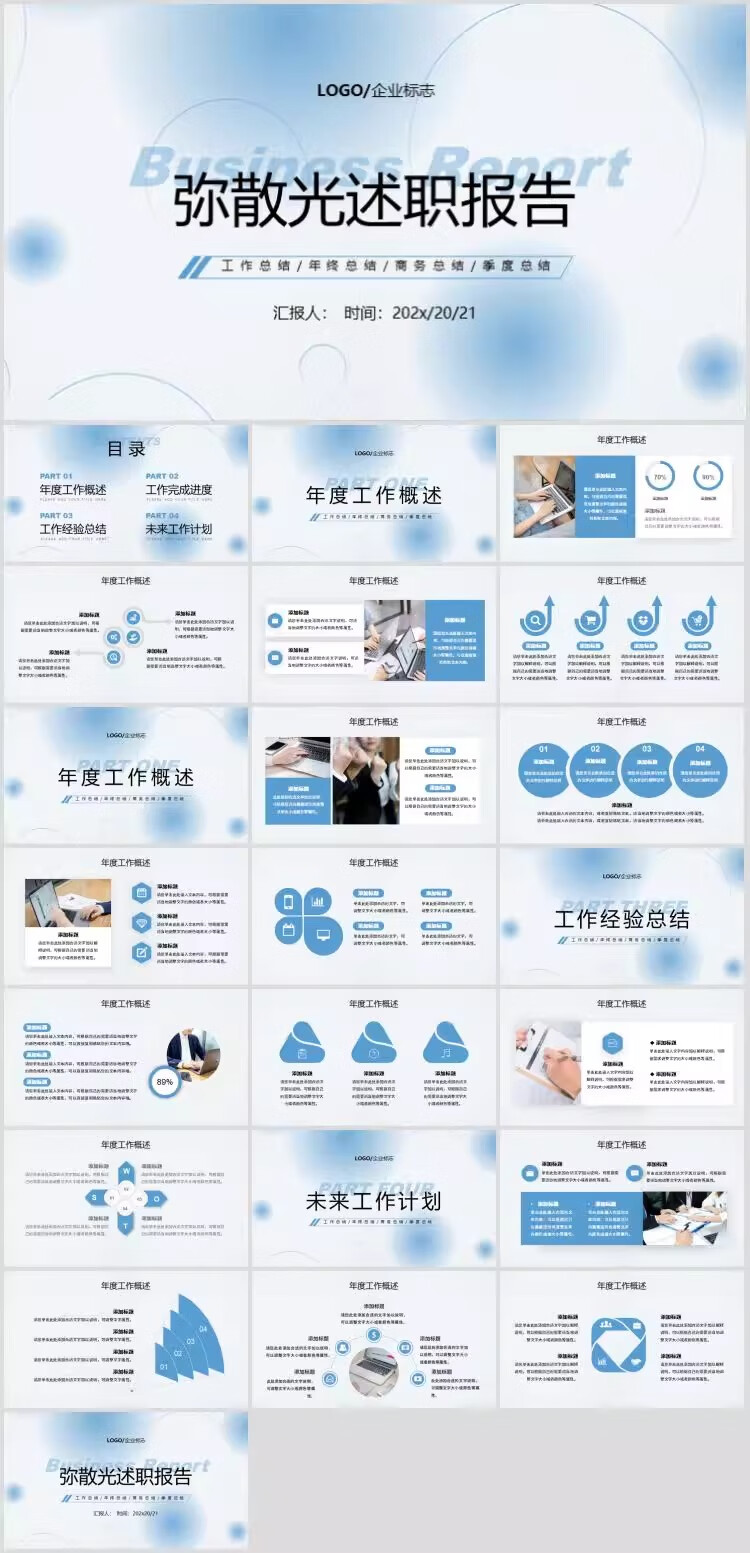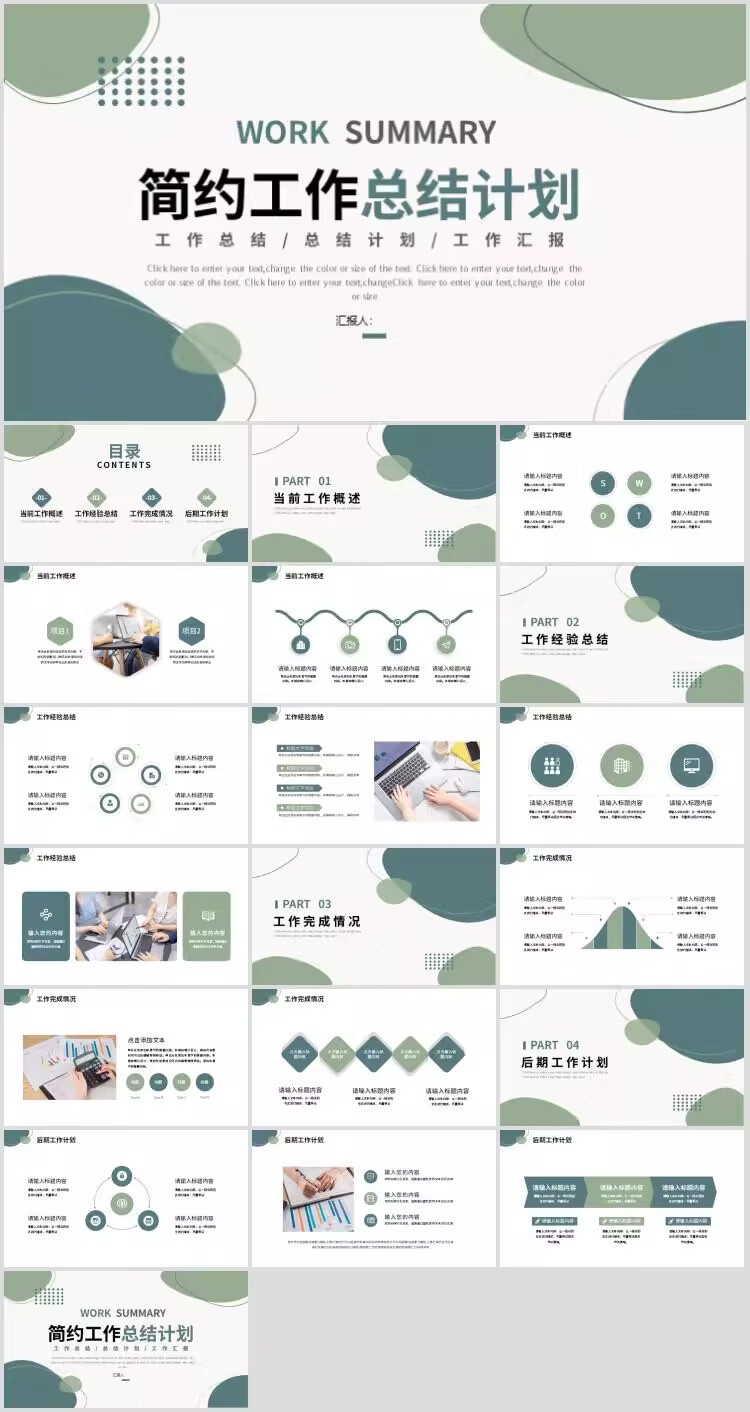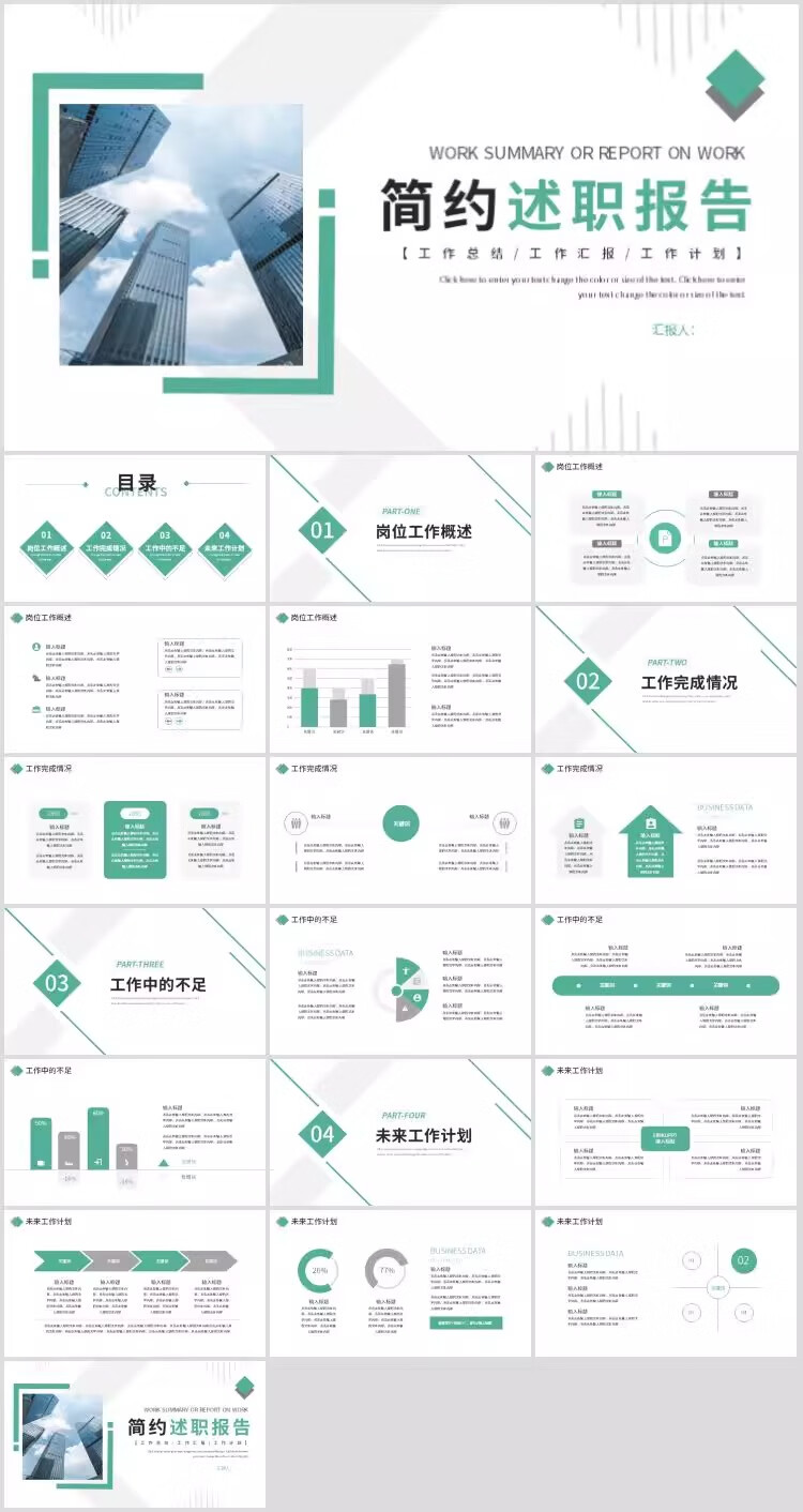 Work report ppt template work report year-end summary mid-year plan simple business general department position electronic version network disk delivery