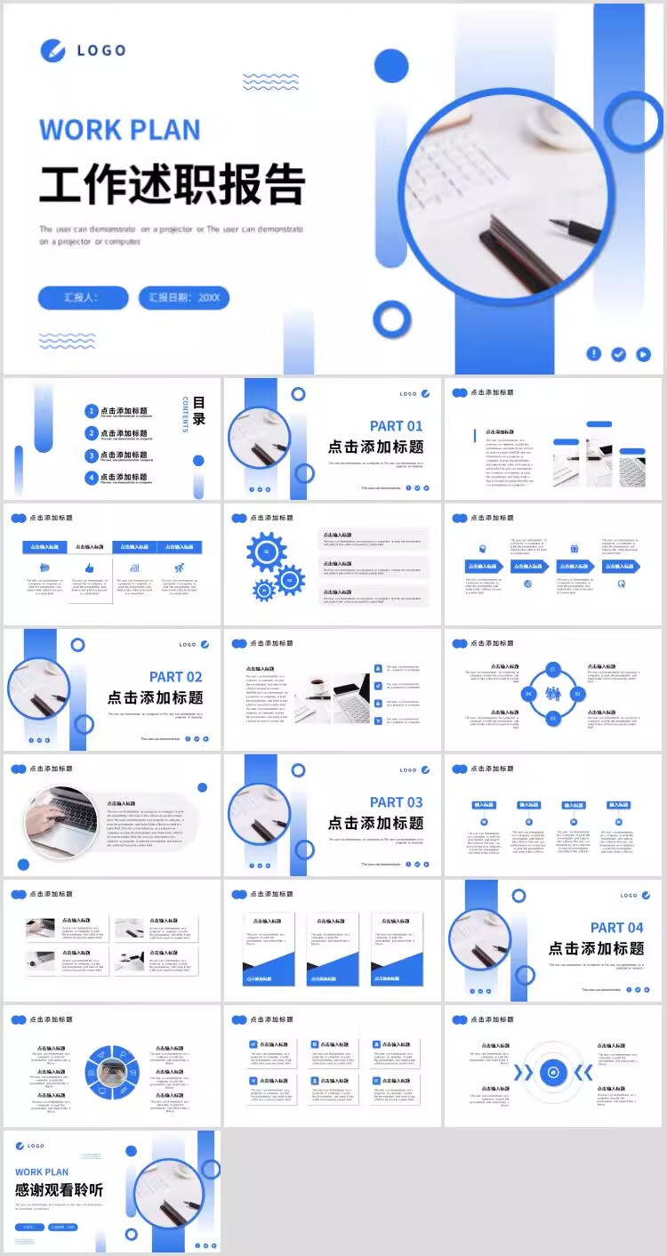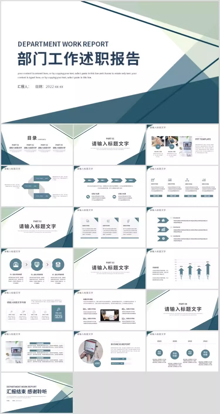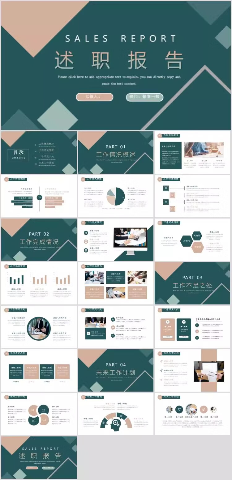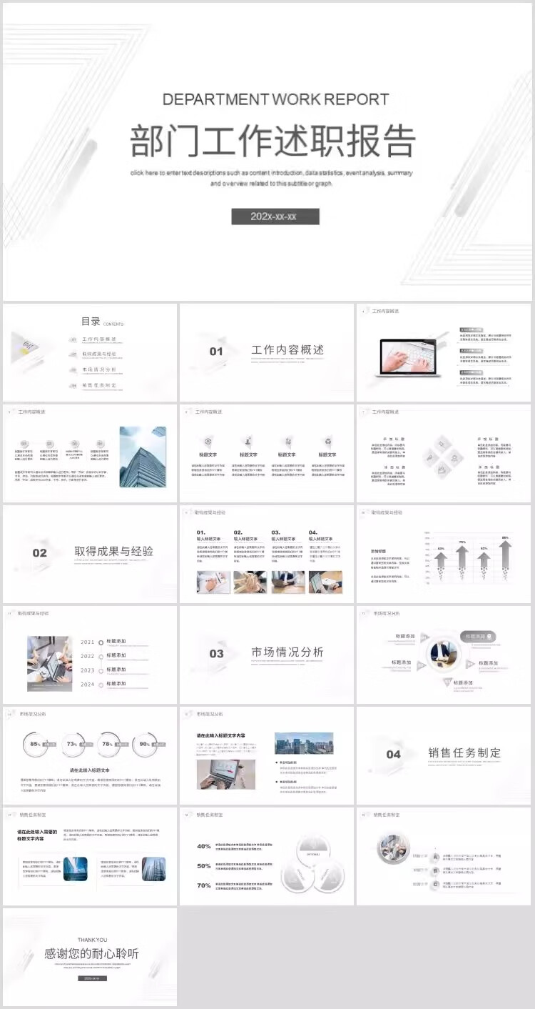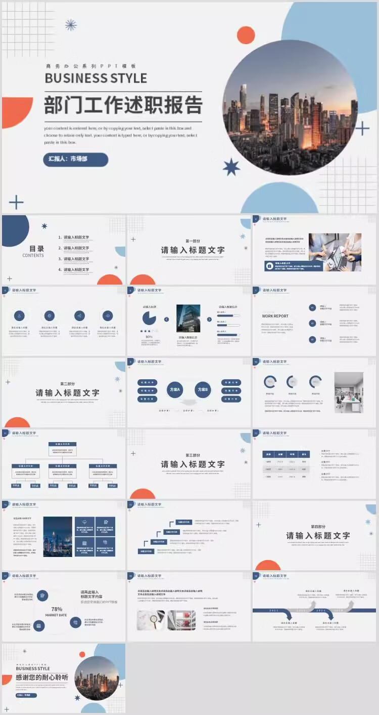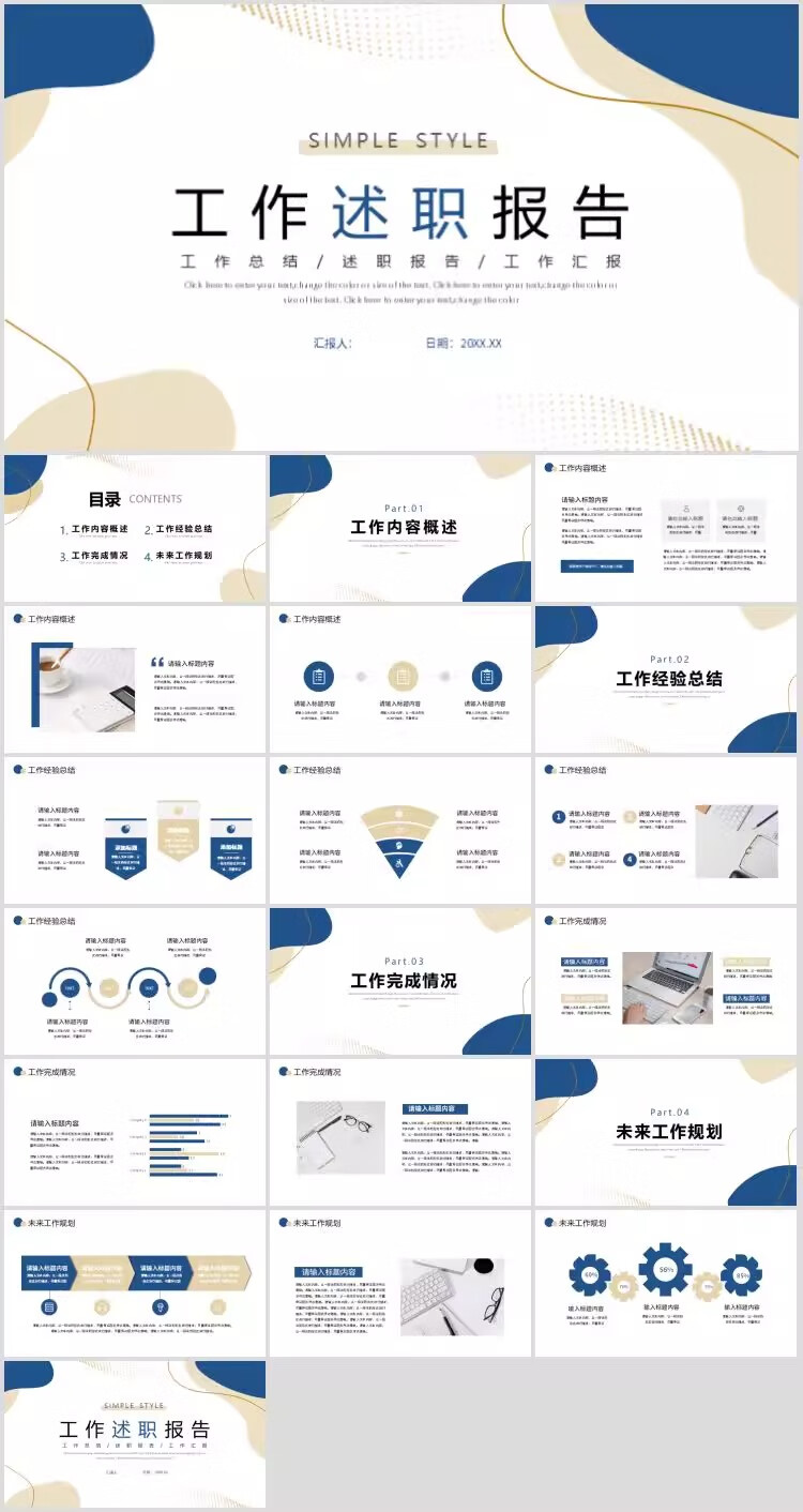 Work report ppt template work report year-end summary mid-year plan simple business general department position electronic version network disk delivery