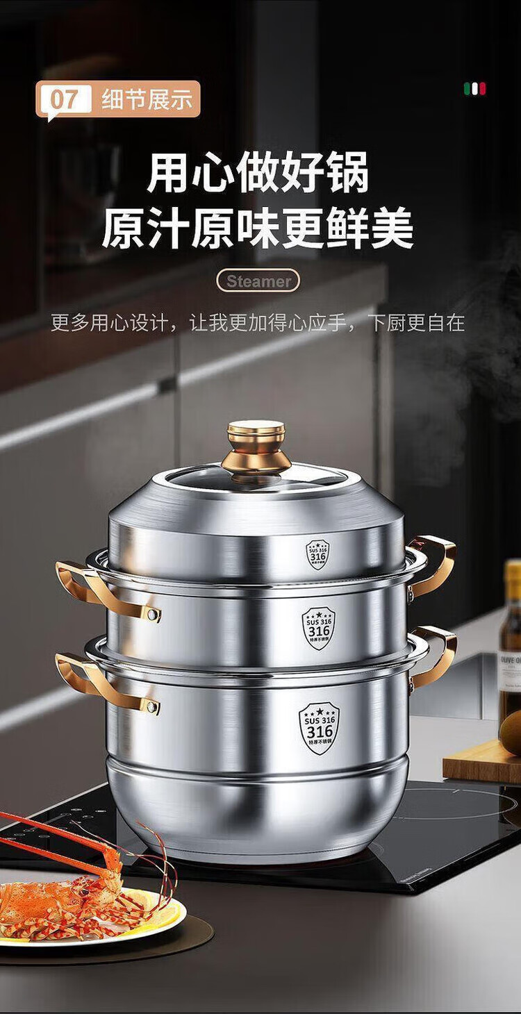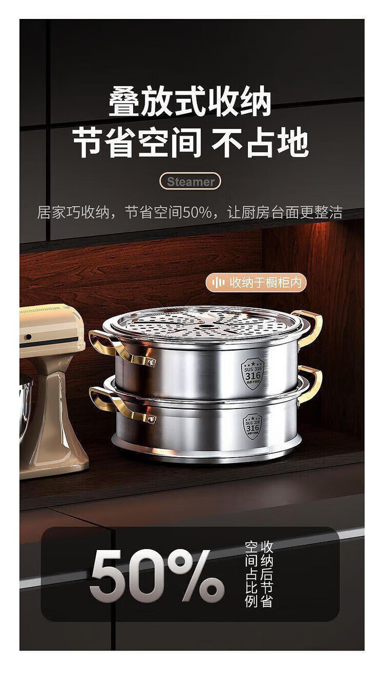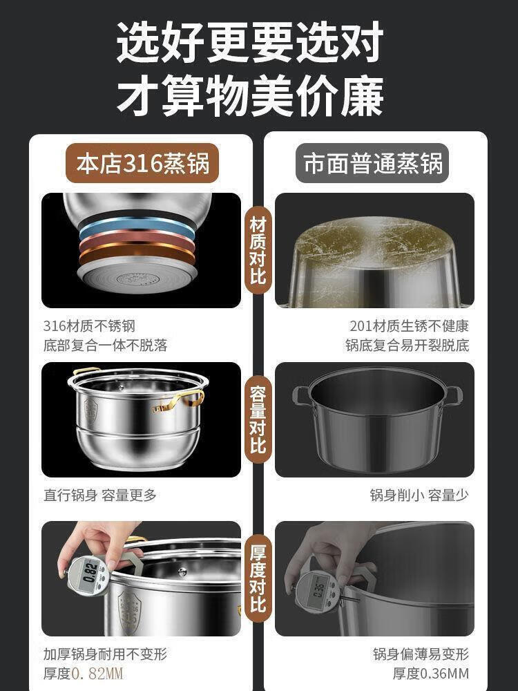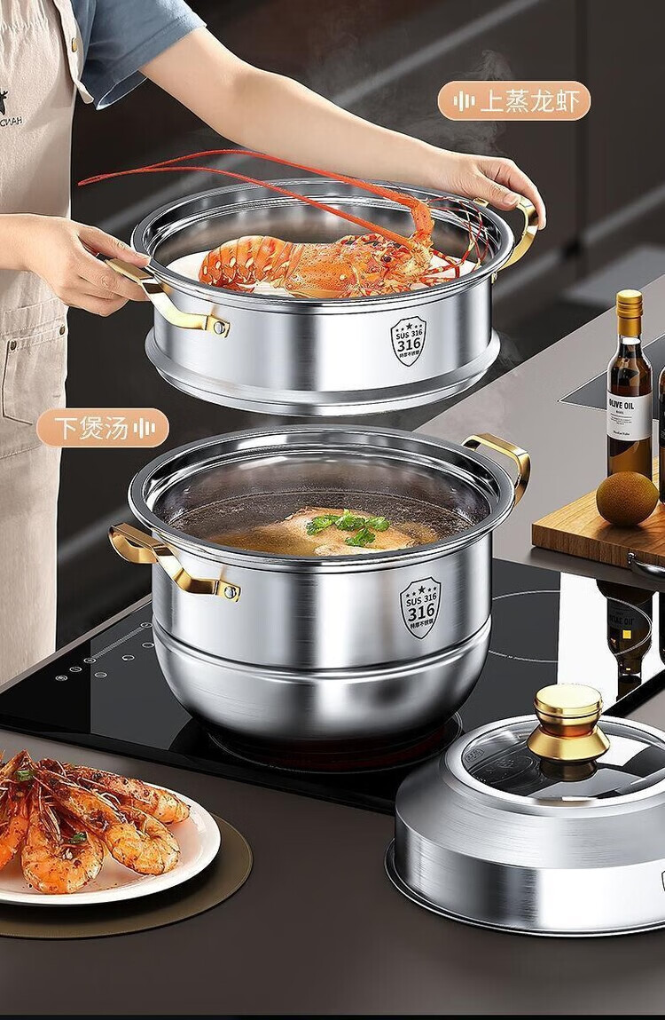 Ten Billion Bear 316 stainless steel steamer multi-layer steaming and stew household multi-layer large-capacity cooking pot induction cooker gas stove special upgrade 304 steaming sheet three-layer steamer 28cm