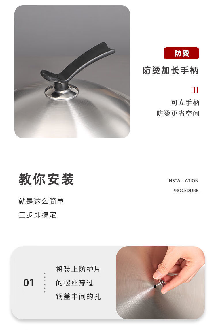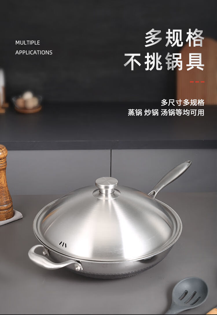 Meikejie all-steel thickened stainless steel pot lid household wok lid 30cm 32cm 34cm universal pan iron pot lid top bead 30cm (inner diameter 29.5 outer diameter 31.5)