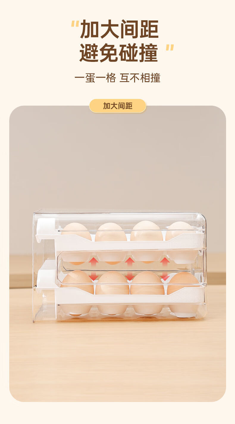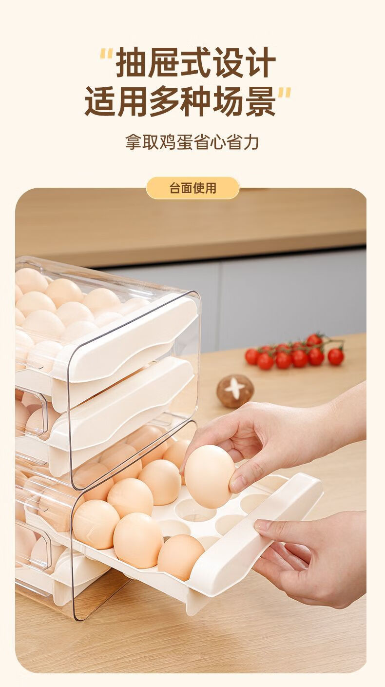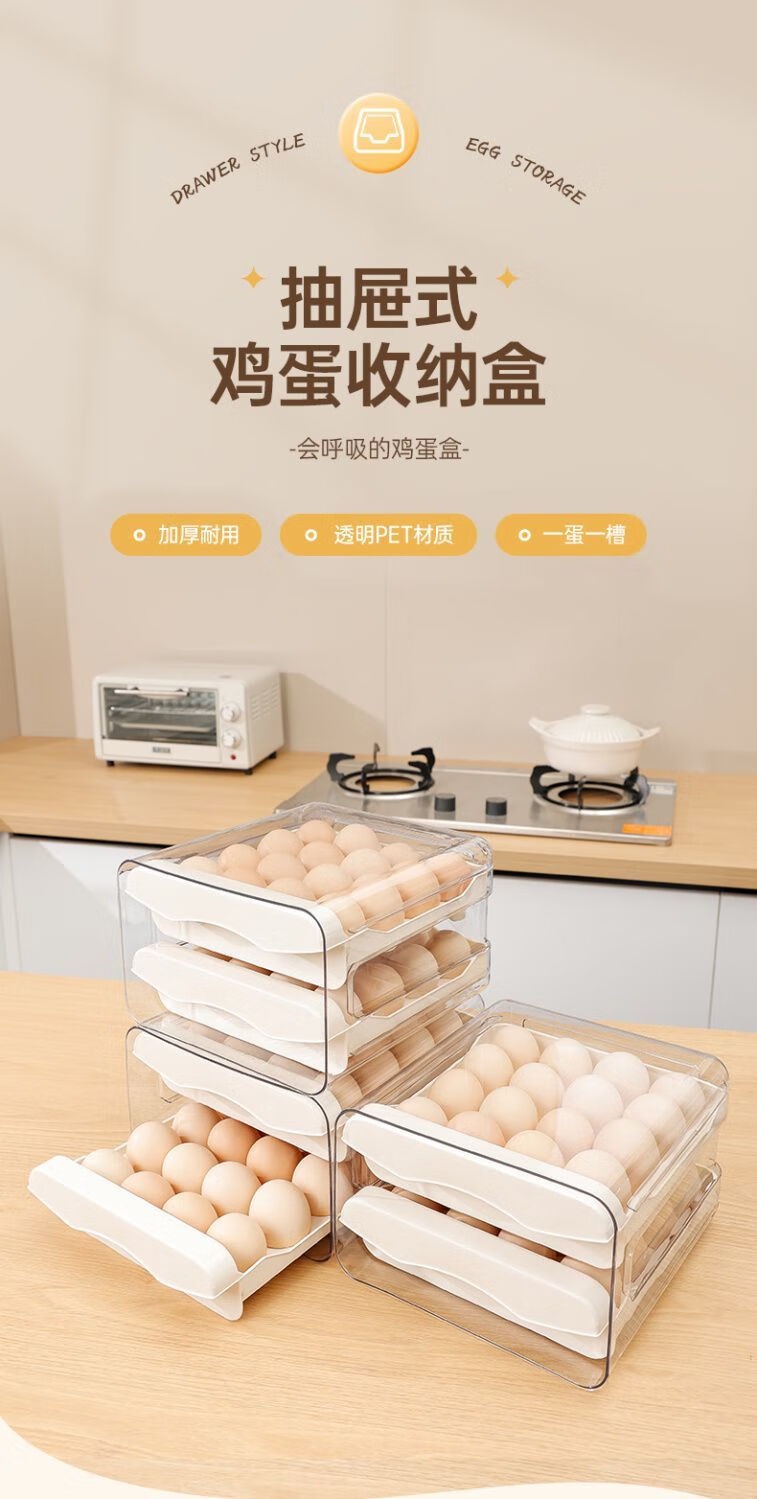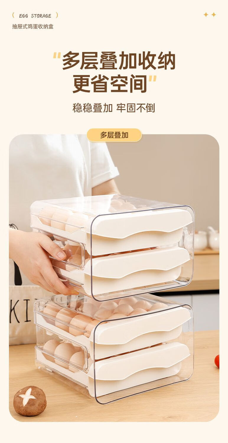 Qinkai refrigerator egg storage box drawer-type crisper kitchen egg shelf egg tray household organization artifact moonlight white double-layer PET export material - can hold 32